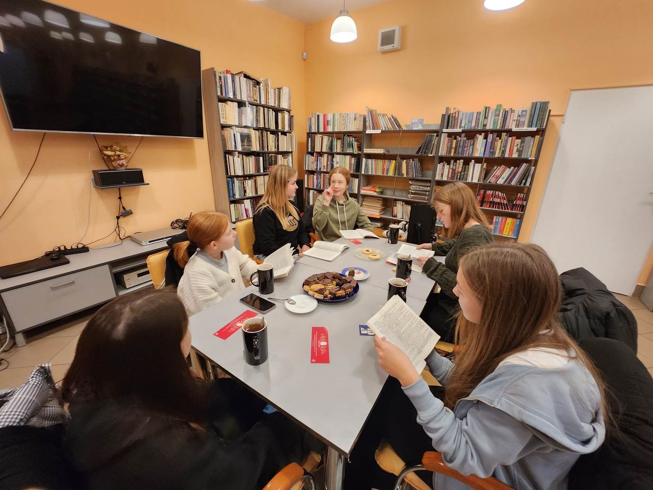 Książka przedstawia zagadki detektywistyczne - od nagłych zniknięć, poprzez kradzieże wartościowych przedmiotów, aż po tajemnicze zgony. Akcja w powieści jest dynamiczna i skupiona na istocie sprawy. Mogłyśmy również dzięki niej wybrać się w niesamowitą wycieczkę po XIX-wiecznym Londynie, wspaniale oddającym ówczesny klimat tego miasta. Zgodnie stwierdziłyśmy, że odnajdujemy się w takim rodzaju literatury. Ale nasz klub nie tylko samą książką żyje. Jedna z klubowiczek - Gabrysia przyniosła przepyszne maślane ciasteczka, a czas spędzony w tak zacnym gronie umilił nam mini koncert smyczkowy w wykonaniu Marysi, przy akompaniamencie Nel. Dziewczynki wykonały utwór Piosenki Harcerskiej pt. „Mały Obóz”. Kolejnym optymistycznym akcentem tego przedświątecznego spotkania była wymiana pomiędzy Uczestniczkami ręcznie wykonanych kalendarzy adwentowych. Kolejne klubowe spotkanie będzie tematycznie związane ze świętami Bożego Narodzenia.