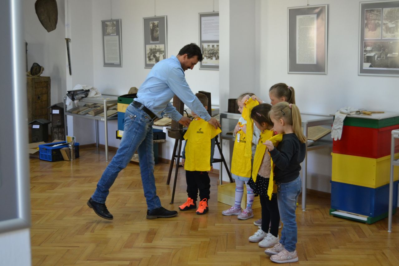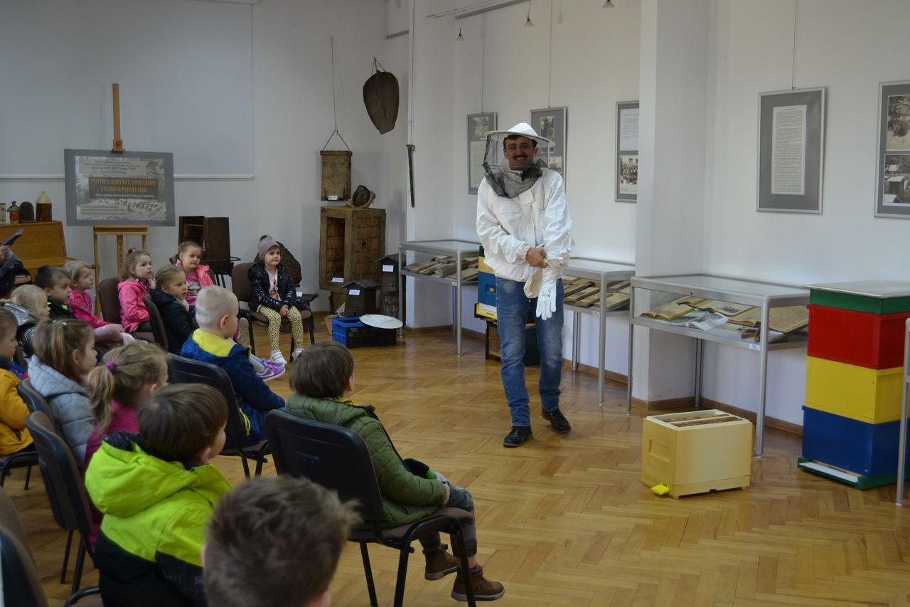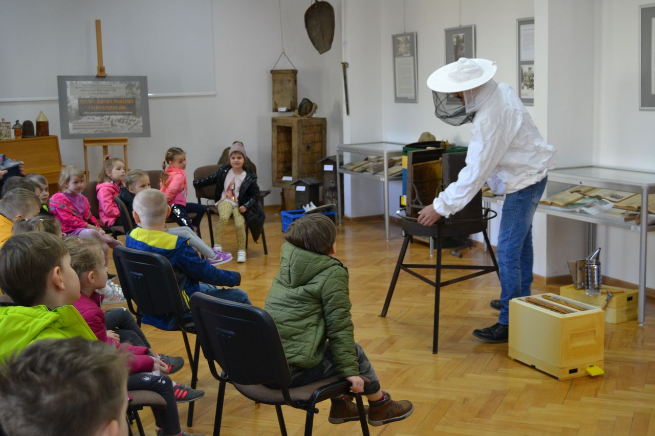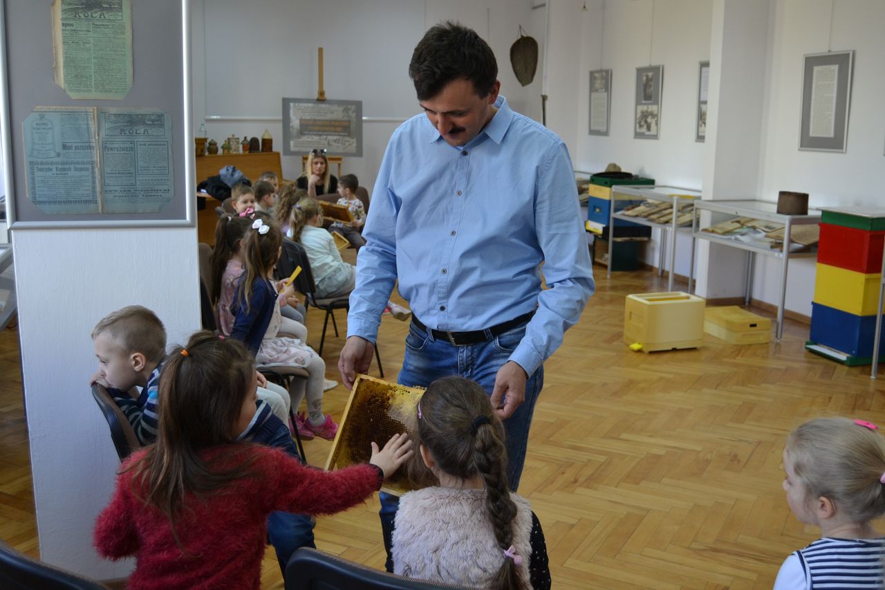 Jak bardzo fascynujące jest życie pszczół i jak wygląda praca pszczelarza dzieciom z Katolickiego Przedszkola im św. Józefa w Tarnobrzegu opowiedział Pan Roman Tański. Pan Roman, właściciel pasieki i pszczelarz z zamiłowania a przede wszystkim kontynuator rodzinnych tradycji zaprezentował dzieciom najrozmaitsze akcesoria, bez których nie da się prowadzić pasieki.