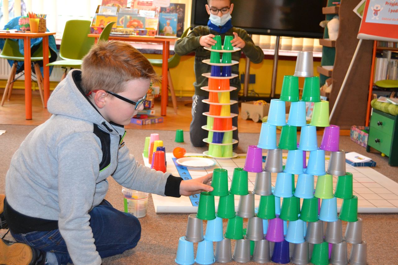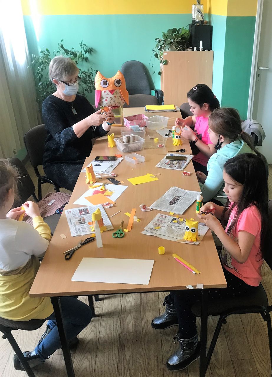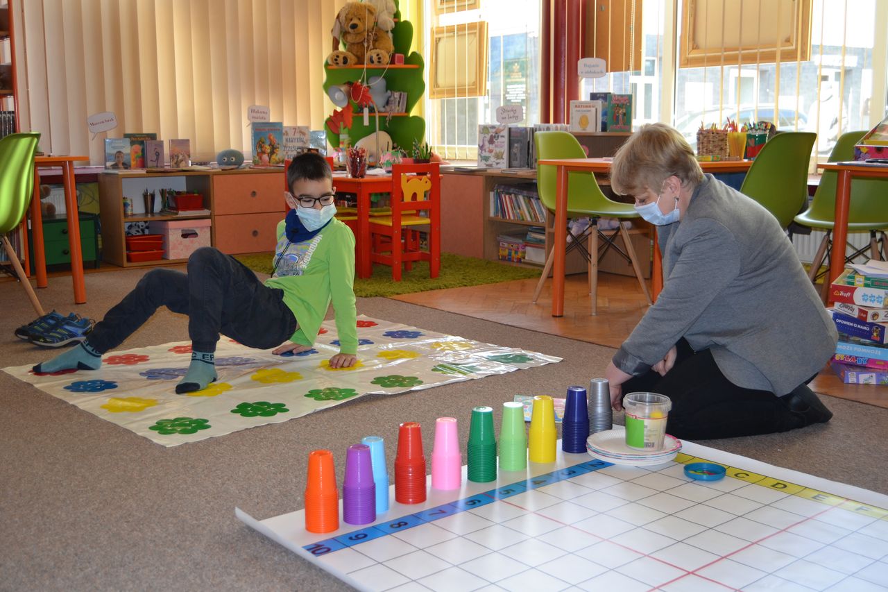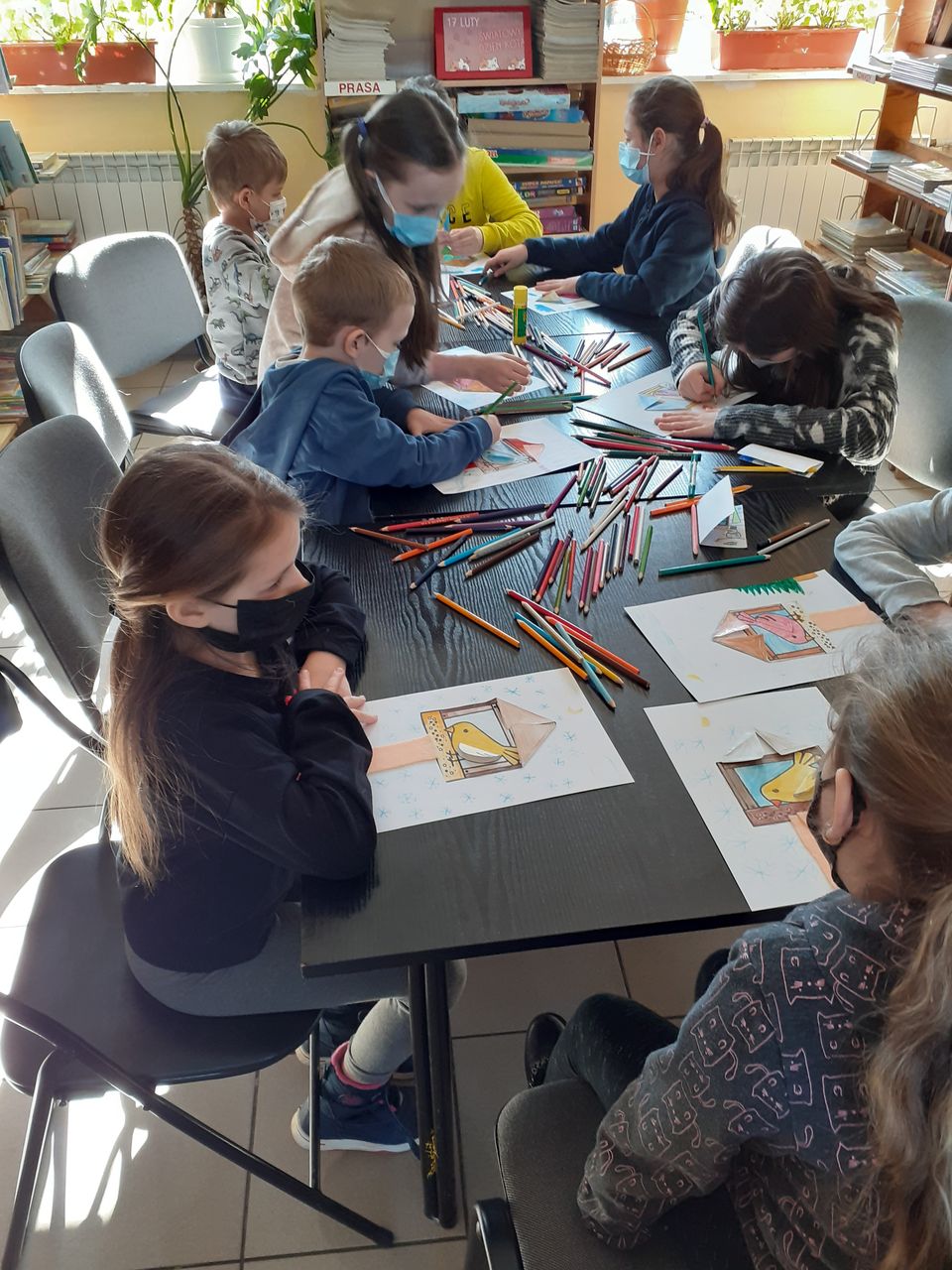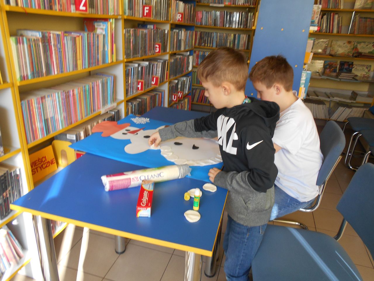 Udało się w niej, dzięki „bajkobadaniu”, z powodzeniem zdiagnozować ich potrzeby czytelnicze, którym dobierano pakiety książek na receptę w zależności od objawów. Dzięki nim znaleziono sposób na złe humorki, szare smuteczki, kichanie na książki, bujanie w obłokach czy brak apetytu na książki.Bardzo dużym zainteresowaniem cieszyły się zajęcia artystyczne, podczas których uczestnicy mogli wykazać się zdolnościami manualnymi, fantastyczną pomysłowością i kreatywnością. Podczas zajęć dzieci wykonywały prace przestrzenne tj. bałwanki, Minionki, dinozaury, zapoznały się również z techniką quillingu, z której wykonały rozety i kompozycje kwiatowe. Powstały także piękne zimowe pejzaże oraz girlandy. Mając na uwadze, że ferie zimowe przypadły na czas karnawału, młodzi artyści wykonywali również kolorowe i błyszczące maski karnawałowe. W szczególny sposób obchodzono także, przypadające w czasie ferii Walentynki, Dzień Kota oraz Dzień Dinozaura. Dzieci wykonały mnóstwo kotków, dinozaurów oraz kartek walentynkowych. Oczywiście, w bibliotekach nie mogło także zabraknąć zabaw z książką. Na zajęciach literacko-plastycznych, na podstawie przeczytanych fragmentów książek i bajek dzieci tworzyły m. in. prace z postacią Świnki Peppy czy Pingwina Gustawa. Dodatkowo w Przedszkolu nr 2 oraz Przedszkolu nr 6 odbyły się spotkania głośnego czytania. Dopełnieniem interesujących zajęć były gry, zabawy, quizy, kalambury, łamigłówki, krzyżówki, kodowanie kolorowymi kubeczkami oraz rozwiązywanie rebusów. Oprócz zajęć stacjonarnych, w bibliotekach zorganizowano tzw. zabawy hybrydowe i to skierowane, zarówno do najmłodszych czytelników, jak również do młodzieży i osób dorosłych. Najmłodsi wypożyczali pakiety książek wraz z plastyczną niespodzianką oraz pakiety materiałów plastycznych, z których mogły w domu samodzielnie wykonać pracę. Natomiast w pakietach dla starszych ukryte były pytania dotyczące znajdujących się w nich książek bądź ich autorów. Specjalnie dla małych artystów przez całe ferie trwał konkurs plastyczny „W kolorowym świecie zimy”, na który wpłynęło kilkanaście prac. Ogłoszenie wyników konkursu już niebawem.