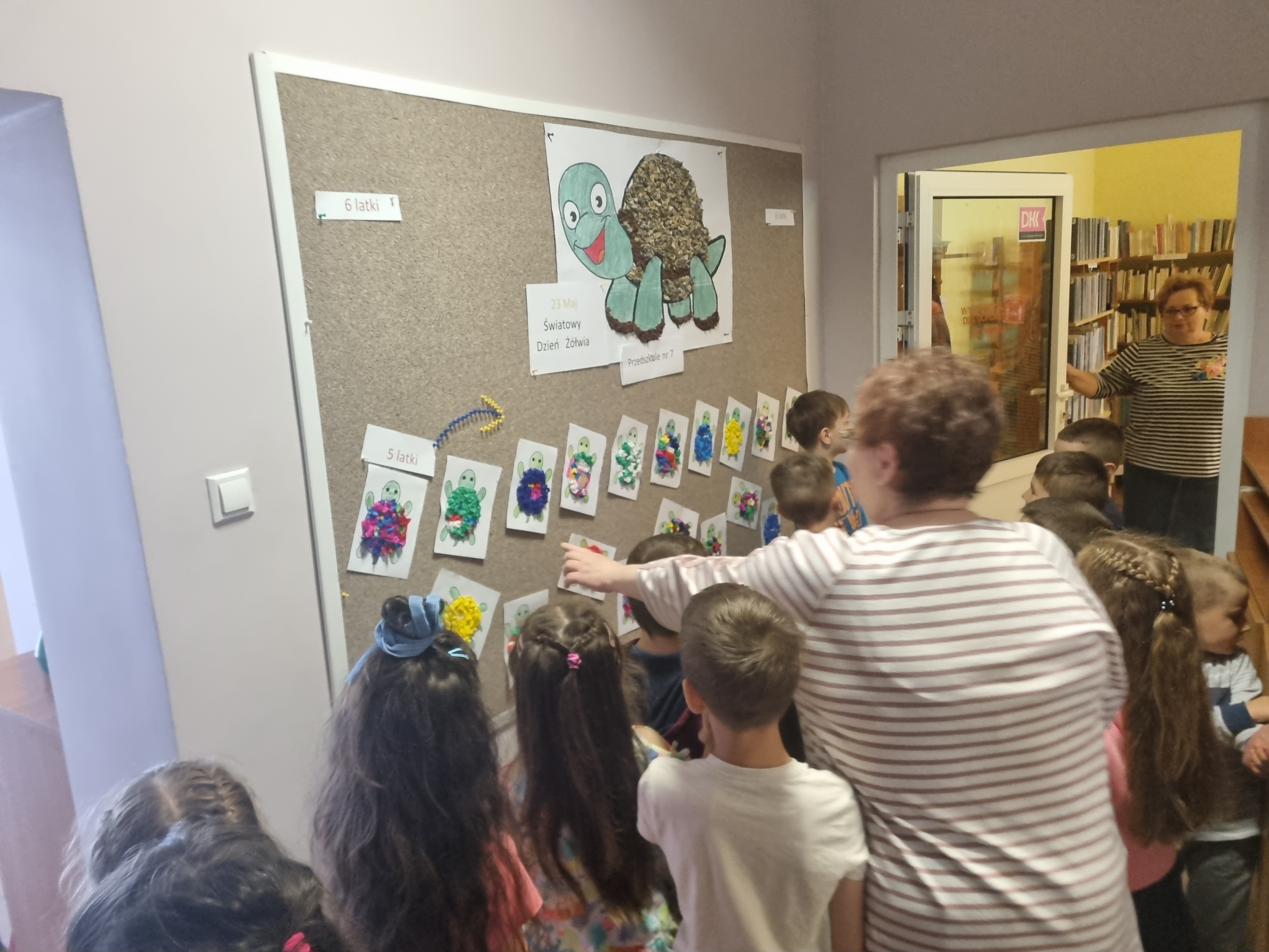 Miesiąc maj w Bibliotece przebiegł niezwykle intensywnie. Oprócz form realizowanych w ramach Tygodnia Bibliotek i projektu „Literatura na pięciolinii” w filiach bibliotecznych odbywały się liczne spotkania dla przedszkolaków i uczniów Szkół Podstawowych. W Filii nr 1 hucznie świętowano Światowy Dzień Żółwia przypadający na 23 maja.