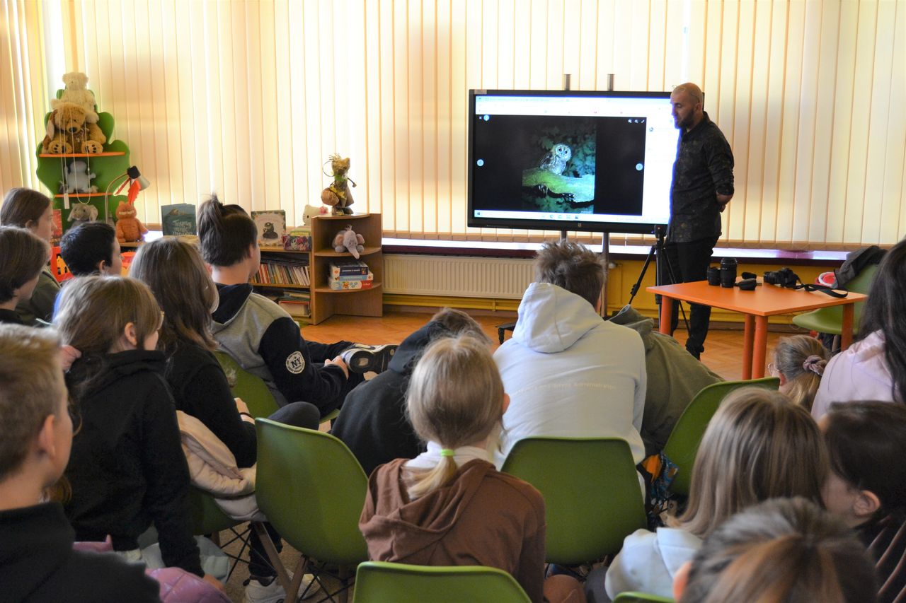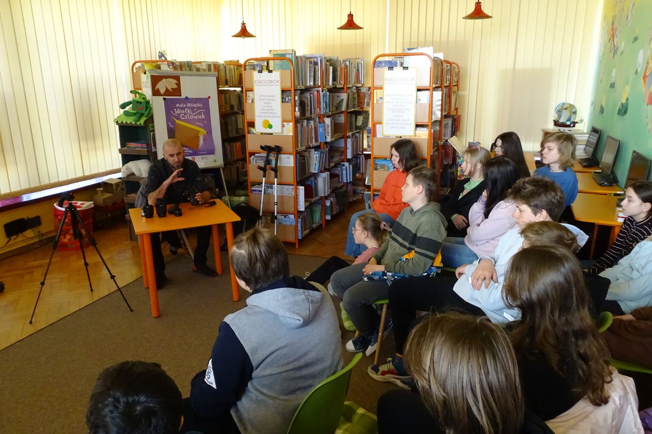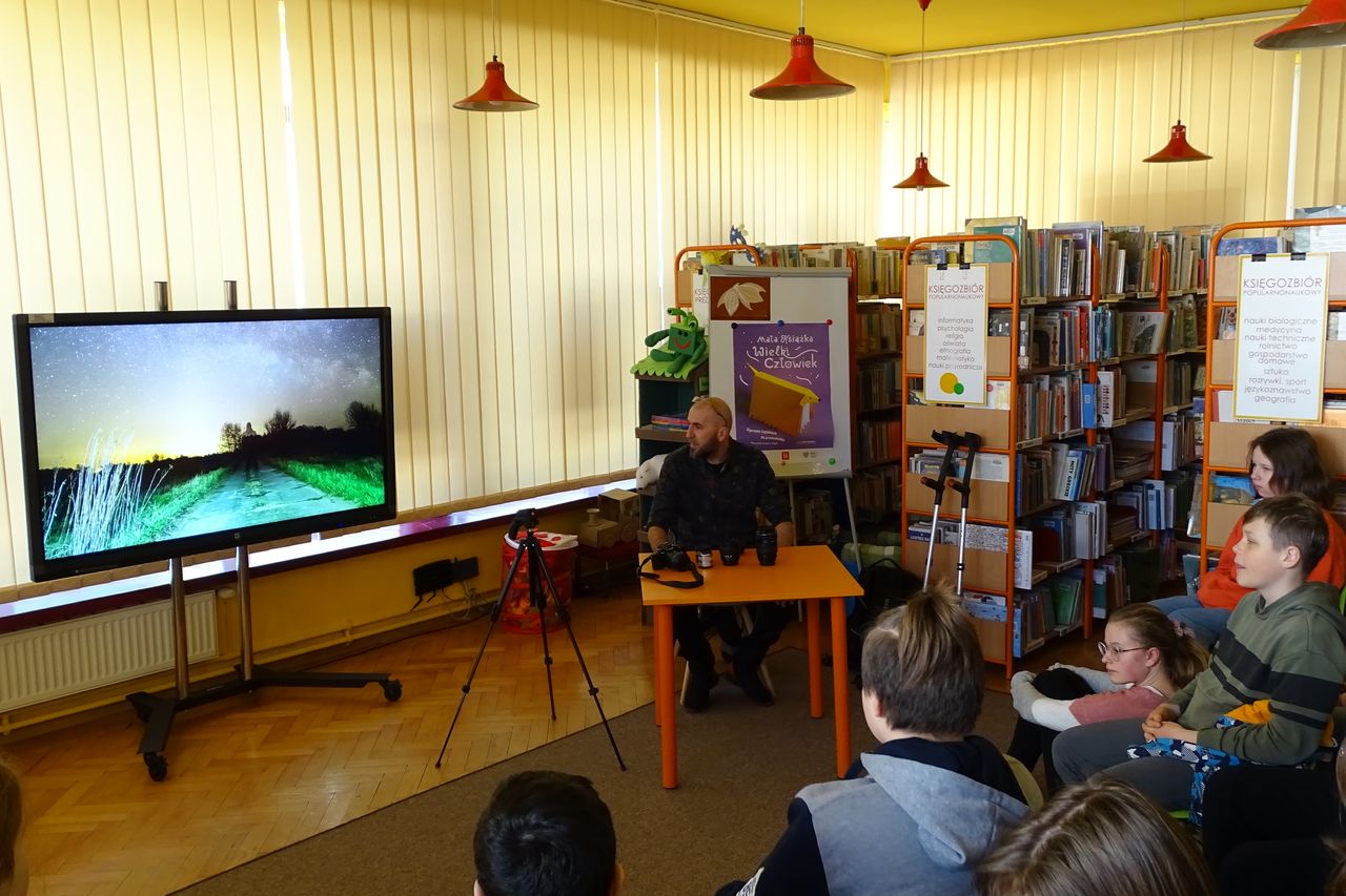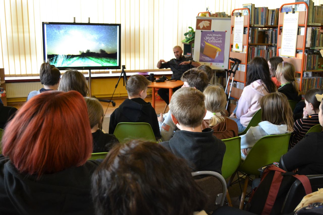 W Oddziale dla dzieci i młodzieży, 12 kwietnia, miało miejsce niezwykle ciekawe spotkanie. Grzegorz Kilijański – autor zdjęć prezentowanych w „Galerii Okno” - uczniom z Publicznej Katolickiej Szkoły Podstawowej – opowiedział o swojej fotograficznej pasji. Rozpoczął spotkanie od prezentacji wystawy swoich zdjęć, na których uchwycił niecodzienne zjawiska astronomiczne i meteorologiczne.