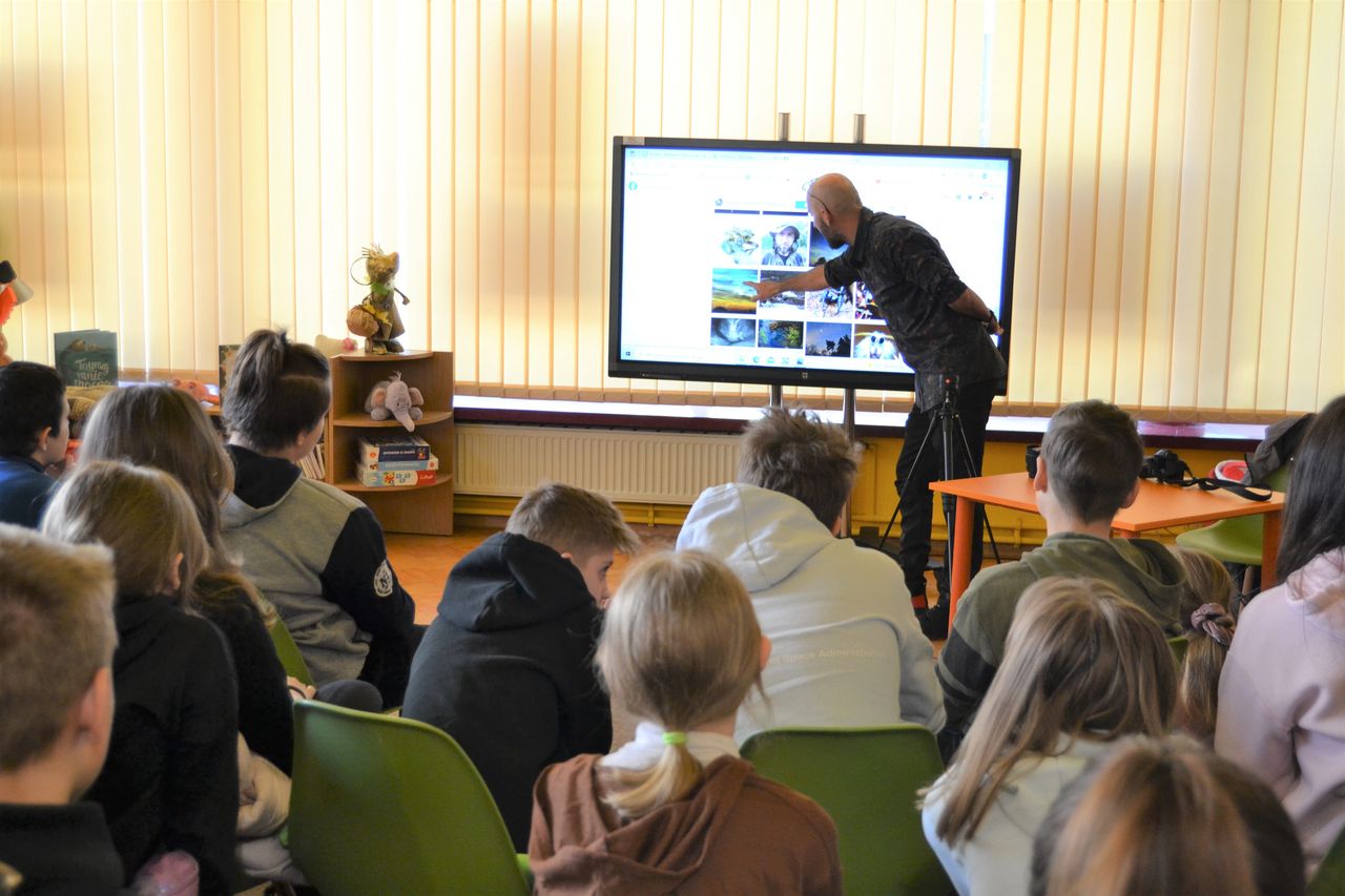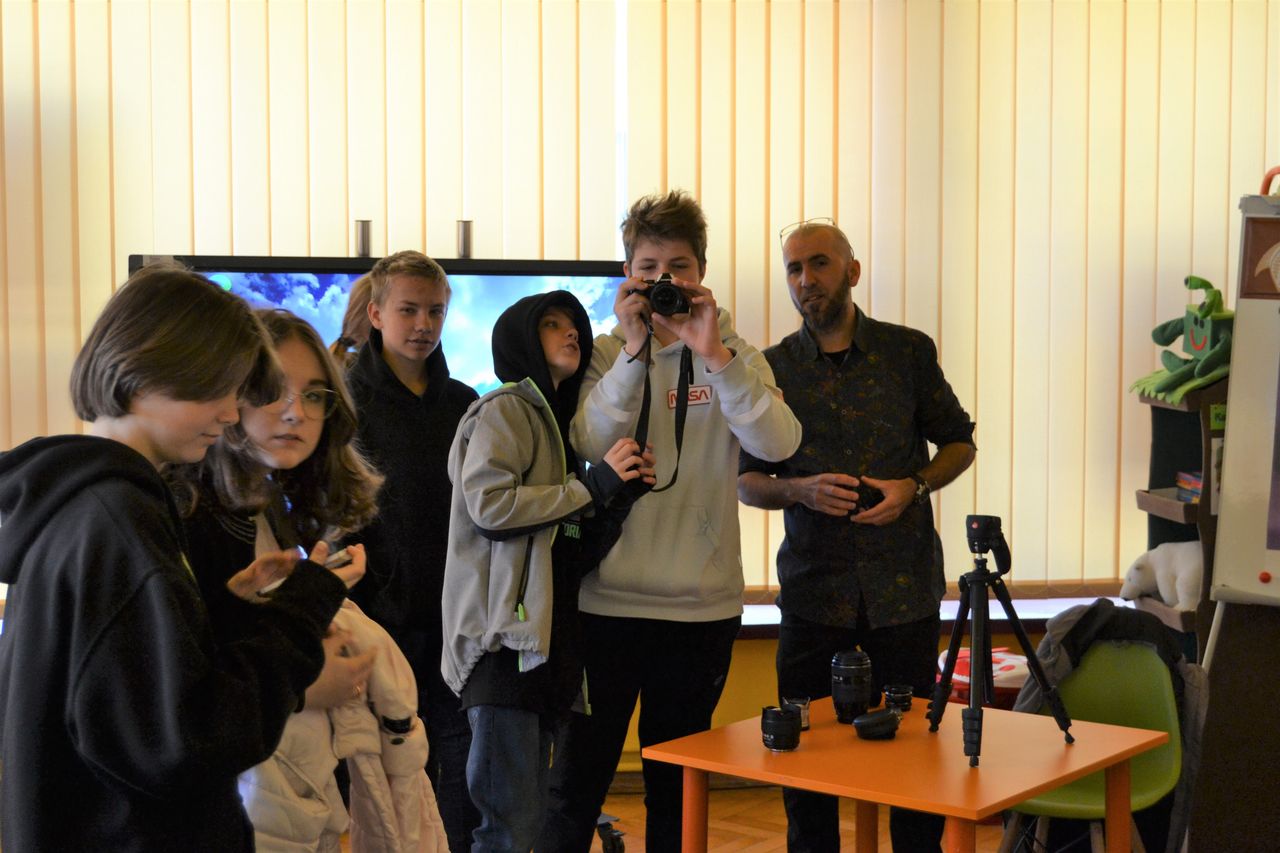 Na koniec pan Grzegorz odpowiadał na pytania młodzieży. Dzięki nim wszyscy mogli się dowiedzieć od ilu lat fotografuje, ile zdjęć zrobił w tym czasie, jakie jest jego ulubione zdjęcie oraz kiedy i gdzie najbardziej lubi robić zdjęcia.