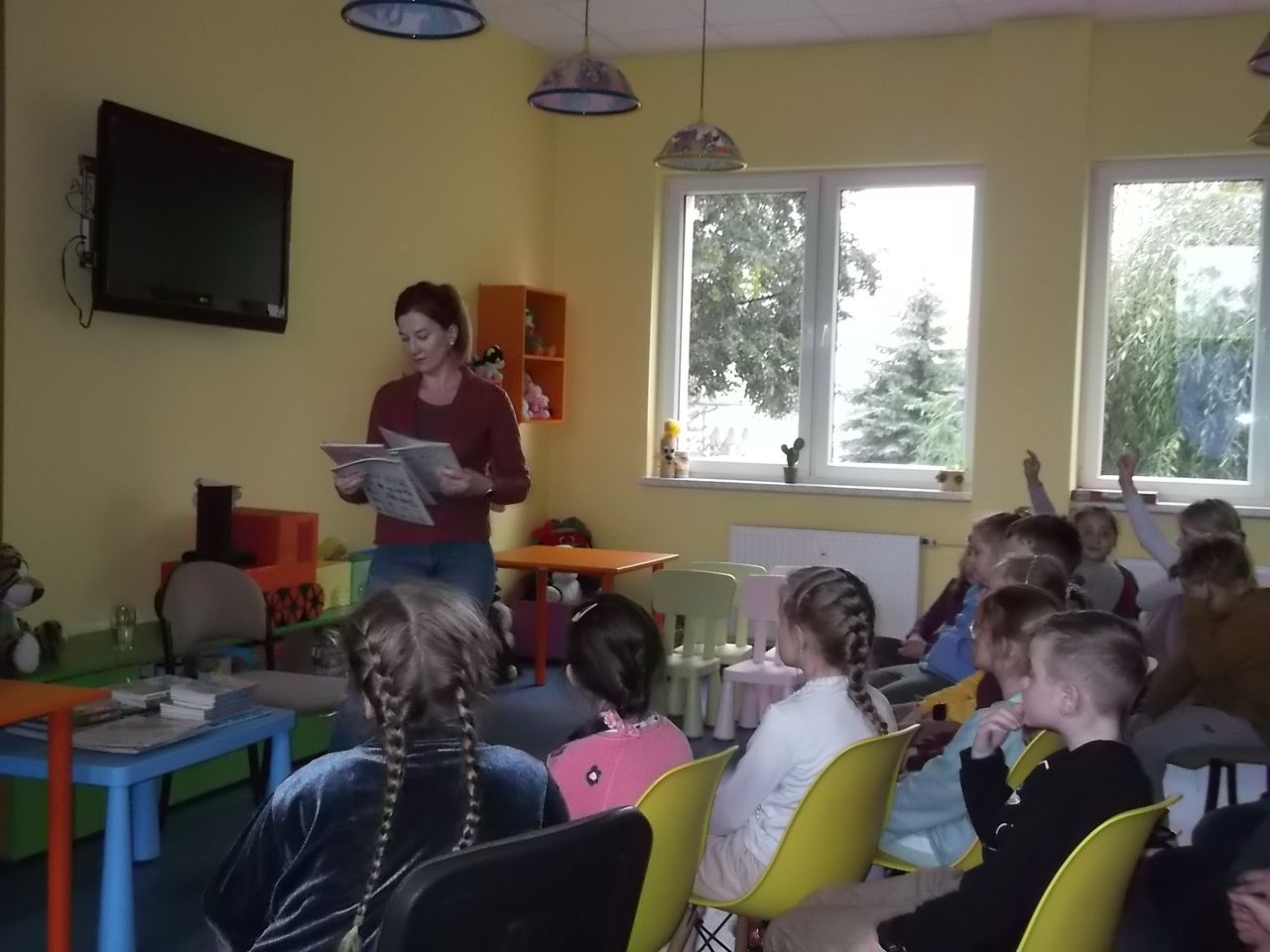 W oddziale dla dzieci i młodzieży, uczniowie klasy II ze Społecznej Szkoły Podstawowej im. Małego Księcia uczestniczyli w lekcji bibliotecznej pt. „Historia książki”. W Filii nr 1 Pani psycholog Dorota Kozieł czytała – drugo i trzecioklasistom ze Szkoły Podstawowej nr 10 – opowiadania i przyjaźni i radości życia. Z kolei dla 4-latków z Przedszkola nr 7 bibliotekarki przygotowały program zajęć literackich, w których główną rolę grał jesienny liść. Bibliotekarka gościła także w Przedszkolu nr 17 i czytała przedszkolakom jesienne opowieści. Filię nr 2 na osiedlu Siarkowiec odwiedziły przedszkolaki z Przedszkola nr 4 „Niezapominajka” i dowiedziały się „Gdzie mieszka bajeczka”, a Filię nr 7 na osiedlu Dzików uczniowie klasy II ze Szkoły Podstawowej nr 9. Zapoznały się z twórczością Janiny Porazińskiej, która jest patronką Ogólnopolskiego Dnia Głośnego Czytania i wysłuchały śmiesznej opowieści o przygodach Mai i papugi. Także Filia nr 8 na osiedlu Przywiśle literacko uczciła ten szczególny dzień. Bibliotekarka odwiedziła grupę 3 i 4-latków z Przedszkola nr 2 oraz grupę 6-latków z Przedszkola nr 6, gdzie czytała bajki o tematyce jesiennej.