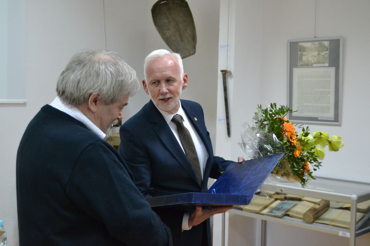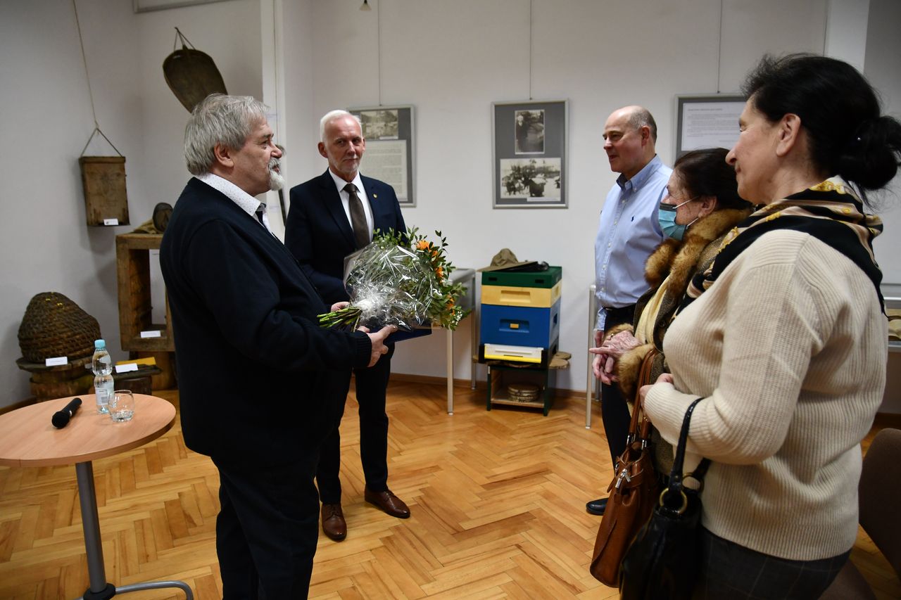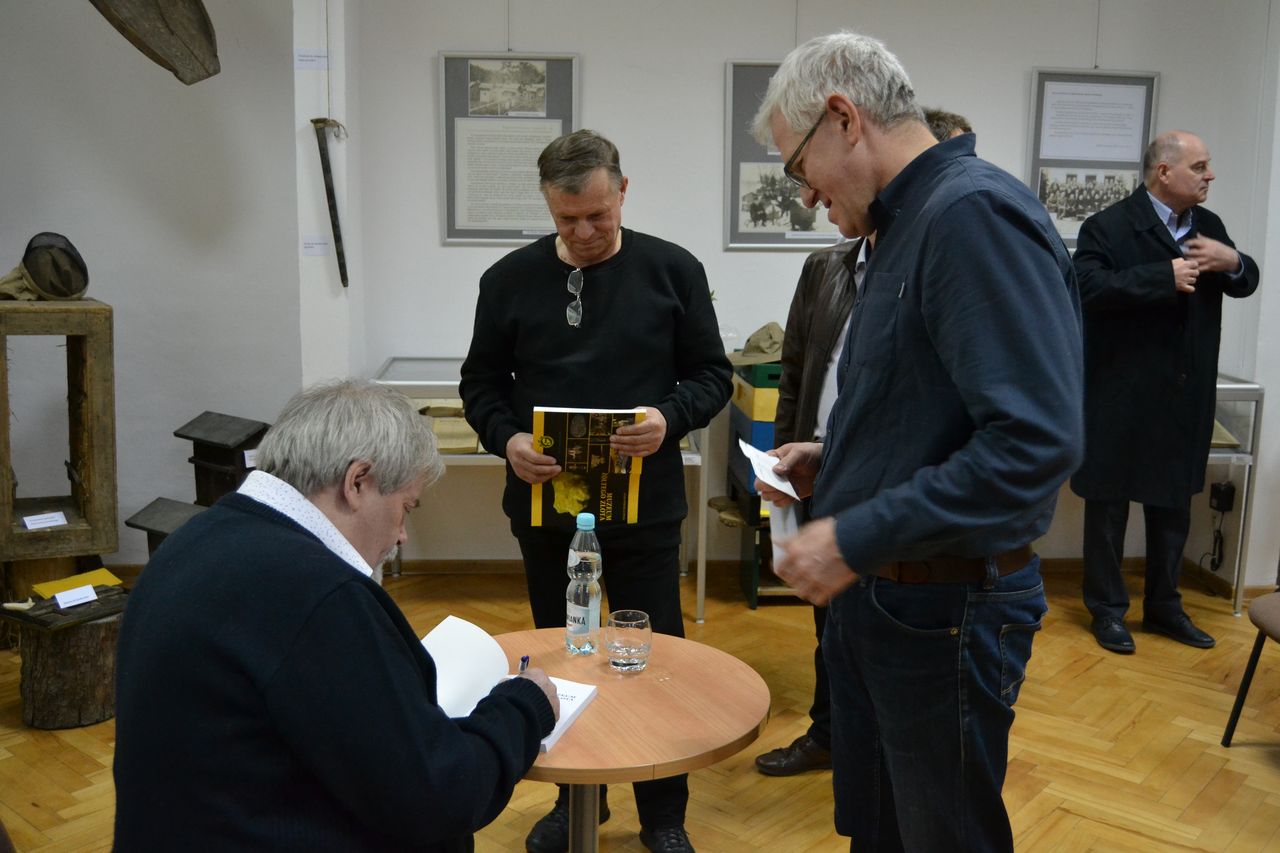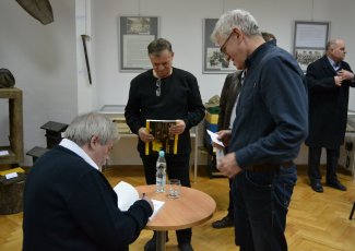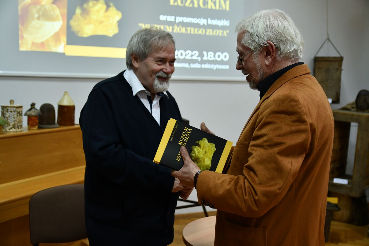 Autor książki, a zarazem założyciel i twórca Muzeum, przybliża podstawowe fakty oraz najciekawsze kolekcje, jakie udało się zgromadzić w ciągu zaledwie dziesięciu lat. Imponujące zbiory siarkowe, wraz z rewindykowaną niedawno po wielu latach historyczną Kolekcją Dzikowską sprawiają, że tarnobrzeskie Muzeum jest dziś jednym z najwartościowszych i najciekawszych w Polsce południowej. Podczas spotkania Adam Wójcik, w swoim niepowtarzalnym – ciekawym i dowcipnym – stylu opowiedział o własnej drodze, która przywiodła go do Tarnobrzega i sprawiła, że zainteresował się górnictwem oraz przemysłem siarkowym, a która w konsekwencji doprowadziła do powstania Muzeum Polskiego Przemysłu Siarkowego. Mówił także o czym jest jego najnowsza książka, jak pozyskiwane były – i nadal są – eksponaty do Muzeum i co się na nie składa. Zebranym na spotkaniu zaprezentował najświeższy z nich – unikatowy liczący ponad 200 lat guzik z okresu Księstwa Warszawskiego, pochodzący z munduru górniczego generała bądź ministra, który udało się kupić za symboliczną kwotę. Niezwykle miłym akcentem była niespodziewana wizyta Prezydenta Miasta Tarnobrzega Dariusza Bożka, który wręczył autorowi książki grawerton oraz kwiaty dziękując za lata pracy i wkład w rozwój miasta. Pan Adam zapewnił, że mimo iż przeszedł już na emeryturę nie zamierza przestać pracować, zapowiedział dwie kolejne publikacje, których w swoim dorobku ma już ponad sto.