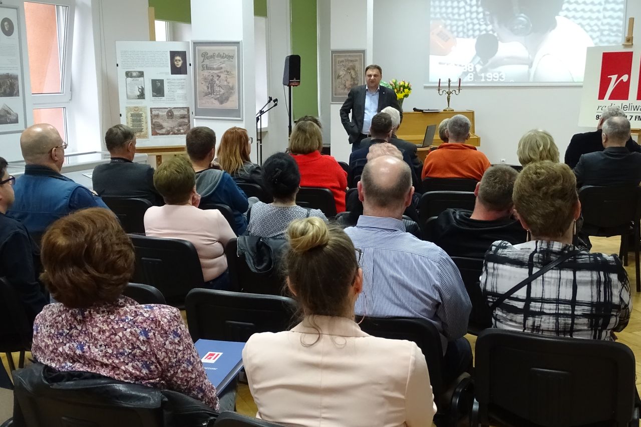 Radio Leliwa bowiem w październiku bieżącego roku obchodzić będzie jubileusz 30 lecia istnienia. Zależało mi bardzo na tym by wspomnienia zamieszczone w książce zilustrowane były były zdjęciami, pamiątkami czy grafikami. Sam z radiem związany jestem od prawie 20 lat, więc były to rozmowy z ludźmi, których znam niemniej jednak była to taka sentymentalna podróż w przeszłość - powiedział autor zdradzając kulisy pracy nad publikacją. W taką sentymentalną też podróż „zabrała” uczestników spotkania przygotowana prezentacja w której przypomniano pierwsze pomieszczenia, dzingle , sprzęt i przede wszystkim pracowników którzy to radio tworzyli.