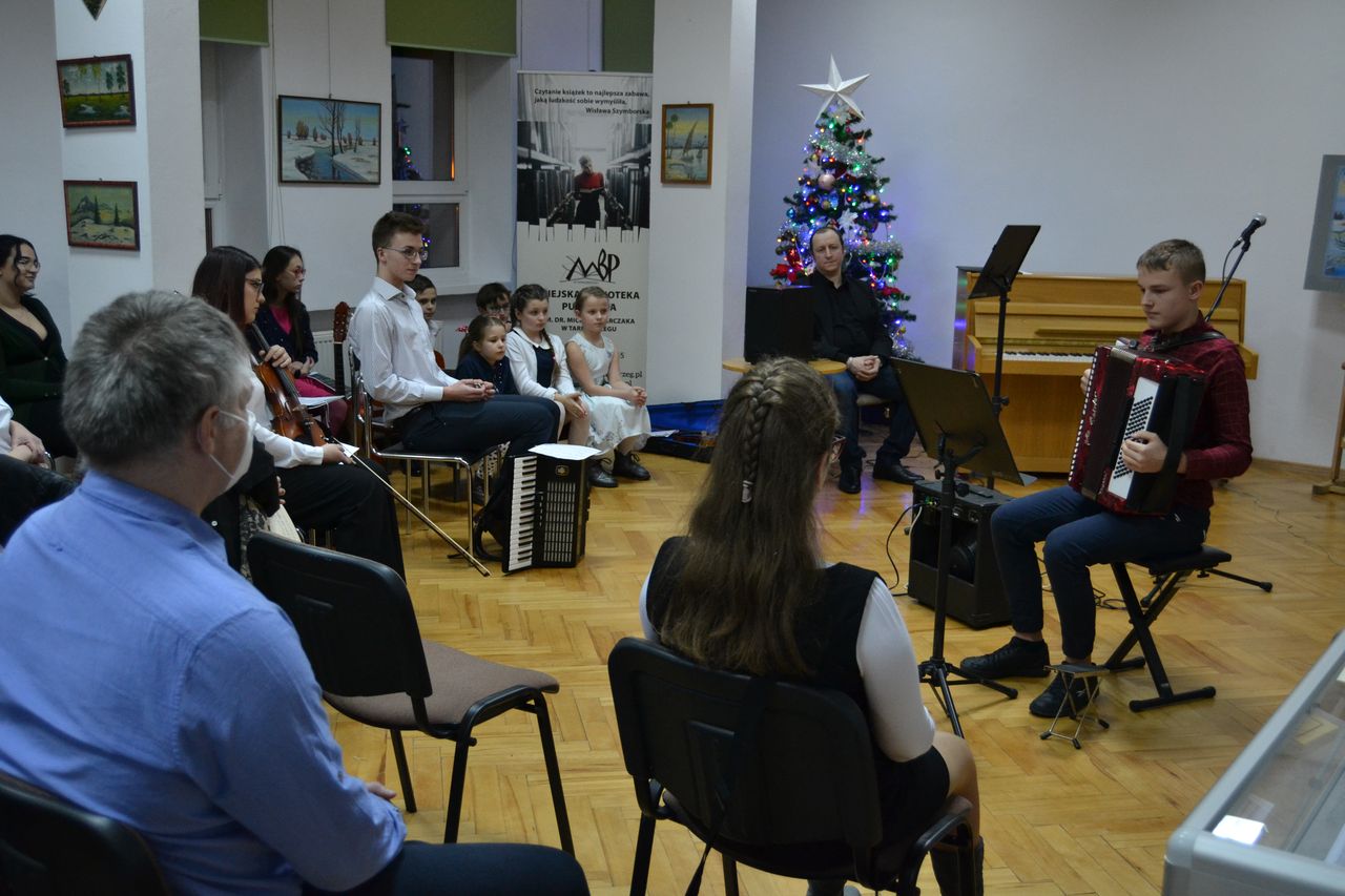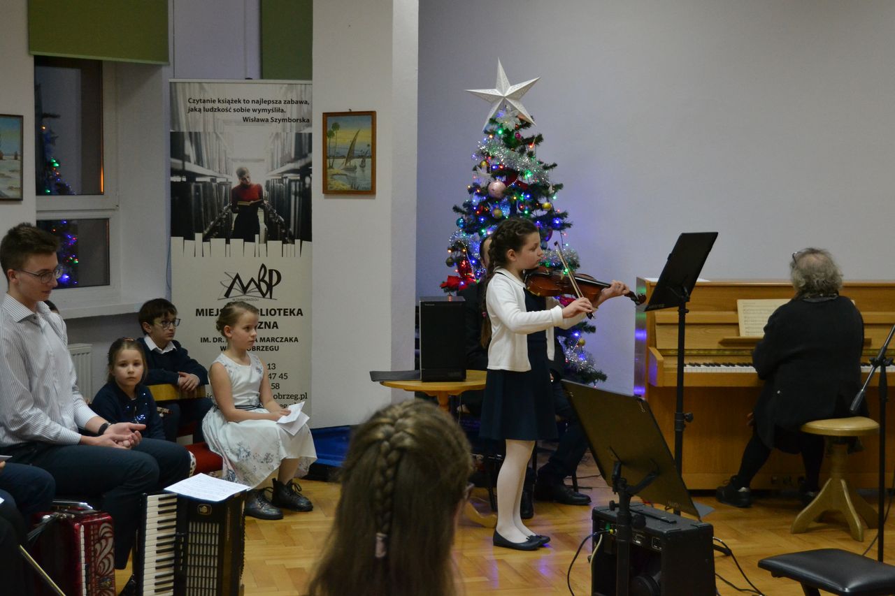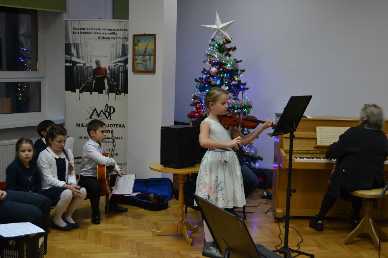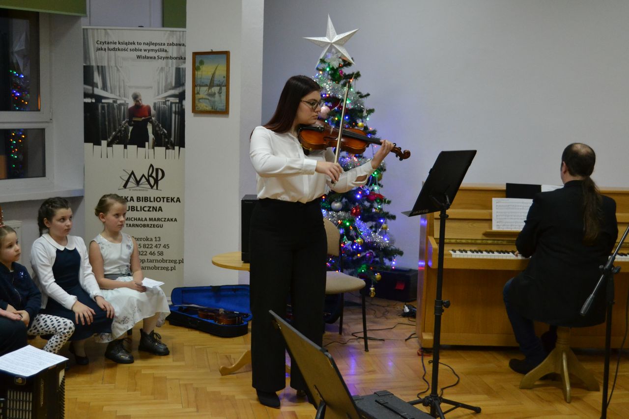 W piątek 28 stycznia w Sali odczytowej Miejskiej Biblioteki Publicznej im. dr. M. Marczak odbyło się wyjątkowe spotkanie. Przed rodzicami i dziadkami z koncertem kolęd wystąpili uczniowie Społecznej Szkoły Muzycznej I Stopnia w Tarnobrzegu. Po wprowadzeniu w muzyczny klimat przez Michała Czykowskiego – dyrektora szkoły, w sali rozbrzmiały najpiękniejsze kolędy i pastorałki.