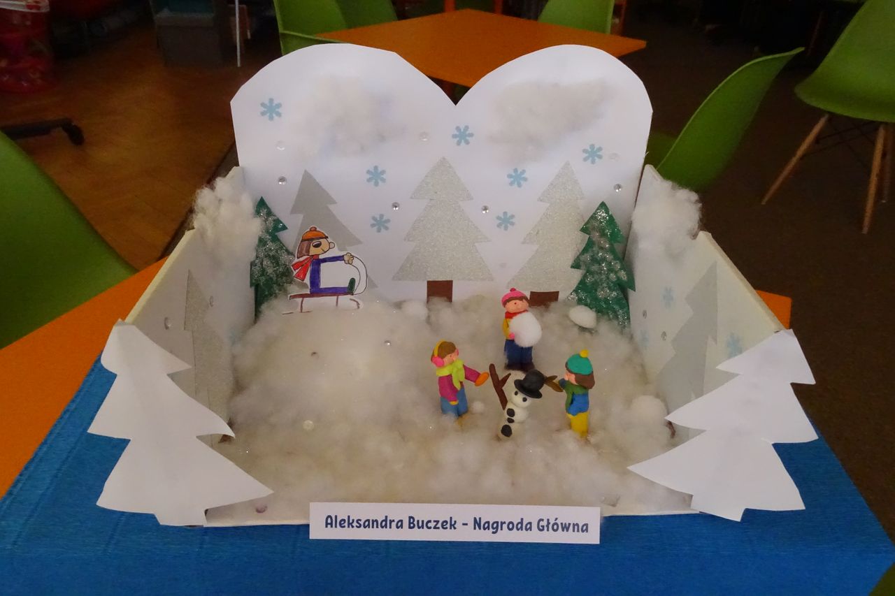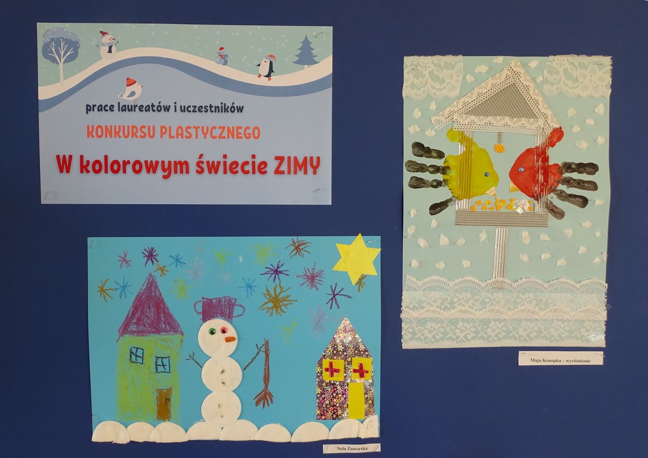 Rozstrzygnięto konkurs plastyczny „W kolorowym świecie zimy”, który został zorganizowany w ramach „Akcji Zima” i trwał przez całe ferie zimowe. Napłynęło 20 prac udowadniających, że zima rzeczywiście może być kolorowa. Wszystkie prace charakteryzowały się oryginalnością oraz estetyką wykonania. Przy ich wykonaniu użyto przeróżnych technik: rysowanie, malowanie, wyklejanie czy kolaż a także urozmaiconych materiałów: kredki, farby, koronki, płatki kosmetyczne, wata, plastelina, serwetki papierowe, gazety, patyczki do lodów, sznurki i kolorowe naklejki.