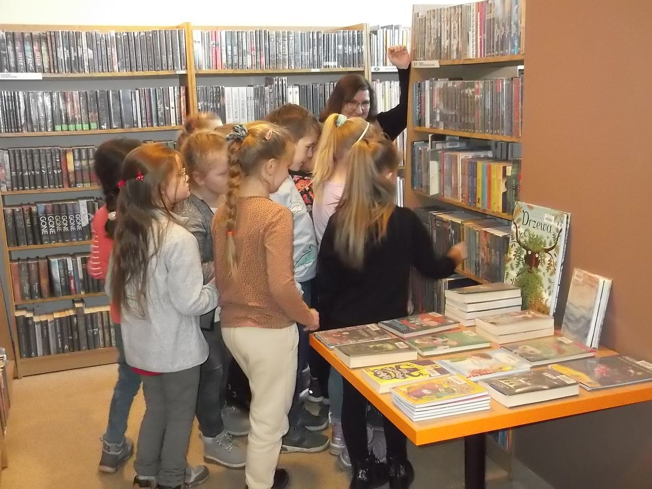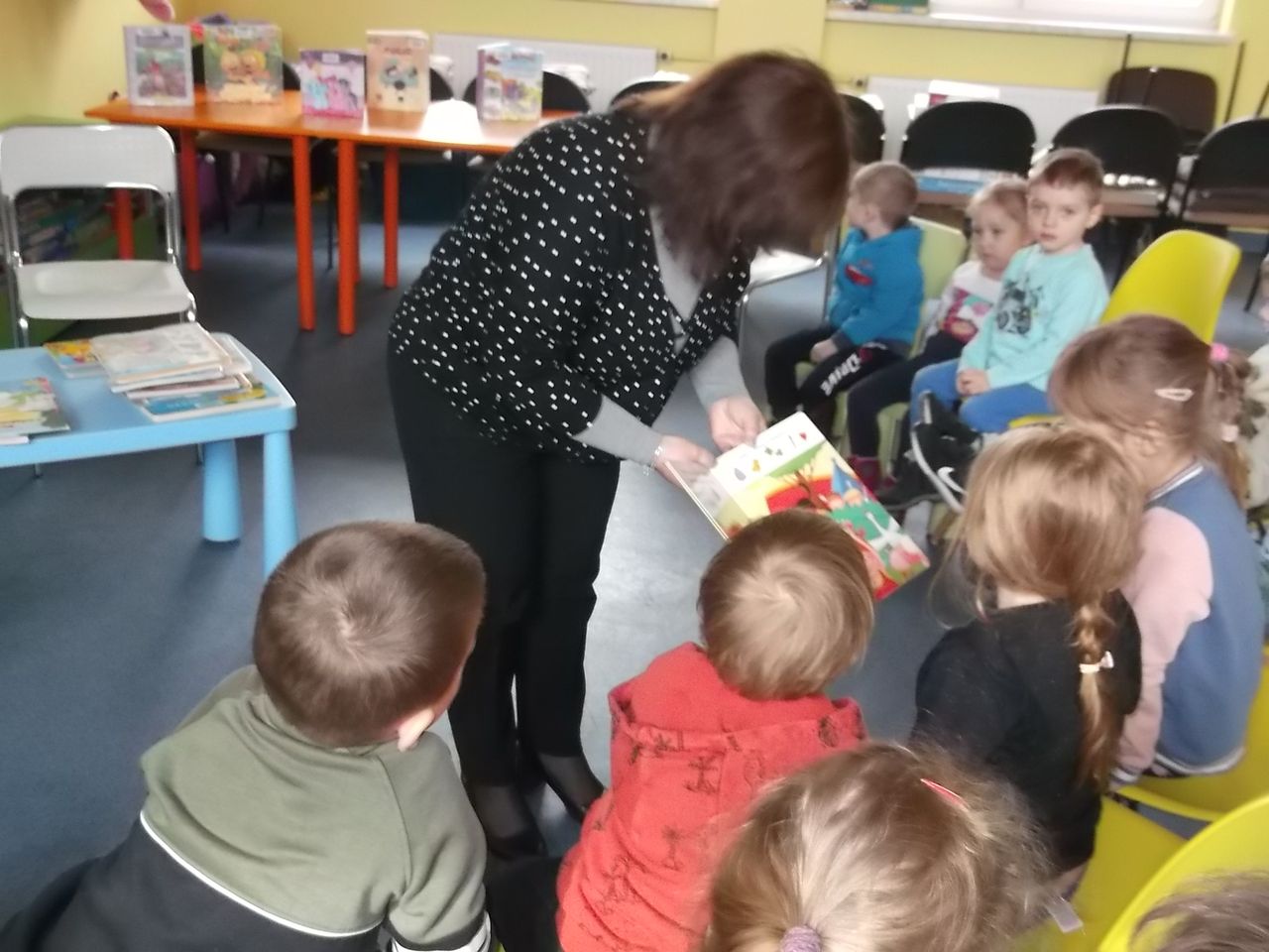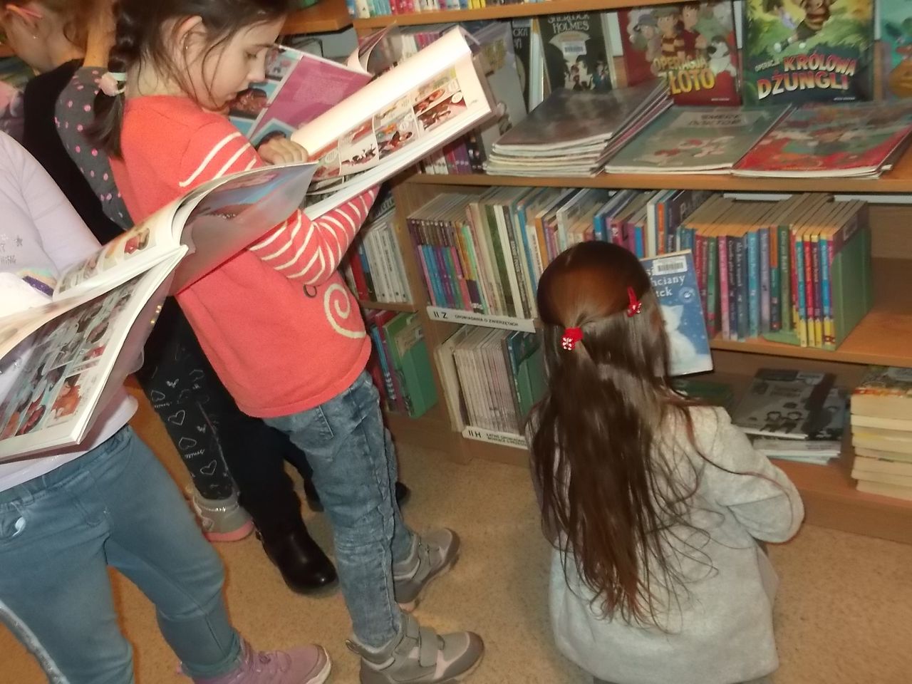 Jeden z nich – wiosenne bazie – pojawił się w bibliotece w postaci pracy plastycznej wykonanej wspólnie przez przedszkolaki. Z kolei ich młodsi koledzy i koleżanki, którzy po raz pierwszy przybyli do biblioteki wsłuchali z zainteresowaniem kilku bajeczek, w których rozpoznawały swoich ulubionych bohaterów, jak również poznawały całkiem nowych. Także wizyta uczniów kl. I była ich pierwszą wizytą w bibliotece. Dzieci zapoznały się z warunkami korzystania z biblioteki, poznały układ książek na półkach oraz ofertę książek, które mogły już samodzielnie przeczytać, a także wysłuchały wiersza J. Huszcza "Skarga książki" oraz bajki pt. "Nie lubię książek: koniec kropka".