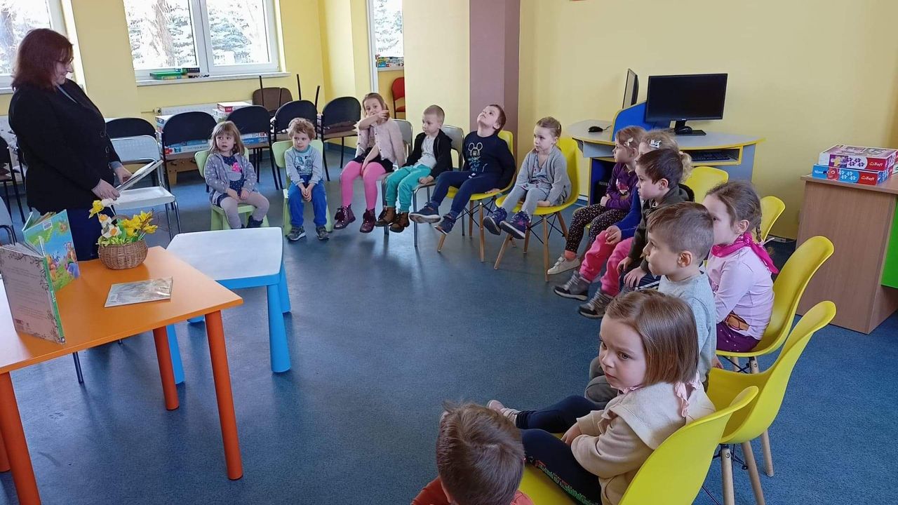 W marcu bibliotekę na osiedlu Dzików odwiedzili uczniowie I klasy Szkoły Podstawowej nr 9 oraz dwie grupy przedszkolne z Przedszkola Integracyjnego nr 9. 4-latki już po raz kolejny zawitały w gościnnych progach biblioteki. Tym razem spotkanie odbyło się pod tytułem "Poszukiwanie wiosny w bajkach", i jak sama nazwa wskazuje szukały zwiastunów nadchodzącej wiosny w tekstach bajek przeczytanych przez bibliotekarkę.