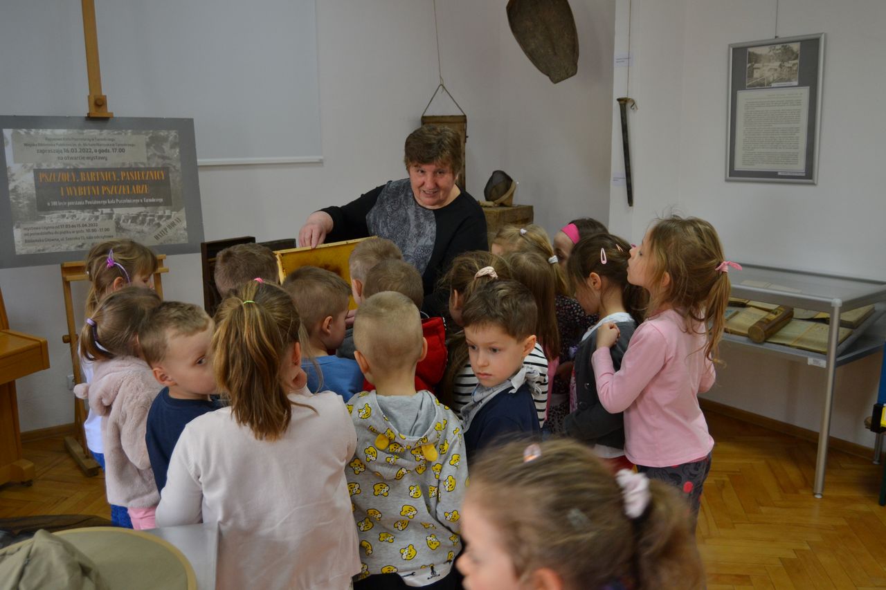 Gościem trzeciego spotkania z cyklu „Pszczelarze o pszczołach” była pani Krystyna Gryszun, która swoją opowieścią przeniosła 6 latki z Przedszkola nr 3 w Tarnobrzegu w świat miododajnych owadów. Na wstępie, dzieci dowiedziały się że w ulu jest królowa – matka, która jest najważniejsza w całej „pszczelej rodzinie” oraz jakie funkcje pełnią zbieraczki miodowe i pyłkowe, magazynierki, strażniczki i trutnie.