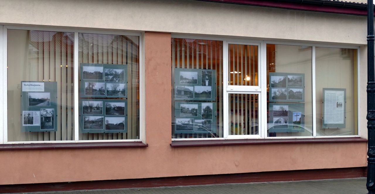 W oknach Miejskiej Biblioteki Publicznej im. dr. Michała Marczaka, od ul. Szerokiej, prezentowana jest ekspozycja „Tu był Kajmów…” przypominjąca nieistniejącą już miejscowość. Miejscowość, którą w dużej części, tak jak Machów, wchłonęła kopalnia siarki. Natomiast to co zostało, w listopadzie 1992 roku, decyzją ówczesnej Rady Miasta, wcielono w obręb sąsiadującego Miechocina. Kajmów chociaż był najmniejszą wioską w parafii miechocińskiej miał swój niepowtarzalny wiejski klimat.