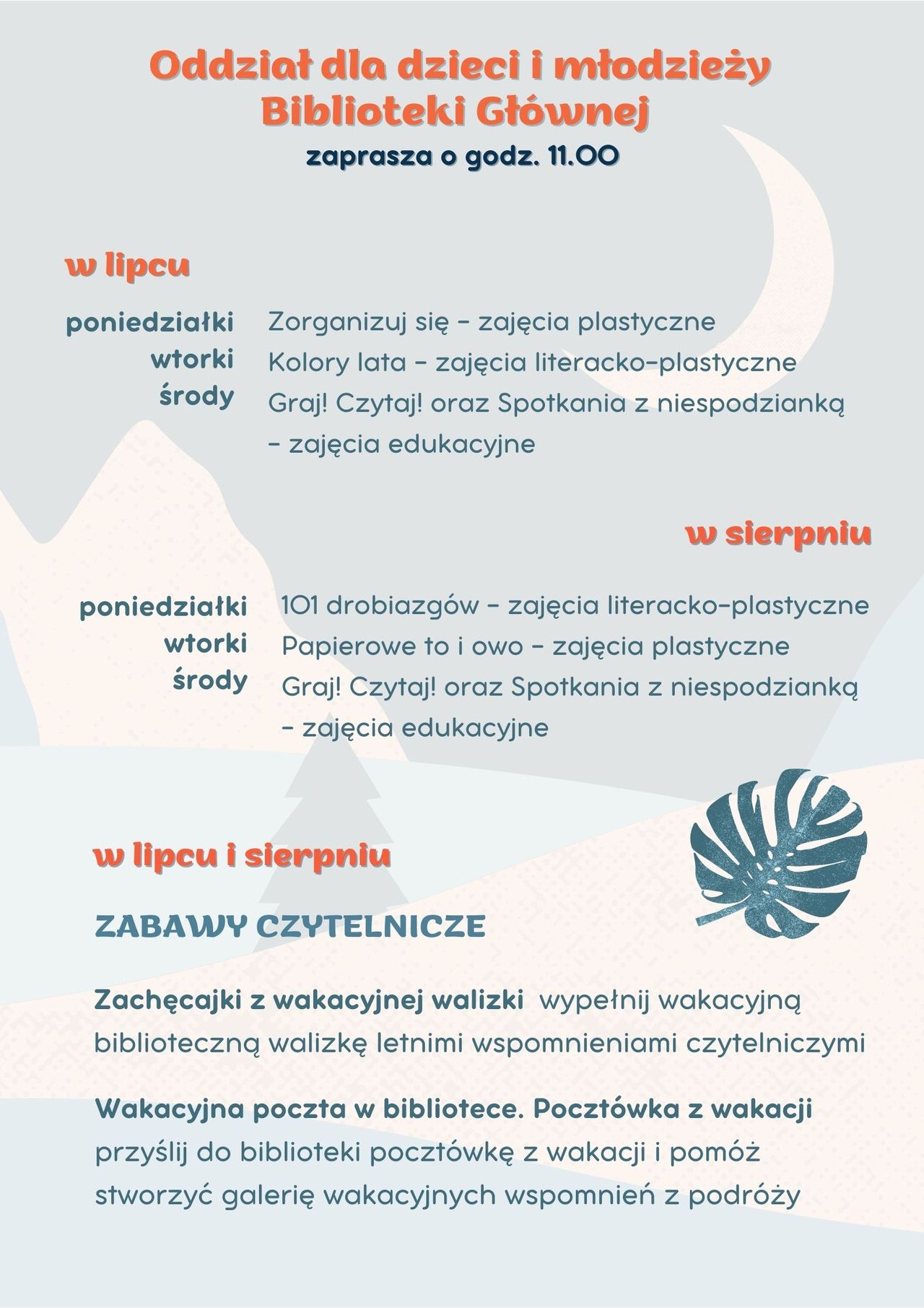 Tegoroczna Akcja Lato w bibliotece przebiegać będzie pod hasłem „Bibliowakacje”. Kryje się pod nim cała panorama atrakcji przygotowanych zarówno przez Bibliotekę Główną, jak również filie biblioteczne. Z pewnością każde dziecko znajdzie wśród nich coś, co pozwoli w ciekawy sposób spędzić wakacyjny czas.