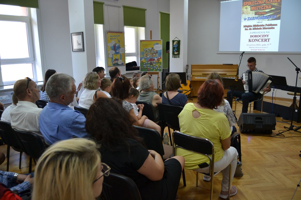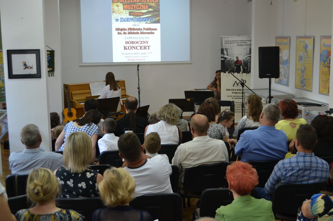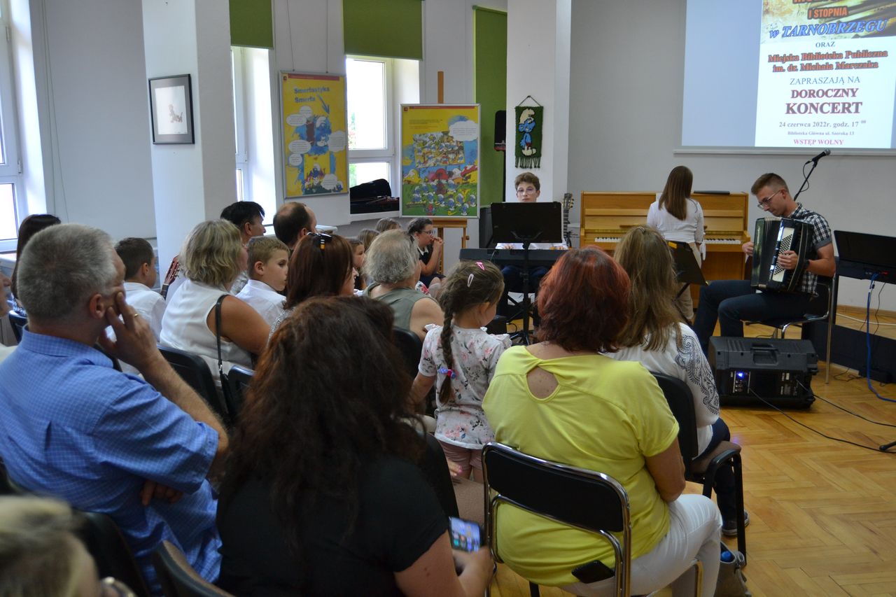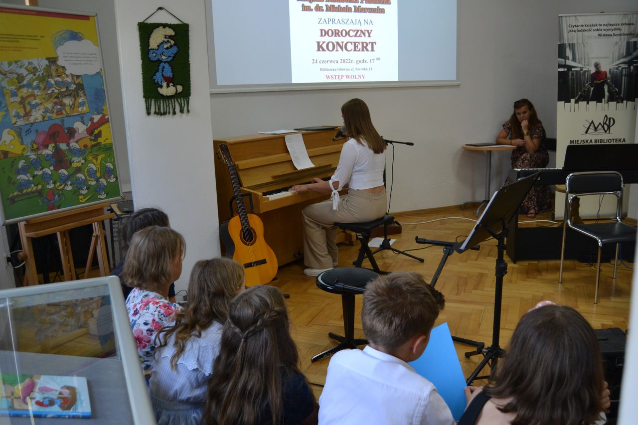 W piątek, 24 czerwca, sala odczytowa rozbrzmiewała muzyką. Podczas zorganizowanego w naszej Bibliotece Dorocznego koncertu młodzi artyści – uczniowie Społecznej Szkoły Muzycznej I Stopnia w Tarnobrzegu z dreszczykiem emocji, prezentowali swoje umiejętności wokalne oraz gry na różnych instrumentach.