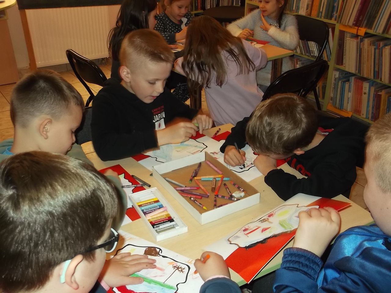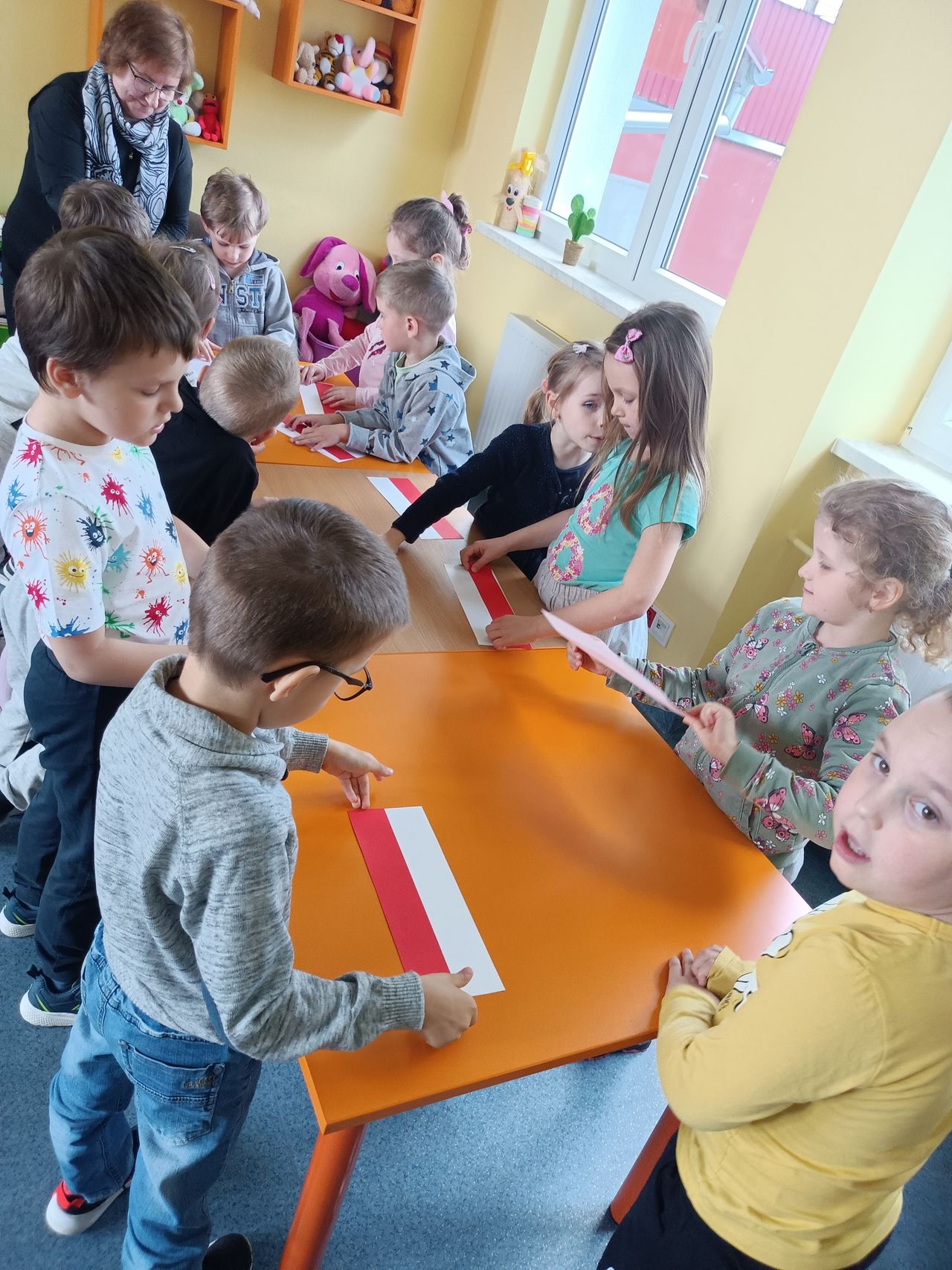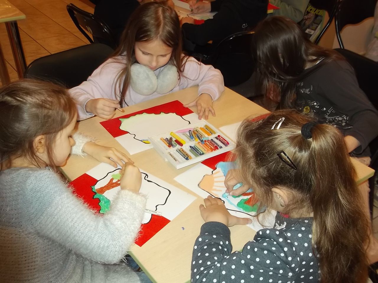 Bibliotekarze, poprzez bardzo zróżnicowane formy pracy, przybliżyli najmłodszym genezę święta Dnia Flagi, znaczenie barw oraz obowiązujące zasady eksponowania jednego z naszych symboli narodowych.Spotkania, podczas których wykorzystano fragmenty literatury, gry edukacyjne, quizy, prezentacje multimedialne, karaoke oraz manualne zdolności uczestników w sposób lekki a jednocześnie z należytym szacunkiem wprowadziły dzieci w świadomy odbiór nadchodzącego święta. Wykonane podczas spotkań kontury mapy Polski i flag wypełnione biało – czerwonymi sercami czy dłońmi to tylko niektóre z przykładów wyrażające poczucie tożsamości narodowej przez najmłodszych.