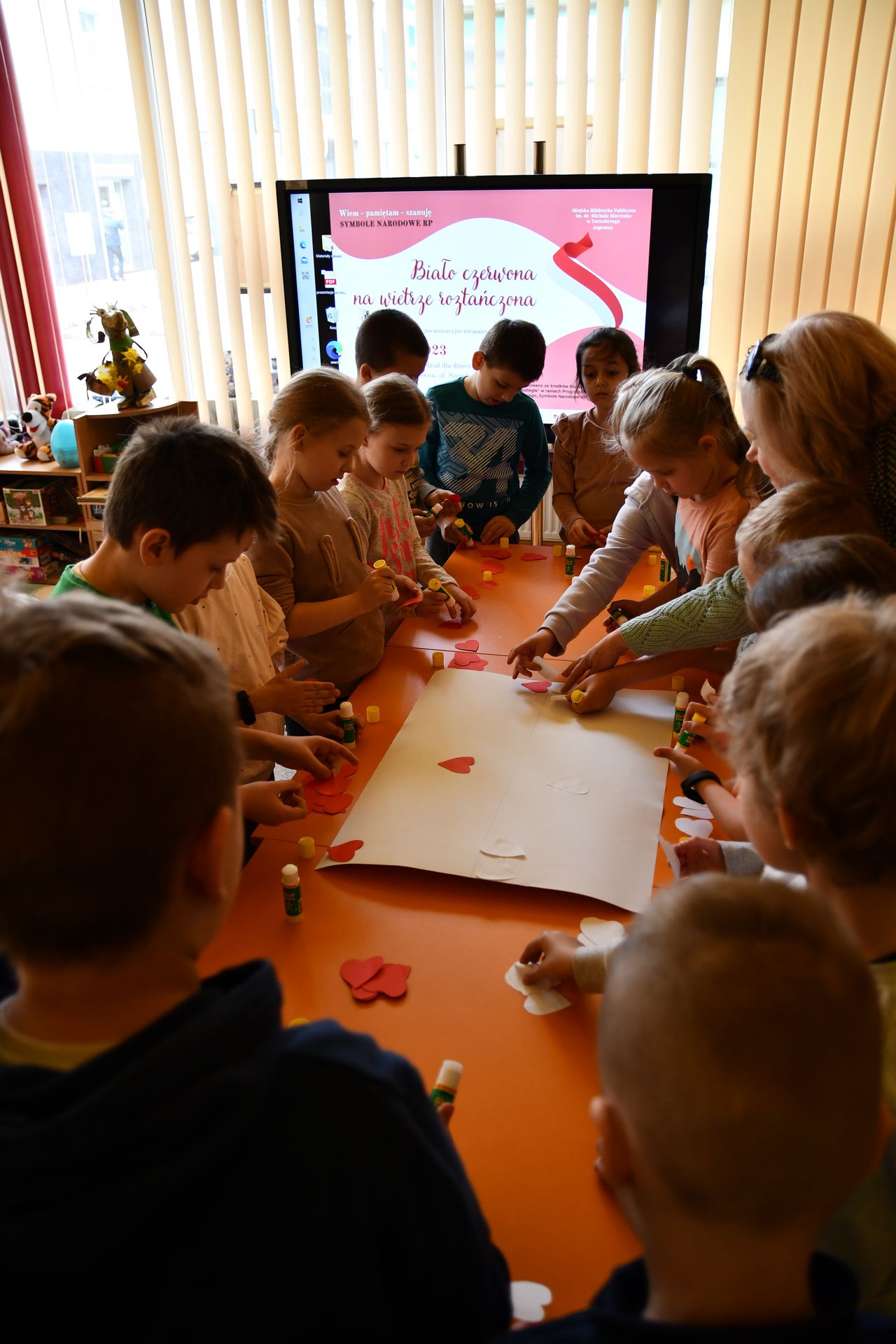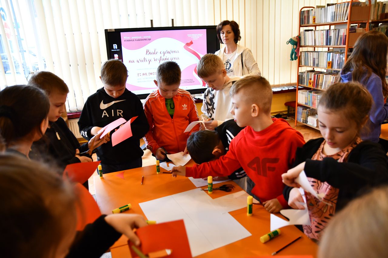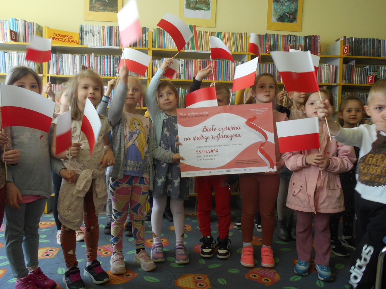 Pierwszym elementem zadania „Wiem – pamiętam – szanuję”, dofinansowanego ze środków Biura „Niepodległa” w ramach Programu Dotacyjnego „Symbole Narodowe RP”, było przeprowadzenie spotkań „Biało czerwona na wietrze roztańczona”, w dniach od 26.04 – 02.5.2023 we wszystkich agendach i filiach Miejskiej Biblioteki Publicznej im. dr. Michała Marczaka w Tarnobrzegu.