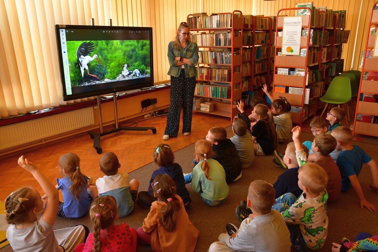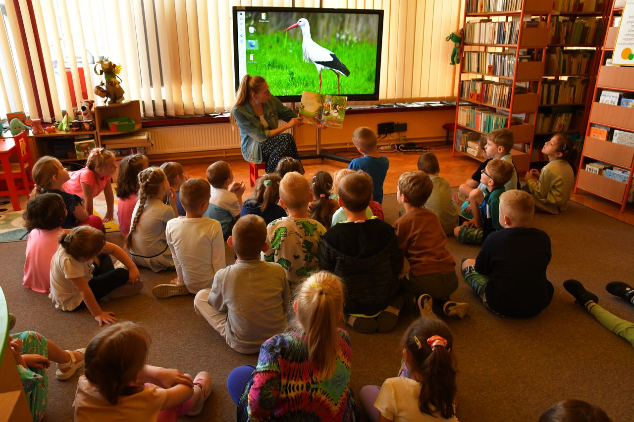 W Oddziale dla dzieci i młodzieży Biblioteki Głównej, 5 i 6-latki z Przedszkola „Bajka” celebrowały kolejne święto nietypowe, tym razem ekologiczne – Dzień Bociana Białego. Bocian w polskiej tradycji i kulturze jest ptakiem wyjątkowym i zajmuje w niej bardzo ważne miejsce. Dzieci dowiedziały się, czego zwiastunem jest przylot bocianów, dlaczego odlatują do ciepłych krajów, jaki dystans musza przelecieć i w jakim czasie, jak duże są bocianie gniazda, czym się żywią i jaka jest ich wielkość.