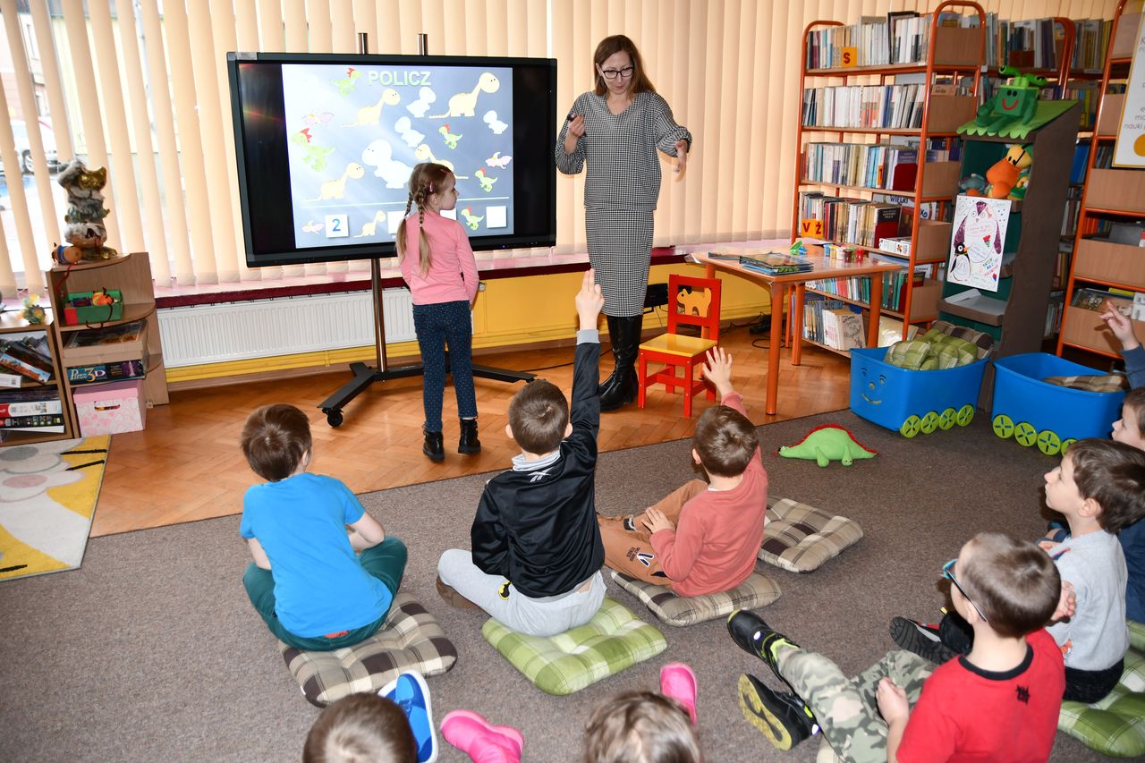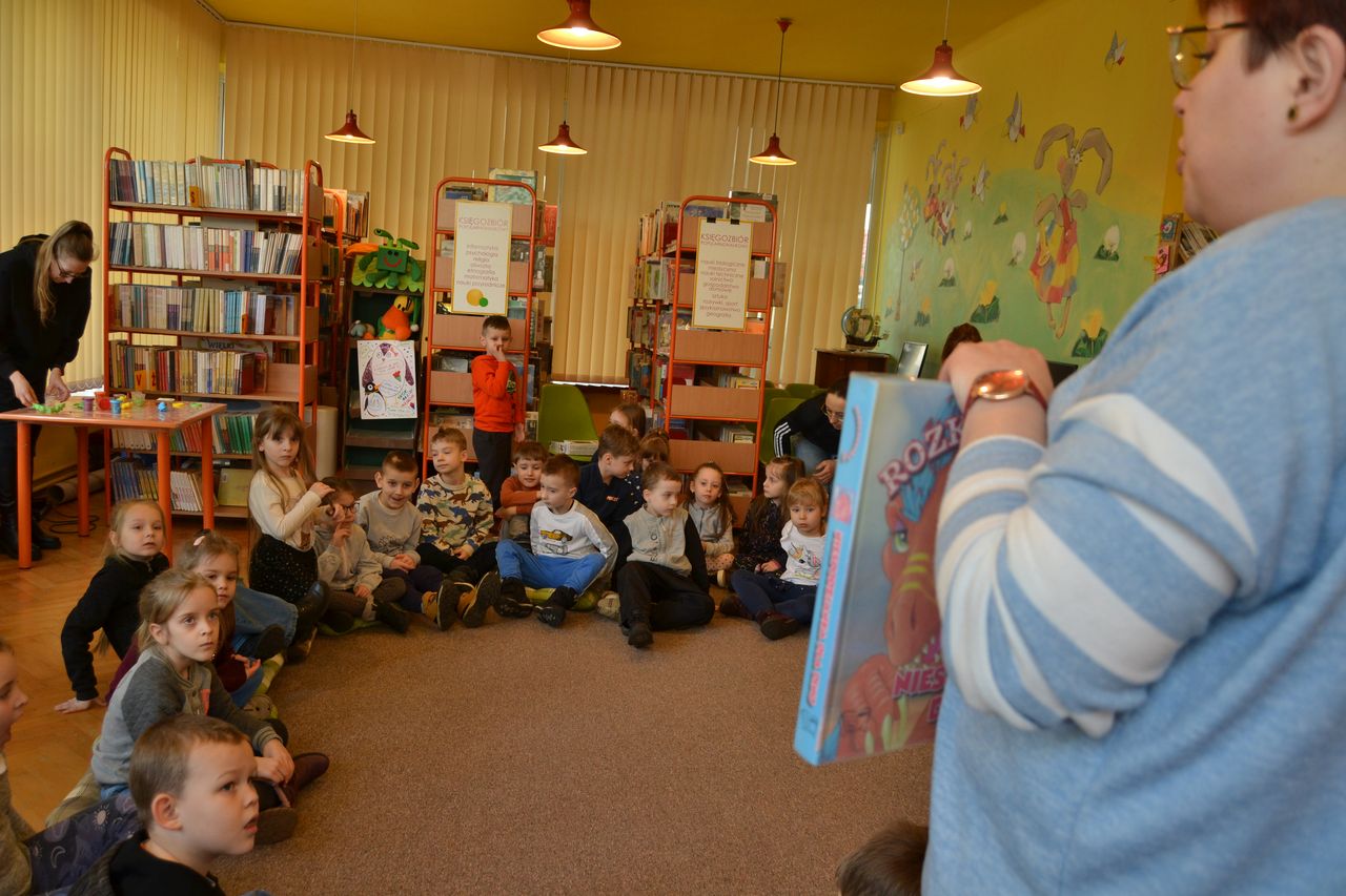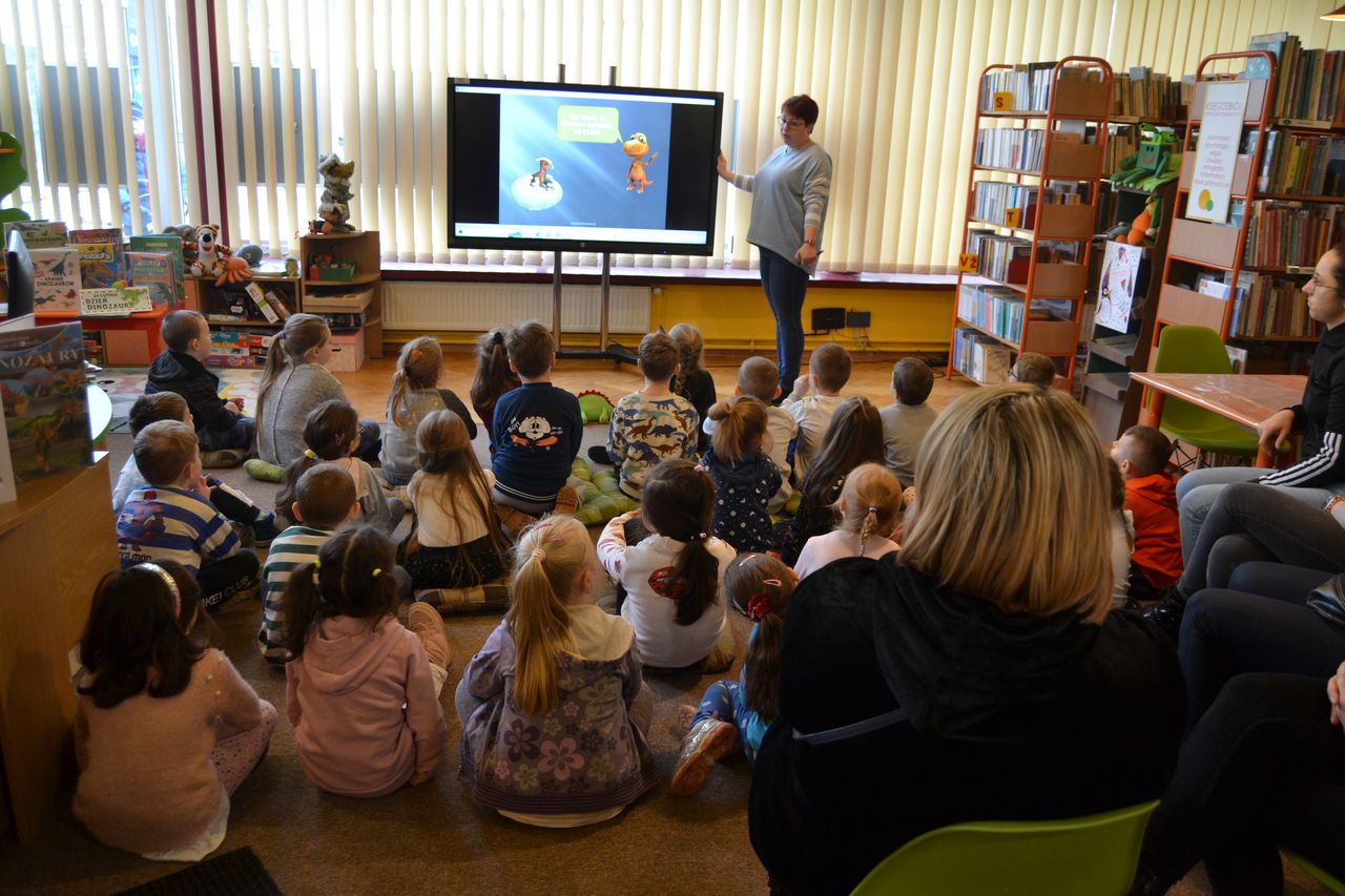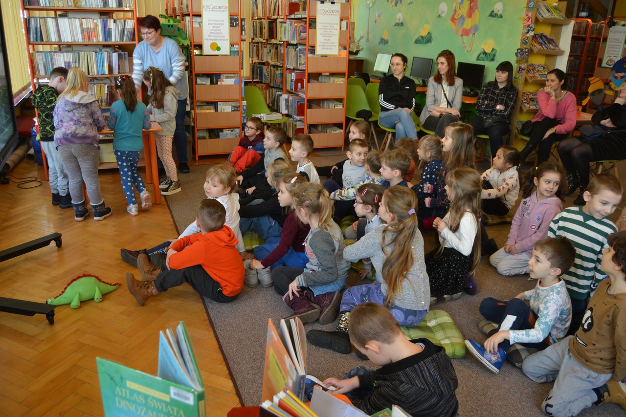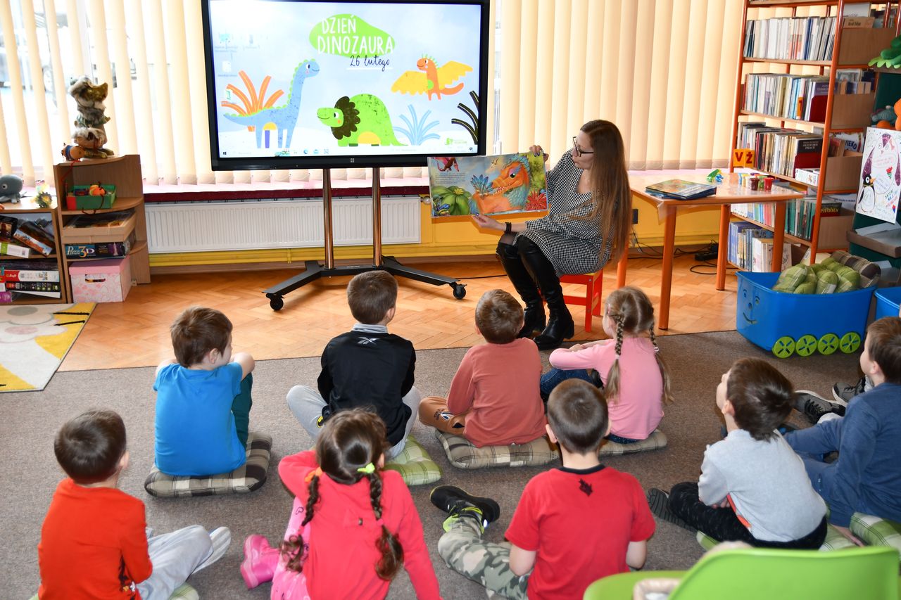 Z okazji Nietypowego Święta – Dnia Dinozaura, które przypada na 27 lutego Oddział dla dzieci i młodzieży Biblioteki Głównej odwiedziły trzy grupy przedszkolne – 5 i 6-latki z Przedszkola „Bajka” oraz 6-latki z Przedszkola nr 5. Dzięki prezentacji dzieci przeniosły się w czasie wiele milionów lat wstecz.