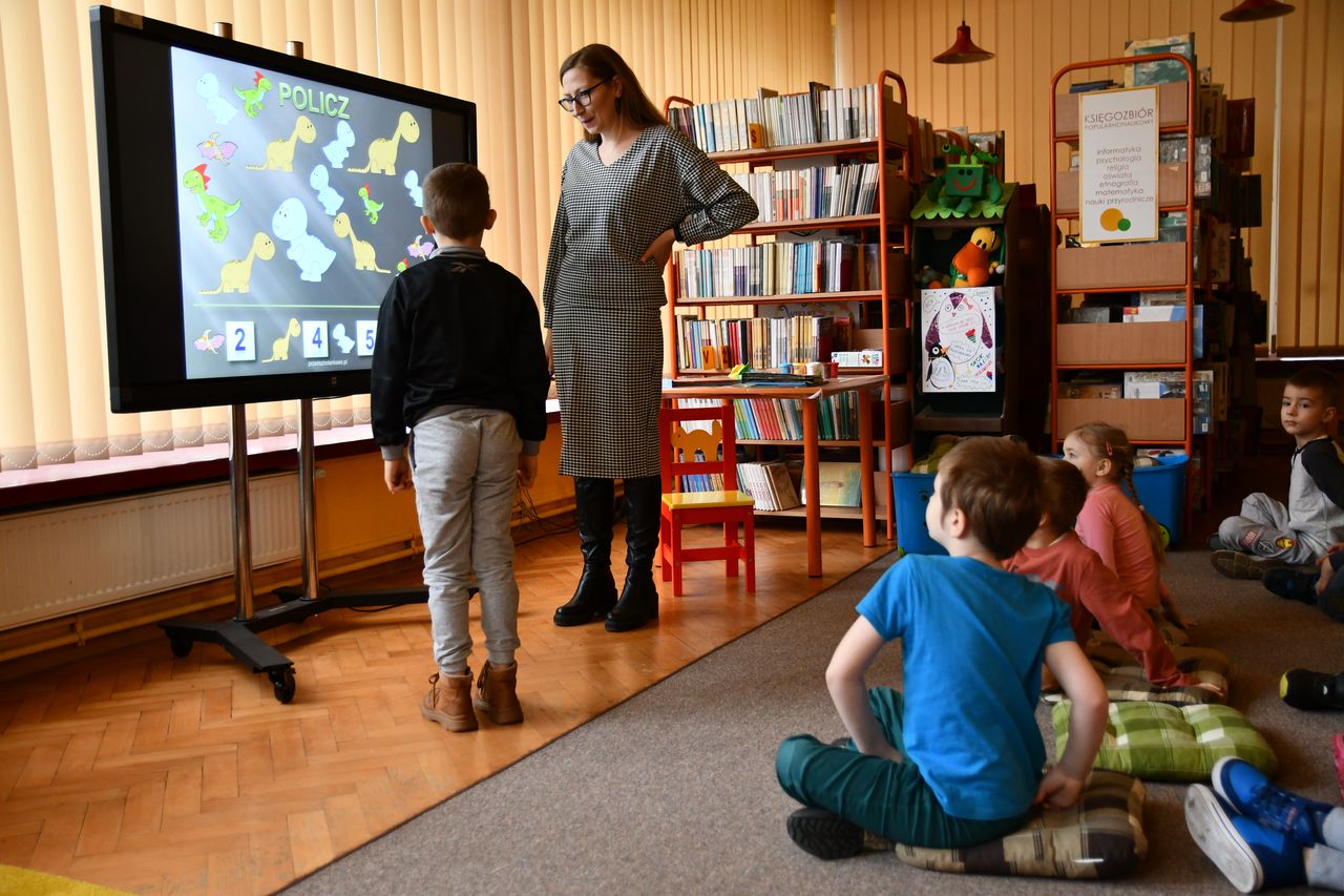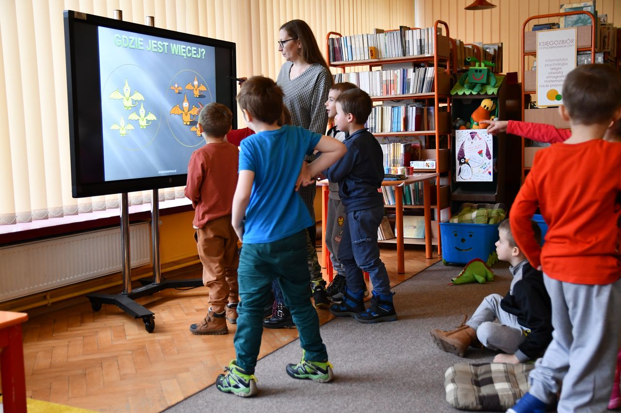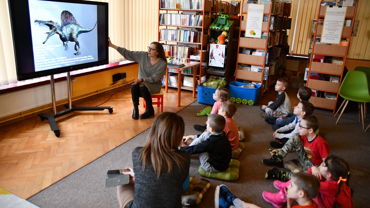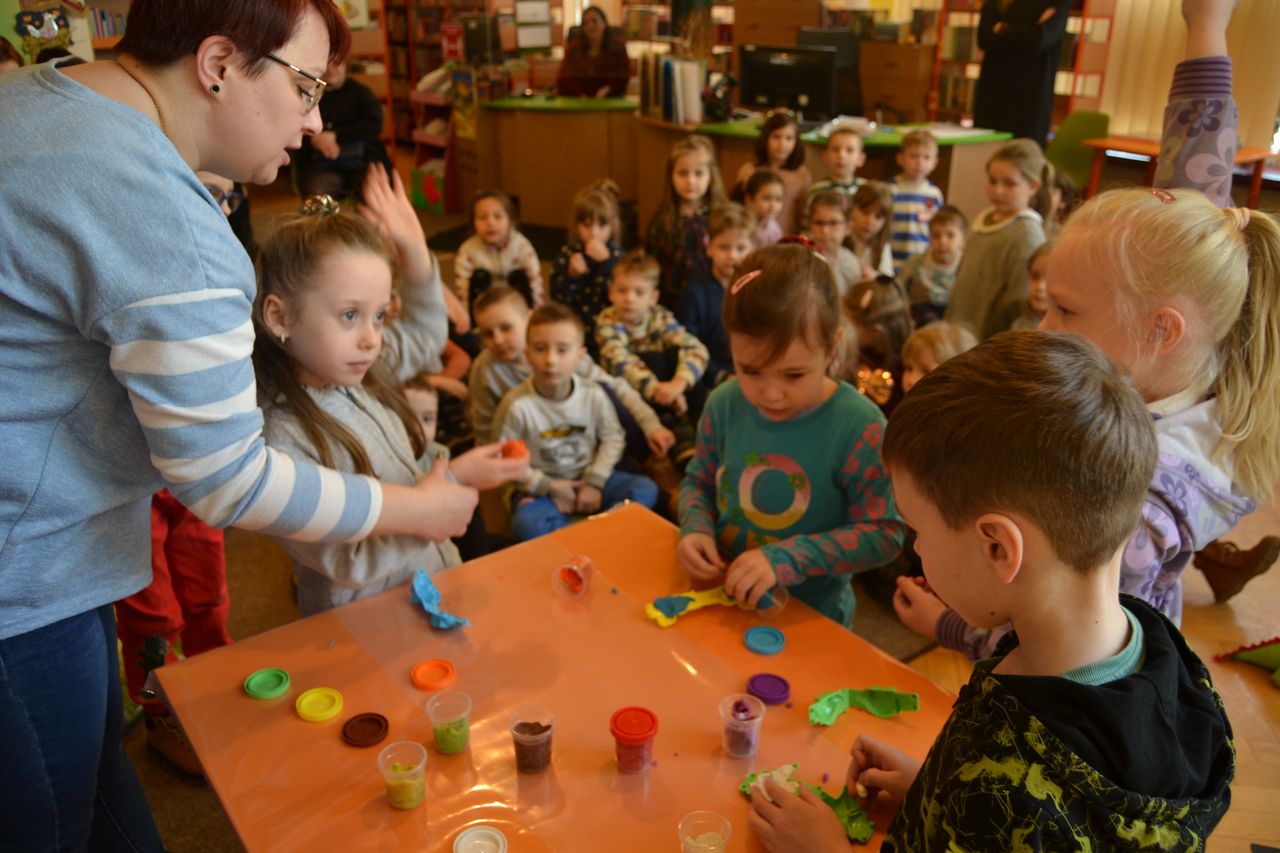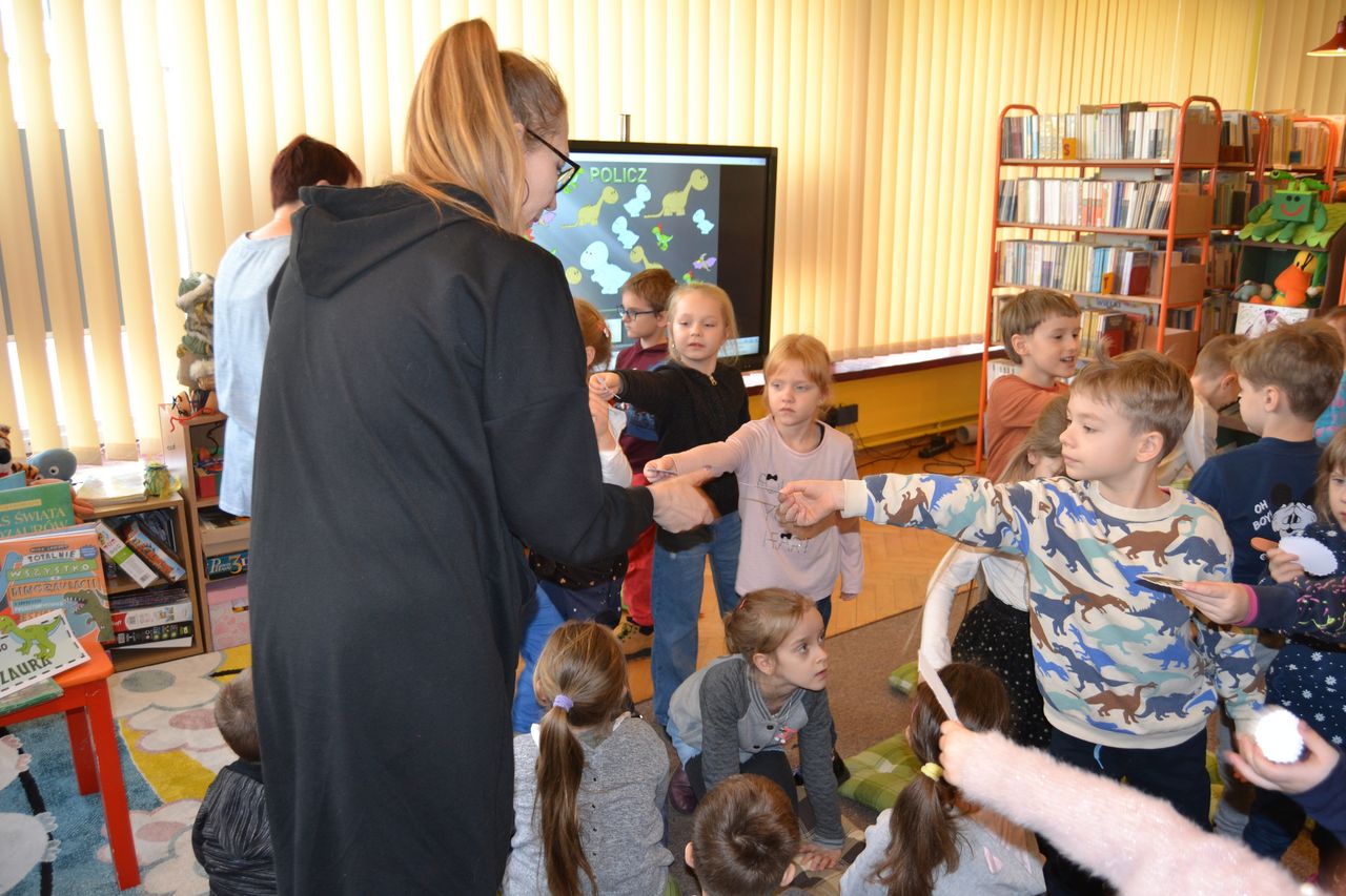 Z okazji Nietypowego Święta – Dnia Dinozaura, które przypada na 27 lutego Oddział dla dzieci i młodzieży Biblioteki Głównej odwiedziły trzy grupy przedszkolne – 5 i 6-latki z Przedszkola „Bajka” oraz 6-latki z Przedszkola nr 5. Dzięki prezentacji dzieci przeniosły się w czasie wiele milionów lat wstecz.