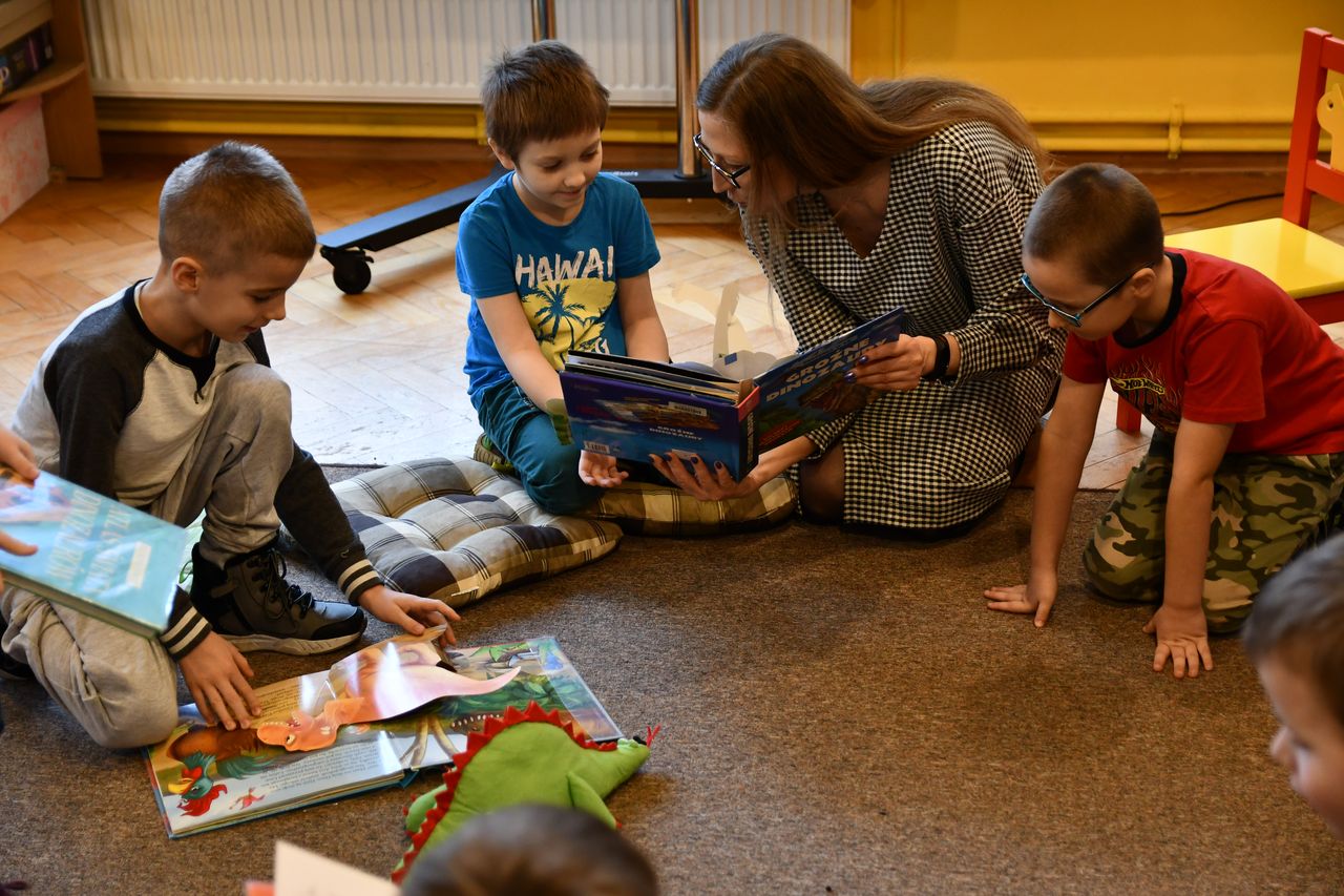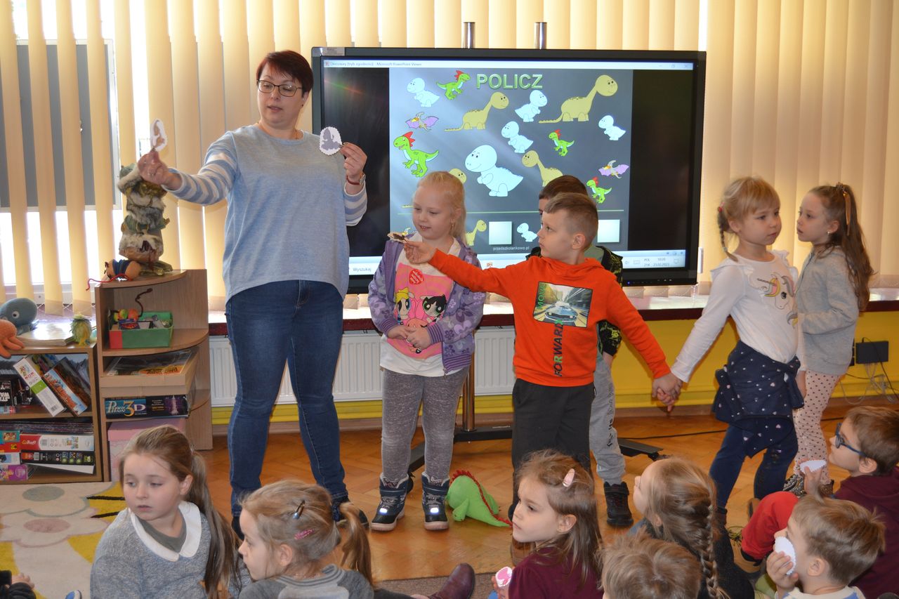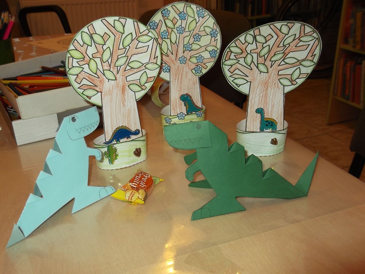 Razem z małym dinozaurem Dinem wędrowały przez miejsca, w których żyły te wymarłe gady a także poznawały gatunki dinozaurów roślinożernych i mięsożernych.Dowiedziały się także czym zajmuje się paleontolog, jak wyglądają wykopaliska i co to są skamieliny. Wszystkie grupy uczestniczyły również w dinozaurowych zabawach oraz samodzielnie wykonały bardzo oryginalne wizerunki dinozaurów. Przedszkolaki z Przedszkola nr 5 z zainteresowaniem wysłuchały także opowieści o małym triceratopsie Dinusiu, który zamiast pójść spać wybrał się na wycieczkę po dżungli. W Filii nr 5 na os. Wielowieś też uczczono Dzień Dinozaura – dzieci uczestniczyły w zajęciach literacko-plastycznych, których bohaterem były oczywiście dinozaury. Dzieci wykonały kolorowe drzewka oraz figurki dinozaurów a także zapoznały się z najnowszymi książkami o dinozaurach.
