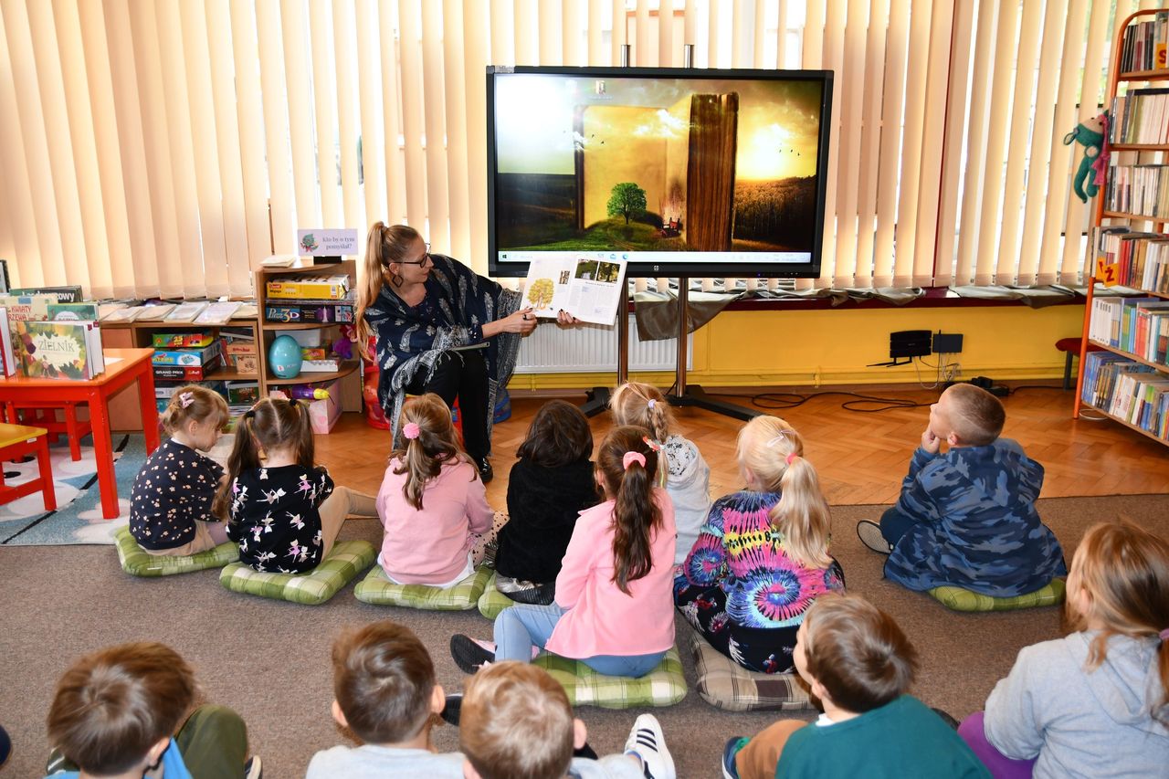 Zarówno grupa 5-latków, jak i 6-latków z Przedszkola Bajka, które z tej okazji odwiedziły Oddział dla dzieci i młodzieży Biblioteki Głównej, dowiedziały się, że drzewa i lasy są niezbędne do trwania życia na Ziemi. Z zaprezentowanej przez bibliotekarkę książki uzyskały informacje o tym, że drzewa oczyszczają powietrze, dają opał, chronią przed wiatrem i wodą, zapobiegają zmianom klimatu, ale przede wszystkim, że są źródłem pokarmu dla ludzi i zwierząt a także domem dla wielu gatunków stworzeń. Na podstawie już utrwalonej wiedzy wspólnie doszły do wniosku, że drzewa należy chronić i właściwie zachowywać się w lesie. Podczas spotkania dzieci chętnie sięgnęły również po inne publikacje o tej tematyce oraz wykonały własne, indywidualne drzewa, które mogły zabrać ze sobą i „posadzić” na przedszkolnej tablicy.