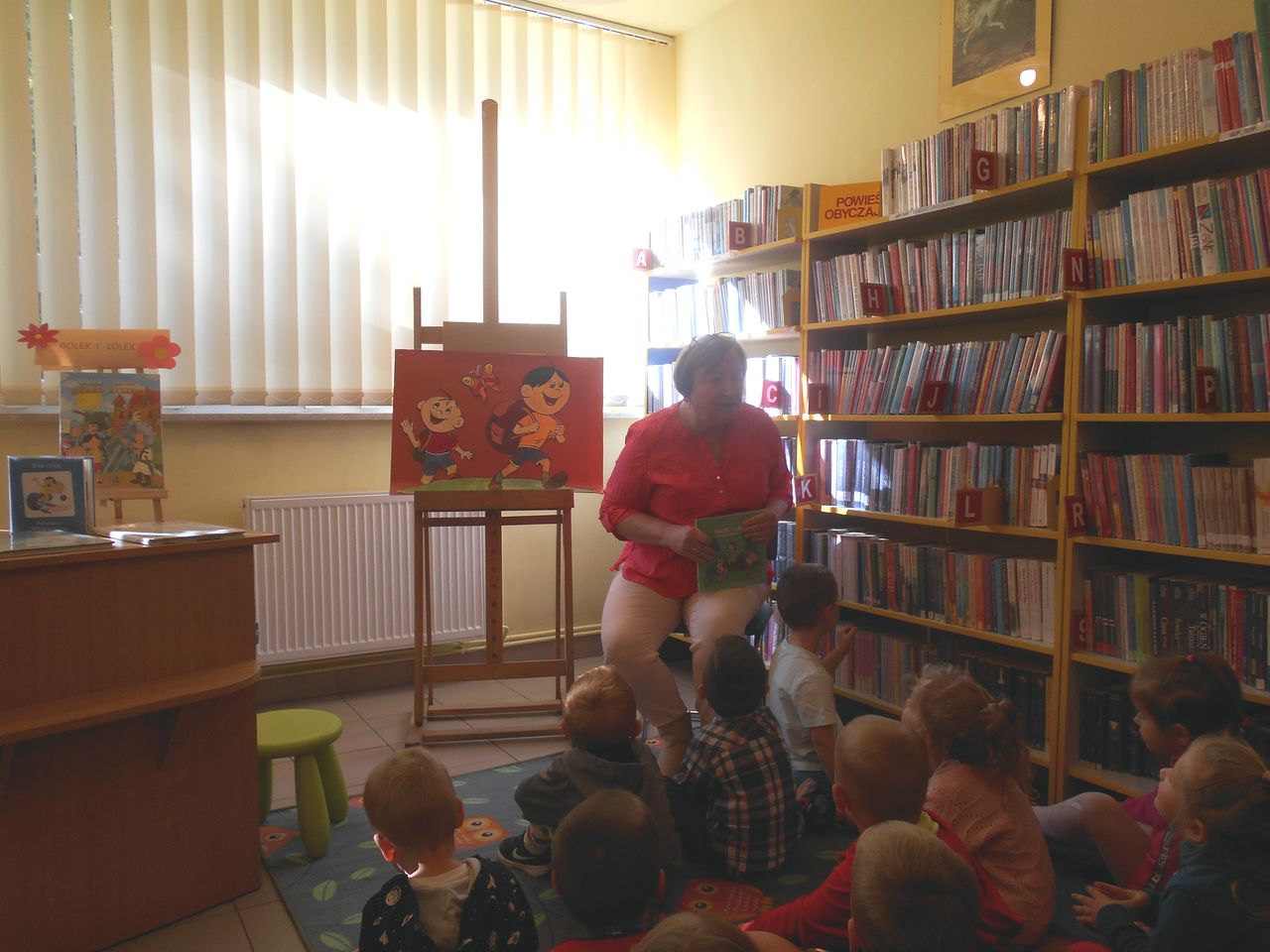 W środę, 27 września 2023 roku do Biblioteki przy ulicy Kopernika zawitała grupa czterolatków z Przedszkola nr 15. Dzieci przybyły na spotkanie pt. ”Bolek i Lolek leśna przygoda”, które jest kontynuacją cokwartalnego cyklu książkowego „Ich znamy, ich kochamy. Bajkowi Bohaterowie”, cieszącego się dużym zainteresowaniem wśród dzieci.