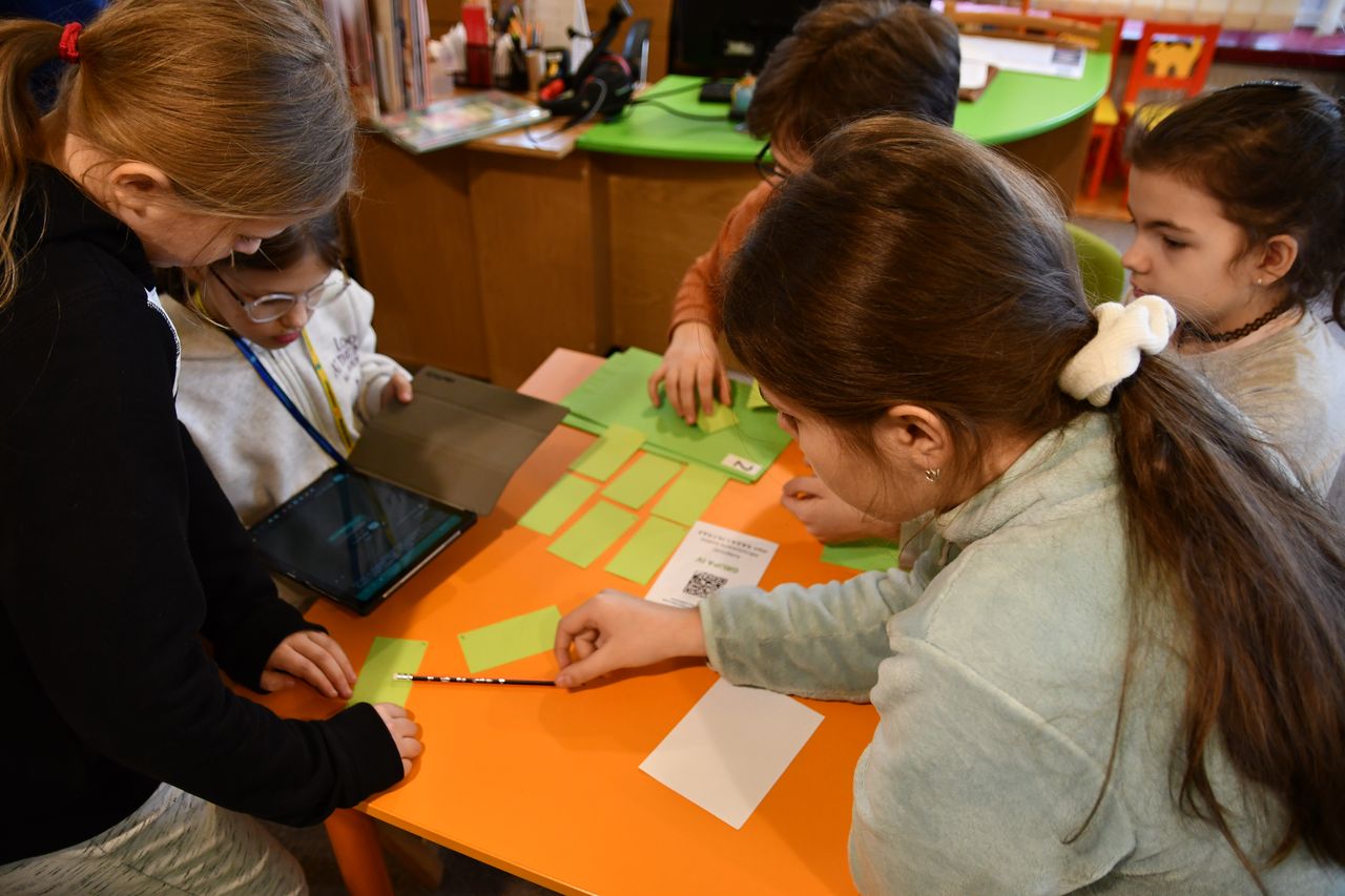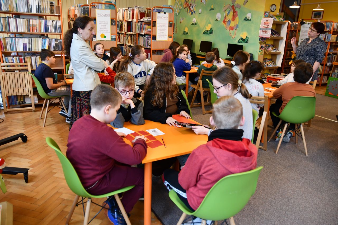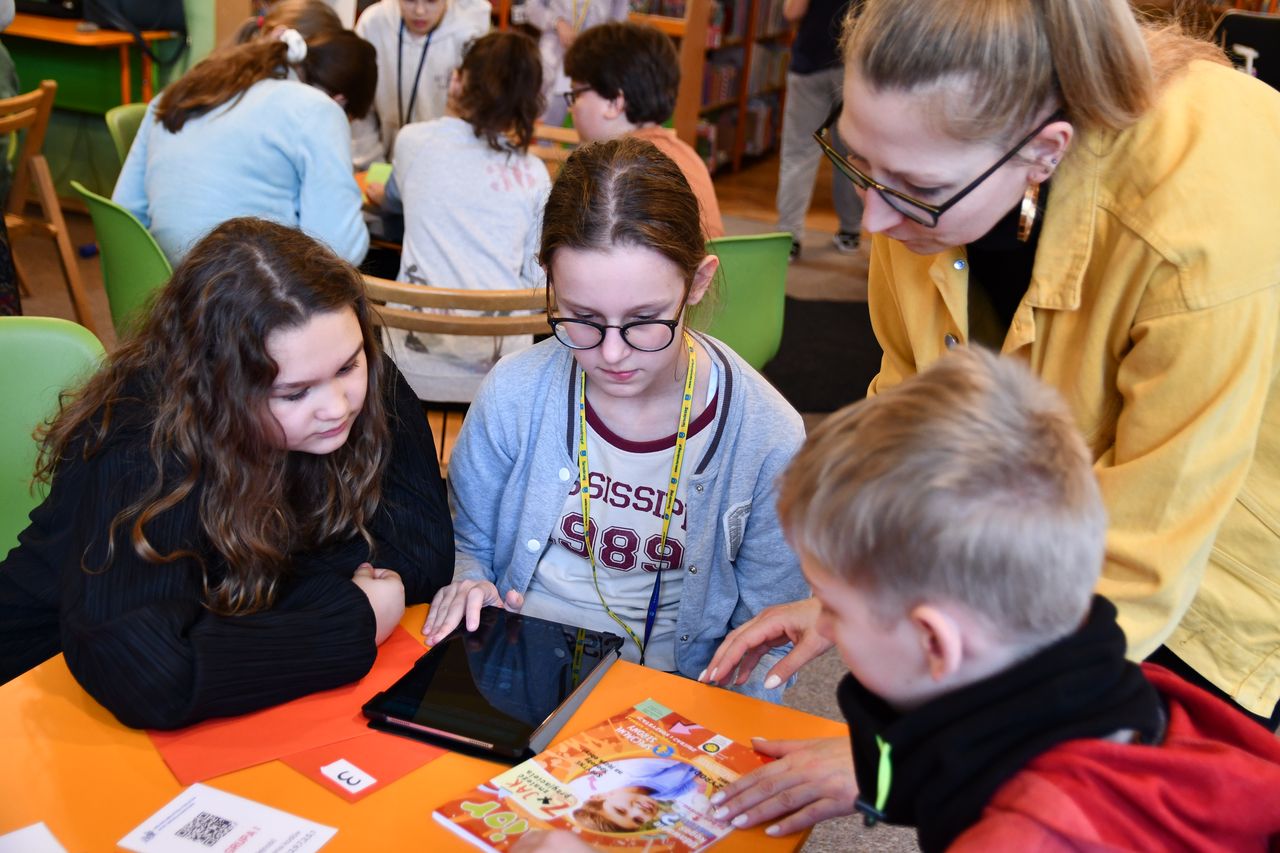 We wtorek, 14 marca, odbyła się kolejna lekcja edukacyjna pt. „QR kody – czytanie na ekranie”. Uczestniczyli w niej – tym razem – uczniowie 4 kl. ze Szkoły Podstawowej nr 4. Z zapałem odnajdywali ukryte między regałami kody QR, które po sczytaniu tabletem, odsyłały do kolejnych zadań.