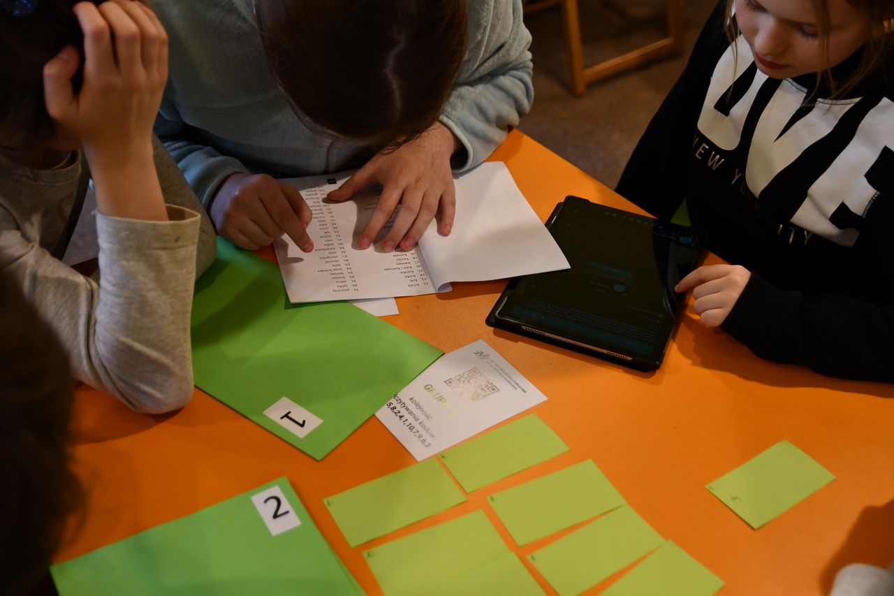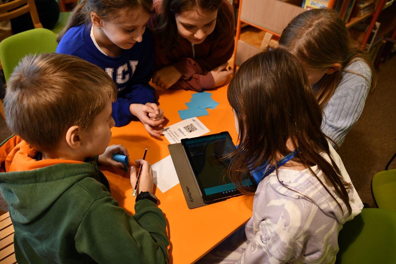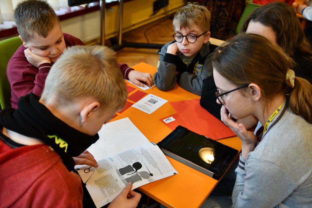 We wtorek, 14 marca, odbyła się kolejna lekcja edukacyjna pt. „QR kody – czytanie na ekranie”. Uczestniczyli w niej – tym razem – uczniowie 4 kl. ze Szkoły Podstawowej nr 4. Z zapałem odnajdywali ukryte między regałami kody QR, które po sczytaniu tabletem, odsyłały do kolejnych zadań.