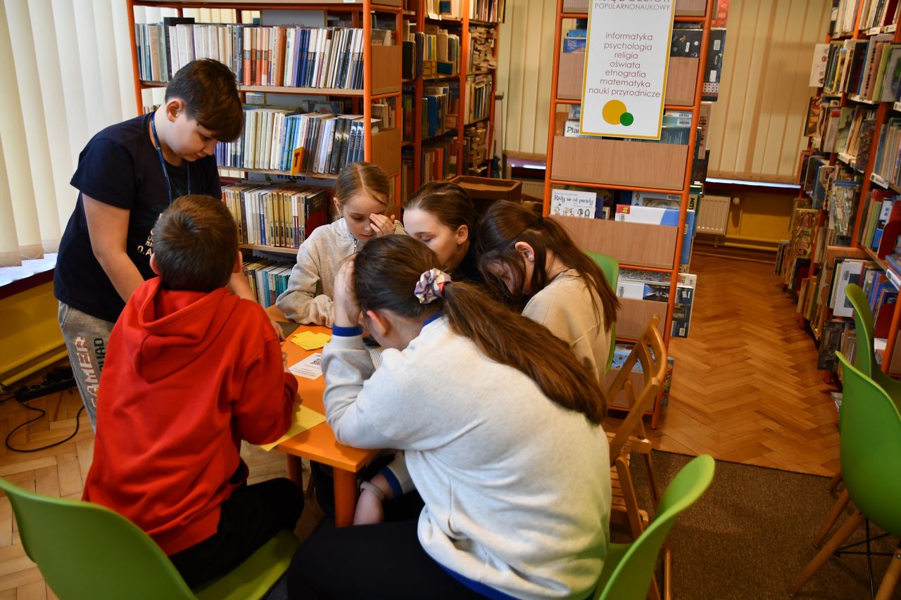 Należało rozwiązać rebus, wyszukać litery oraz wyrazy w wybranych książkach i czasopismach, a w konsekwencji ułożyć z nich końcowe hasło. Oprócz podejmowania wyzwań uczestnicy musieli także wykazać się umiejętnością czytania ze zrozumieniem, jak również współpracy w grupie. Całe zadanie pokazało młodzieży, że czas spędzony z książką w bibliotece może być interesujący i pouczający.