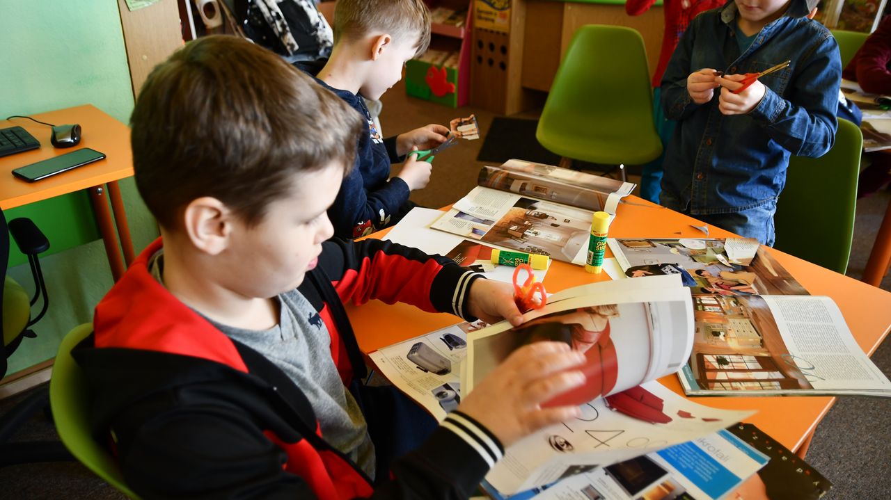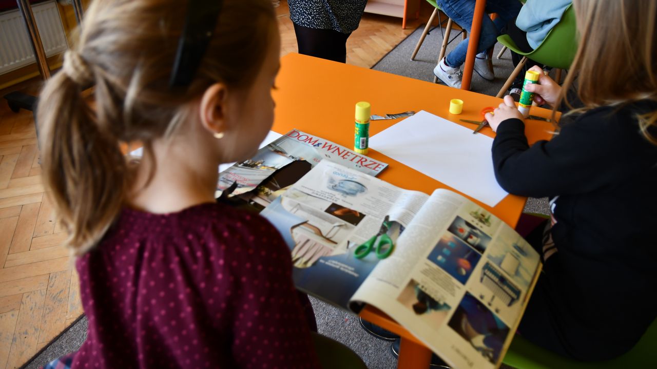 Na wstępie uczniowie odbyli wędrówkę przez historię pisma i książki – począwszy od pisma obrazkowego, węzełkowego, poprzez pikotogramy, hieroglify, aż po powstanie alfabetu i książkę pisaną, starodruki oraz książkę drukowaną. Poznały także różne rodzaje książek - dźwiękowe, paragrafowe, przestrzenne, 3D oraz wysłuchały fragmentu książki pt. „Mała zła książka”. Bez trudu poradziły sobie z zadaniem polegającym na rozszyfrowaniu tytułów książek dla dzieci zapisanych przy pomocy emotikonek. Spotkanie zakończyło się wspólnym tworzeniem książki leporello techniką kolażu. Po odczytaniu historii inspirowanej powstałymi obrazkami wymyślono tytuł – „Historia kotki Róży i jej szalonej rodzinki” cz. 1. Wszystko zatem wskazuje, że publikacja będzie miała swoją kontynuację.
