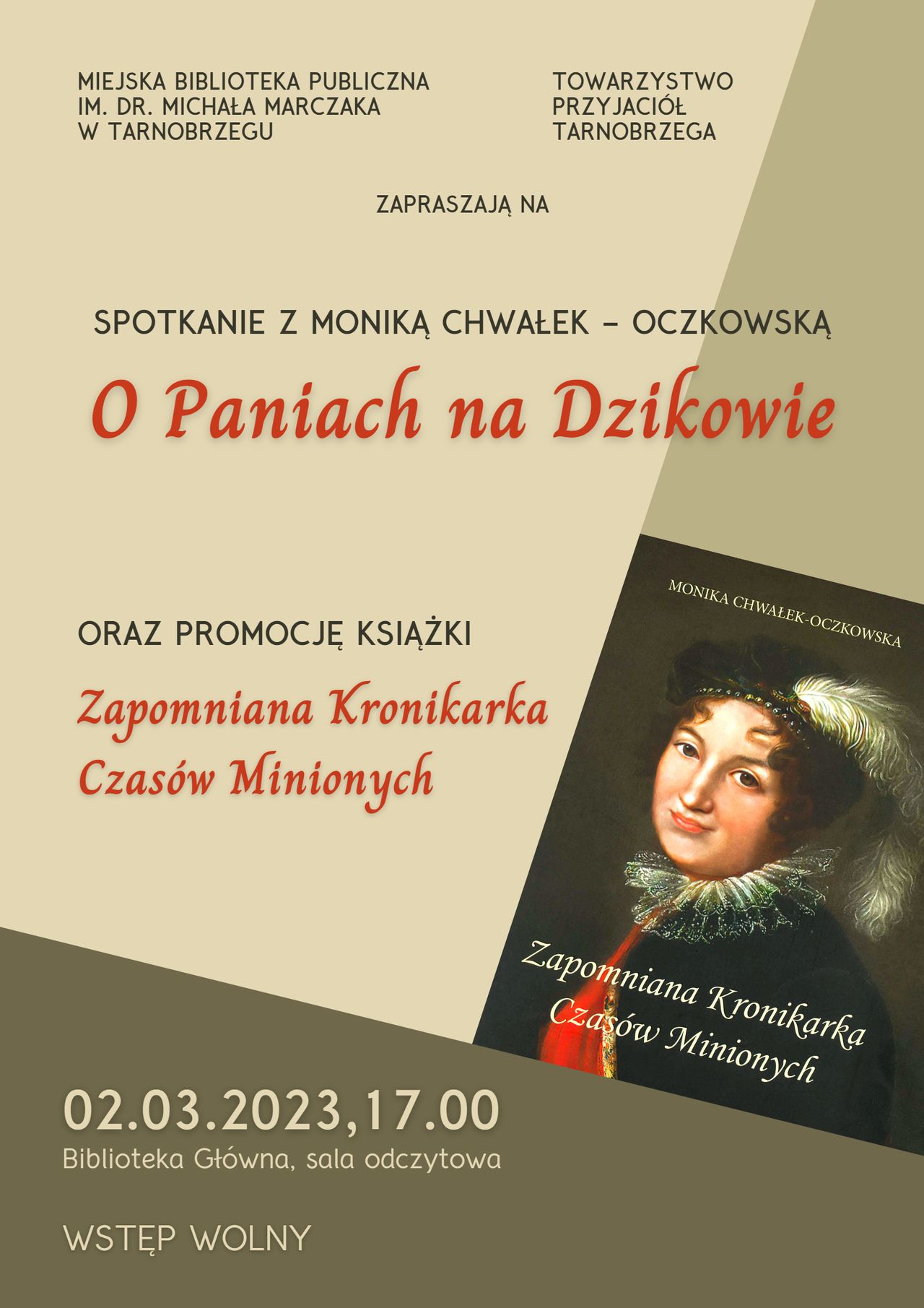 Miejska Biblioteka Publiczna im. dr. Michała Marczaka w Tarnobrzegu i Towarzystwo Przyjaciół Tarnobrzega wspólnie zorganizowały spotkanie „O Paniach na Dzikowie”, którego gościem była, Monika Chwałek – Oczkowska, związana z Tarnobrzegiem romanistka, pasjonatka historii rodu Tarnowskich, zafascynowana zwłaszcza postacią Walerii. Wynikiem tej fascynacji jest zarówno książka "Moje podróże. Pamiętniki Walerii Tarnowskiej” w doskonałym przekładzie Pani Moniki jak i „Zapomniana kronikarka czasów minionych” Jej autorstwa.