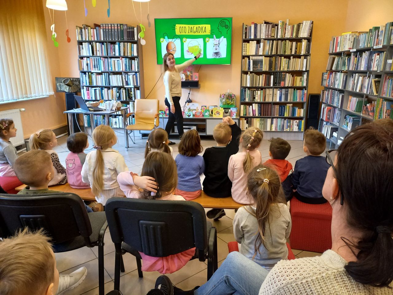 Także w Filii nr 6 na os. Sobów dało się odczuć świąteczną atmosferę. Dzieci z Przedszkola nr 18 uczestniczyły w spotkaniu poświęconym Wielkanocy. W poznawaniu świątecznych tradycji i zwyczajów pomógł im miś Okruszek. Ten sympatyczny bohater – w prosty sposób – wprowadził przedszkolaki w świat pisanek, święconek i Śmigusa-Dyngusa. Z kolei uczniowie klasy II ze Szkoły Podstawowej nr 11 podążali tropami pewnego jaja – jak się okazało – nie wielkanocnego, ale takiego, które jest jednym z bohaterów książeczki „Maja na tropie jaja”. Przy pomocy zagadek i quizów uczniowie dzielnie próbowali odnaleźć bezcenną zgubę.