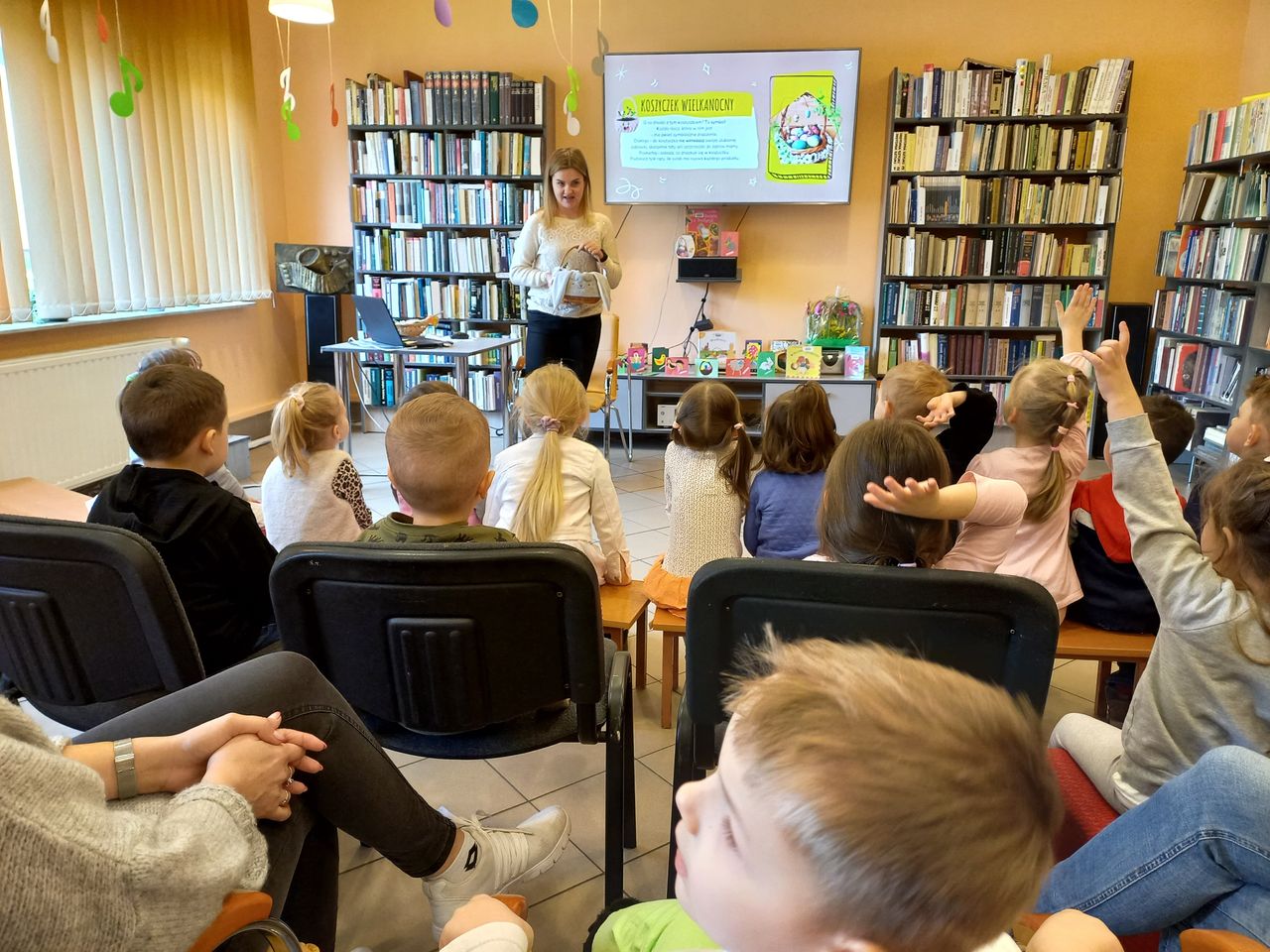 Ostatni tydzień w Filii nr 1 upłynął pod znakiem świąt Wielkanocnych. Podczas świątecznych spotkań 4-latki z Przedszkola nr 7 oraz Przedszkola nr 17 przypomniały sobie o wielkanocnych zwyczajach. Wraz z bibliotekarką skomponowały własną „święconkę”, poznając przy tym symbolikę poszczególnych produktów wkładanych do koszyczka wielkanocnego. Dodatkowo – dzięki prezentacji multimedialnej dowiedziały się, w jakim procesie niektóre z tych produktów powstają.