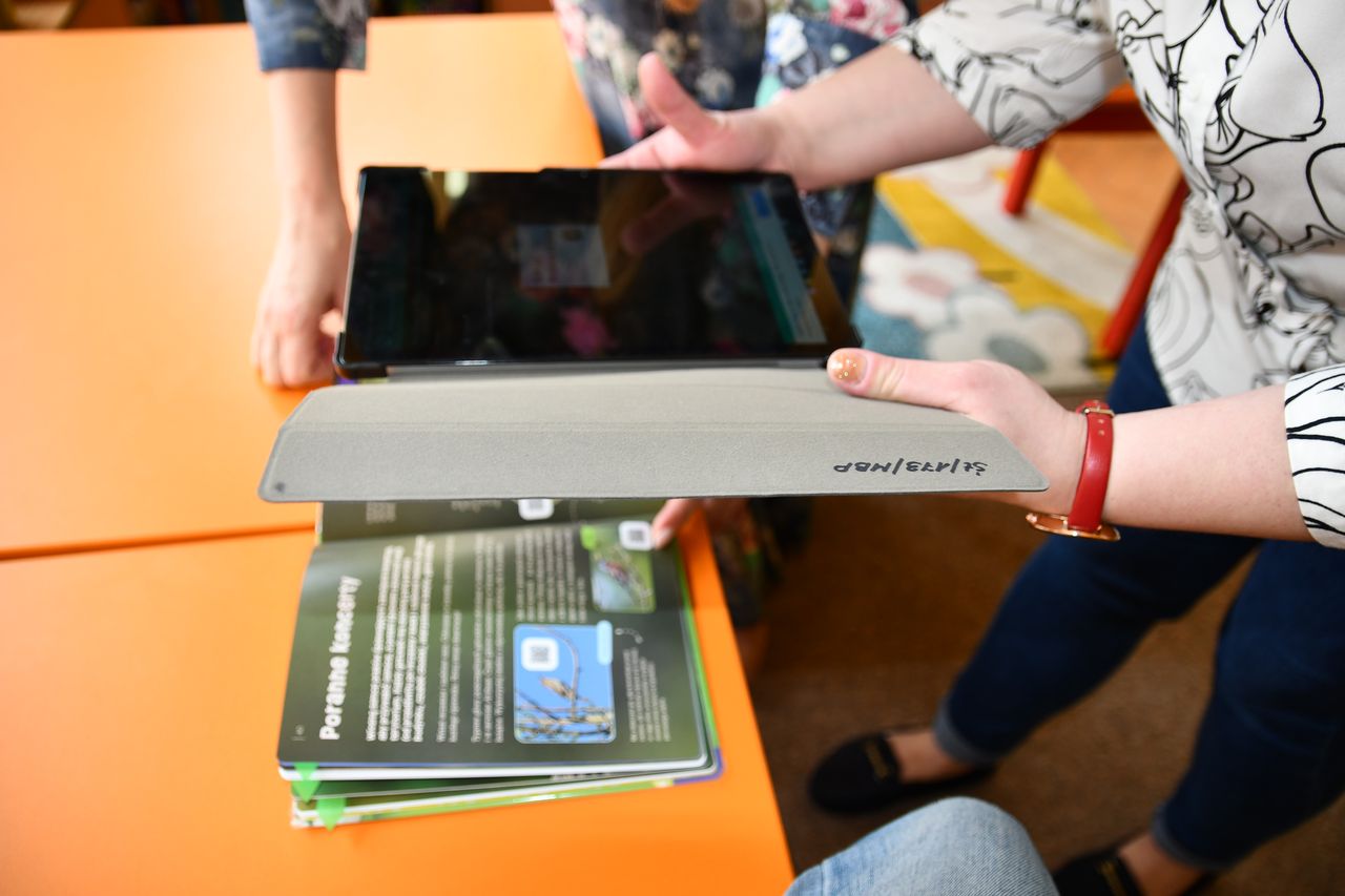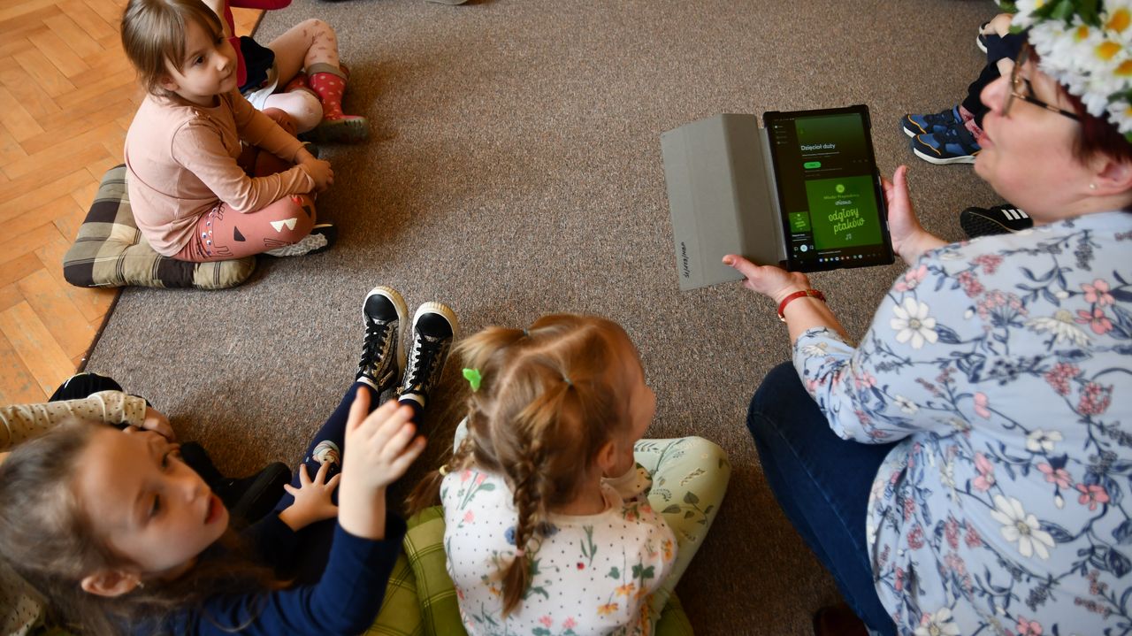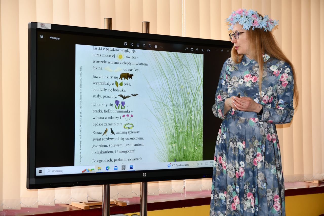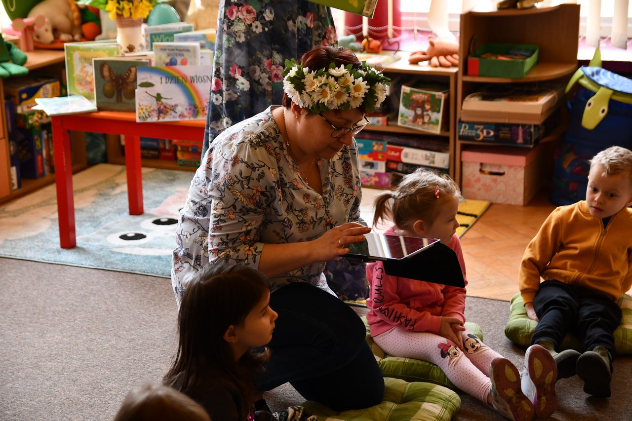 Tablety i książka z QR kodami umożliwiły także udział w ptasim koncercie – dzieci wysłuchały treli skowronka, kosa, klekotu bociana i stukotu dzięcioła. Wszystkie grupy stworzyły również własną Panią Wiosnę – powstały piękne i kolorowe prace plastyczne, które zostaną wyeksponowane w przedszkolnej galerii. Na pierwszy dzień Wiosny przypada Światowy Dzień Poezji, który został podkreślony wybranymi wierszykami o wiośnie.