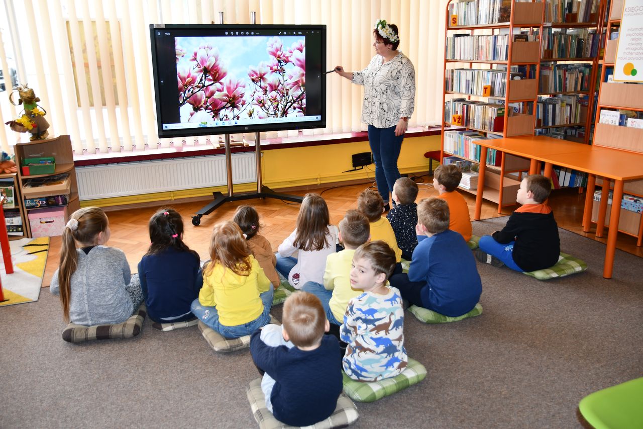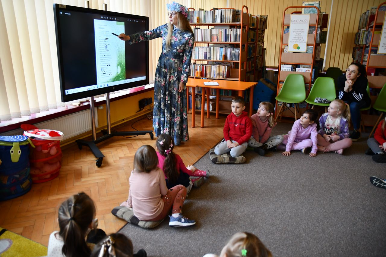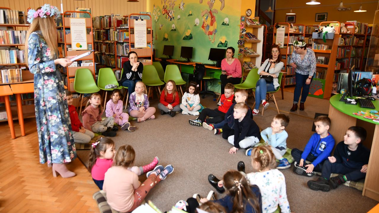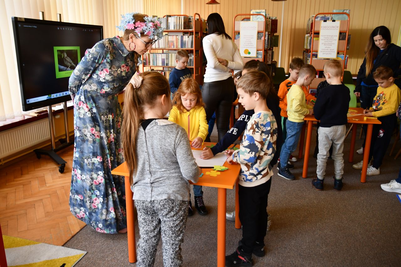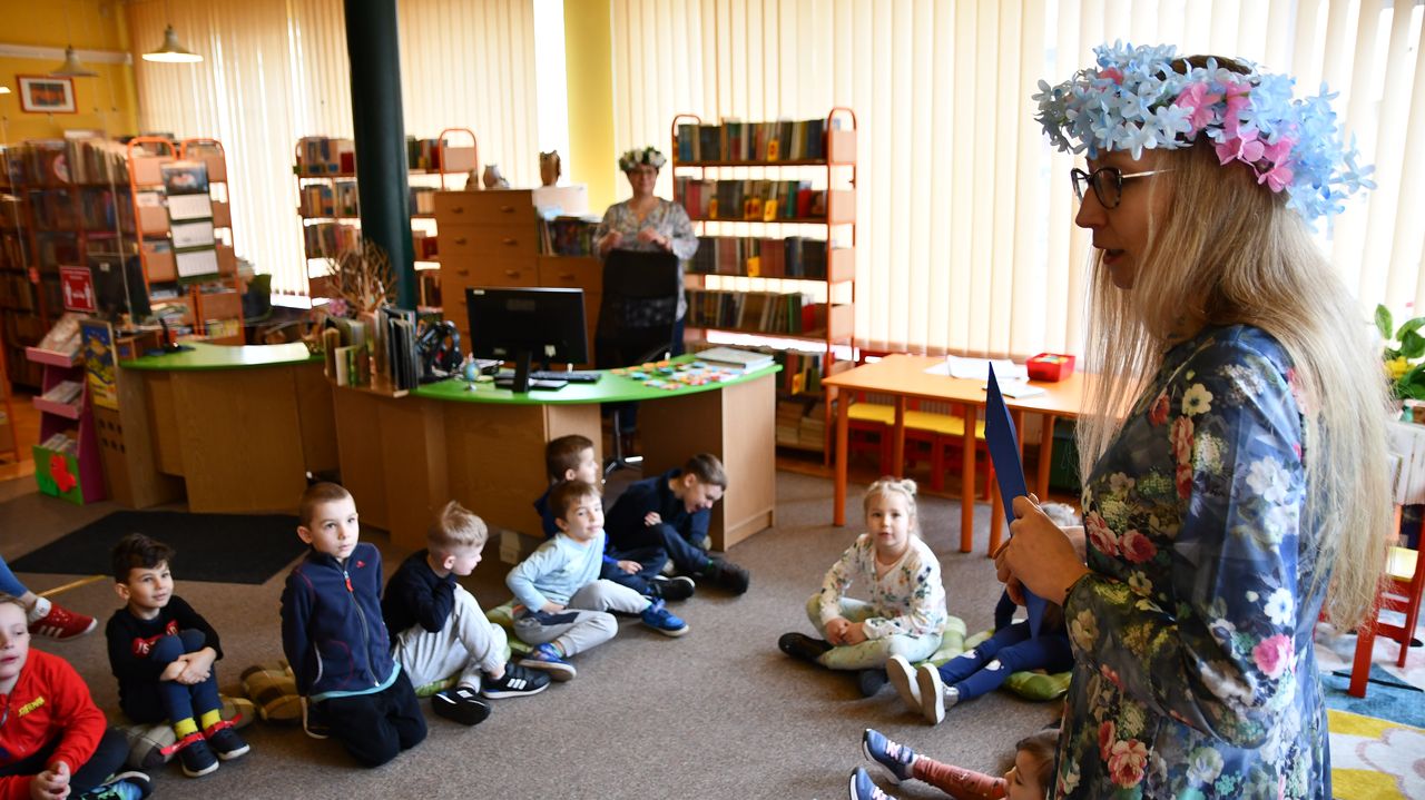 Wraz z pierwszym dniem Wiosny w Oddziale dla dzieci i młodzieży zrobiło się kolorowo i bajkowo. Przez cały tydzień do Biblioteki przychodziły przedszkolaki z Przedszkola „Bajka” by spotkać się z Panią Wiosną. Zarówno 4-latki, 5-latki, jak i 6-latki szukały symptomów wiosny na łące. Świetnie radziły sobie z rozszyfrowaniem nazw wiosennych kwiatów i zwierząt budzących się do życia właśnie wiosną.