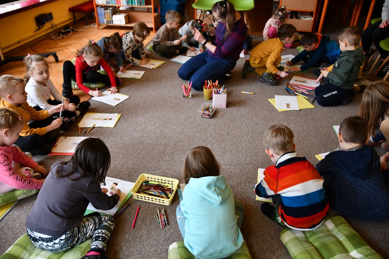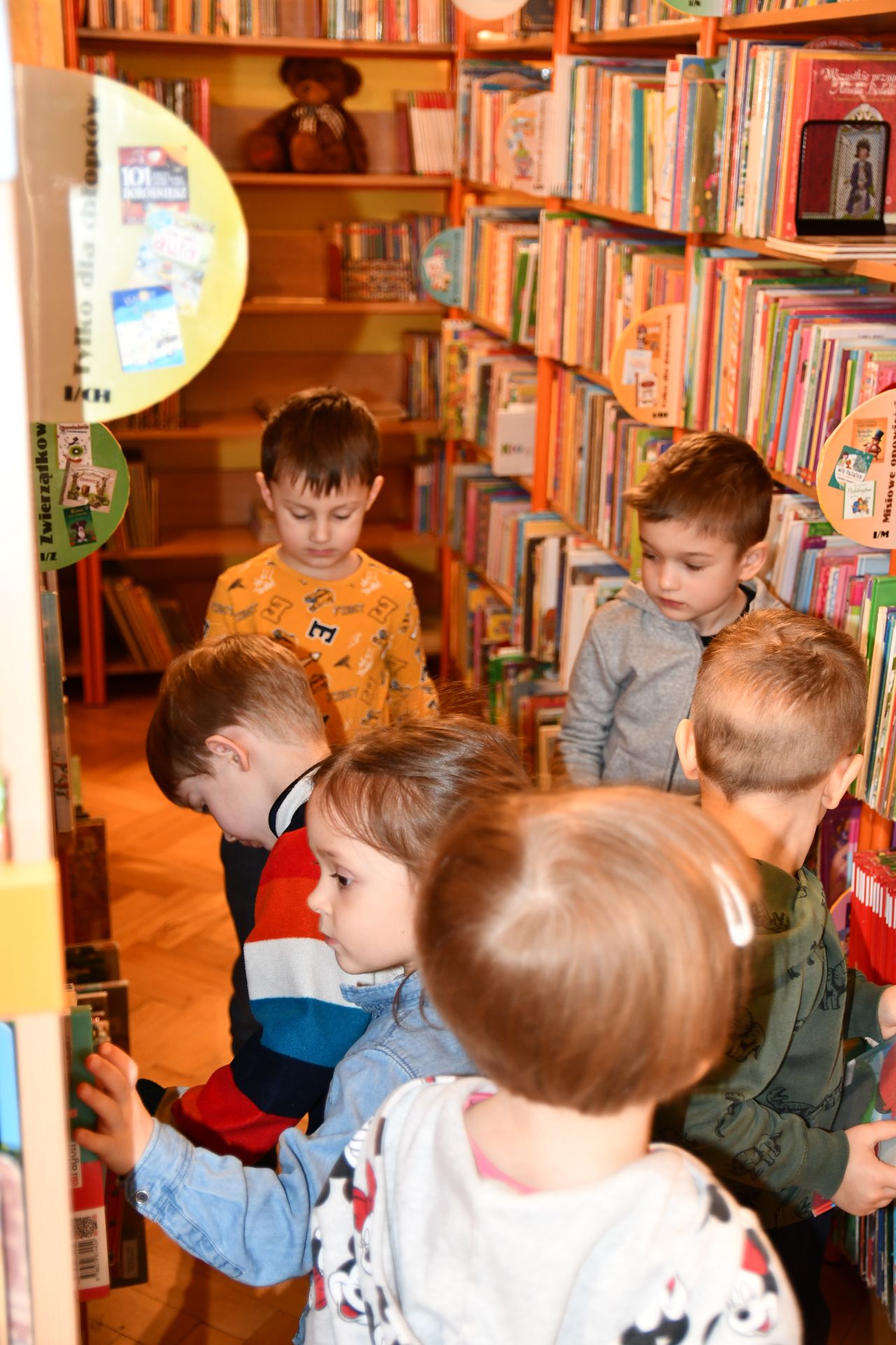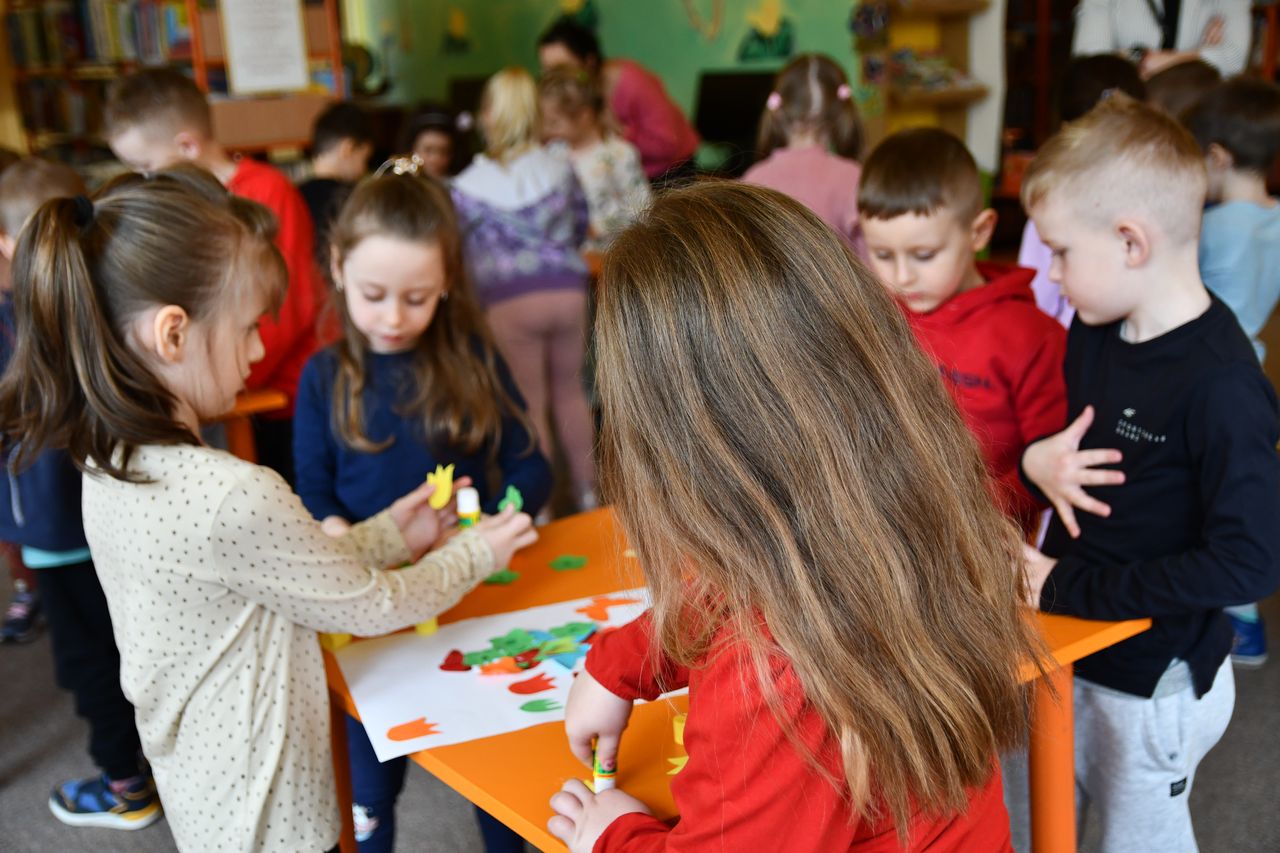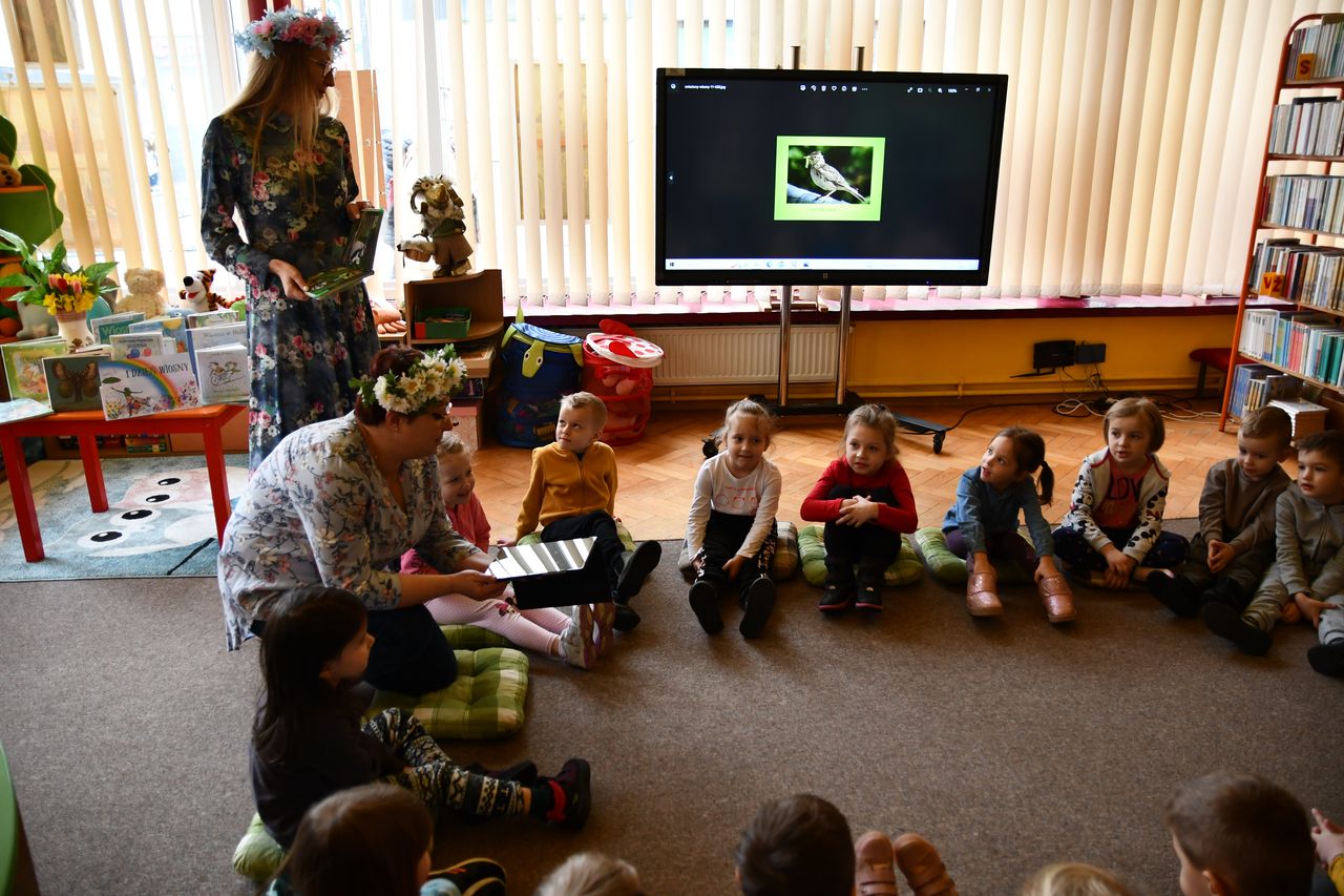 Wraz z pierwszym dniem Wiosny w Oddziale dla dzieci i młodzieży zrobiło się kolorowo i bajkowo. Przez cały tydzień do Biblioteki przychodziły przedszkolaki z Przedszkola „Bajka” by spotkać się z Panią Wiosną. Zarówno 4-latki, 5-latki, jak i 6-latki szukały symptomów wiosny na łące. Świetnie radziły sobie z rozszyfrowaniem nazw wiosennych kwiatów i zwierząt budzących się do życia właśnie wiosną.