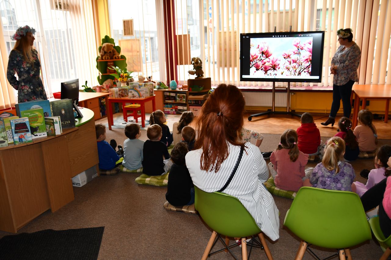 Przedszkolaki z Przedszkola nr 1 oraz grupy 5 i 6-latków z Przedszkola nr 6 też świętowały Światowy Dzień Poezji i rozpoczęcie najpiękniejszej pory roku. Bibliotekarka z Filii nr 8 przeczytała dzieciom wiersz „Przyjście wiosny” J. Brzechwy, „Wiosna M” Strzałkowskiej oraz fragment bajki „Wiosenny las” A. Paszkiewicz. Pełne humoru, rymowane książeczki zostały przyjęte przez przedszkolaków z dużym zainteresowaniem i … serdecznym śmiechem! Bo poezja nie tylko uczy, rozwija, ale także bawi!