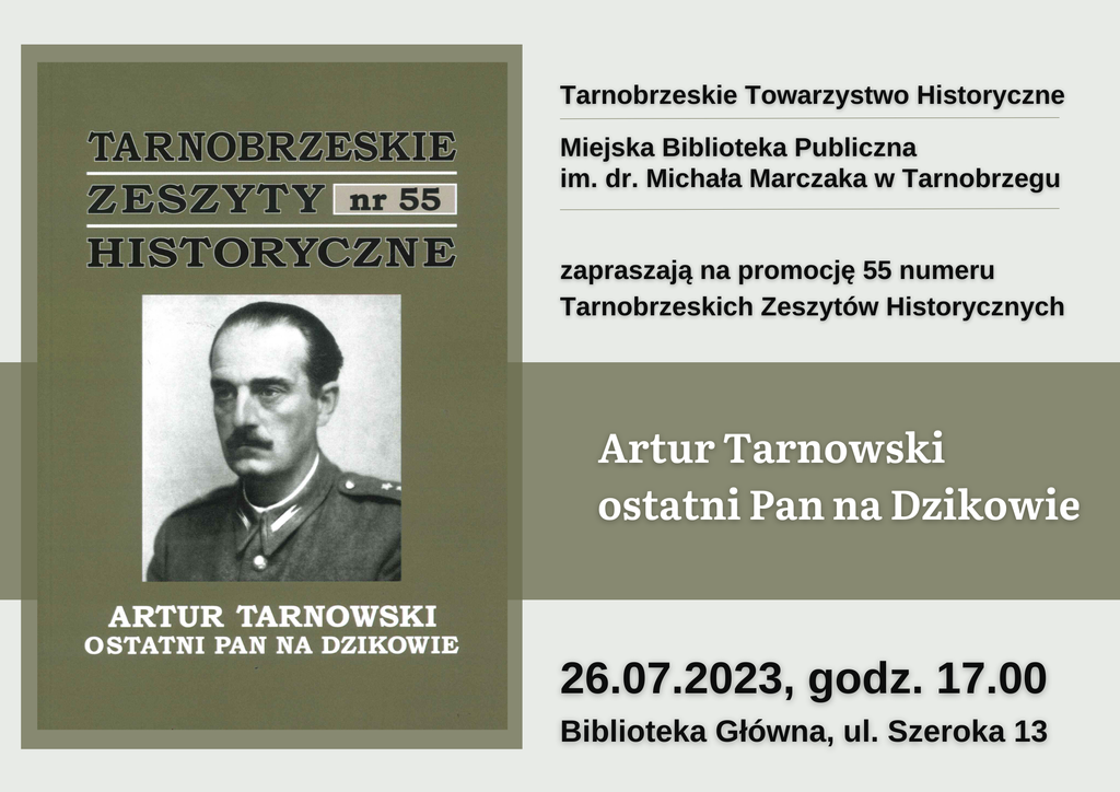 Z inicjatywy Tarnobrzeskiego Towarzystwa Historycznego w Miejskiej Bibliotece Publicznej im. dr. Michała Marczaka, 26.07.2023 roku, odbyła się promocja 55. numeru Tarnobrzeskich Zeszytów Historycznych „Artur Tarnowski ostatni Pan na Dzikowie”.