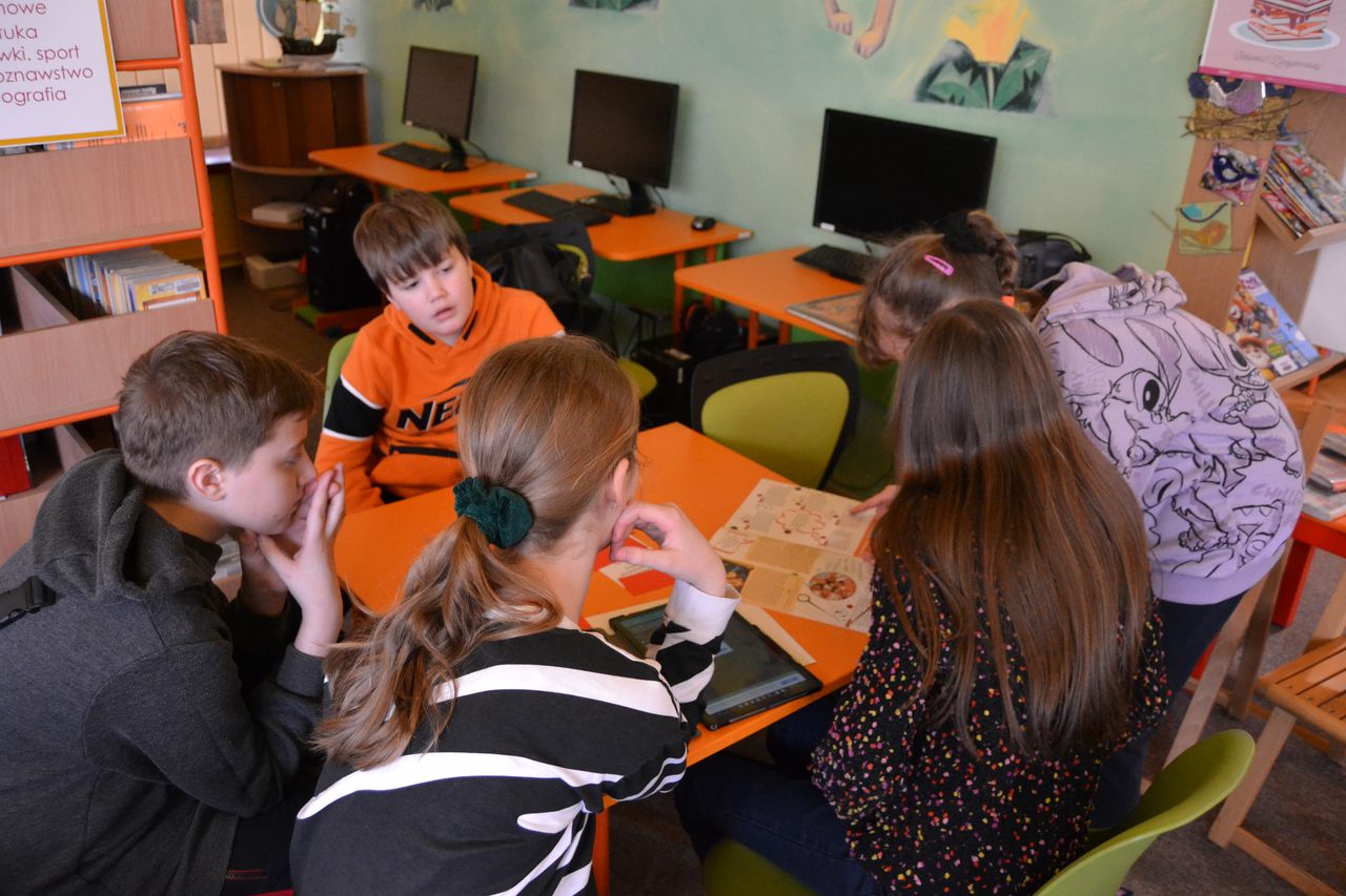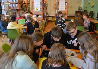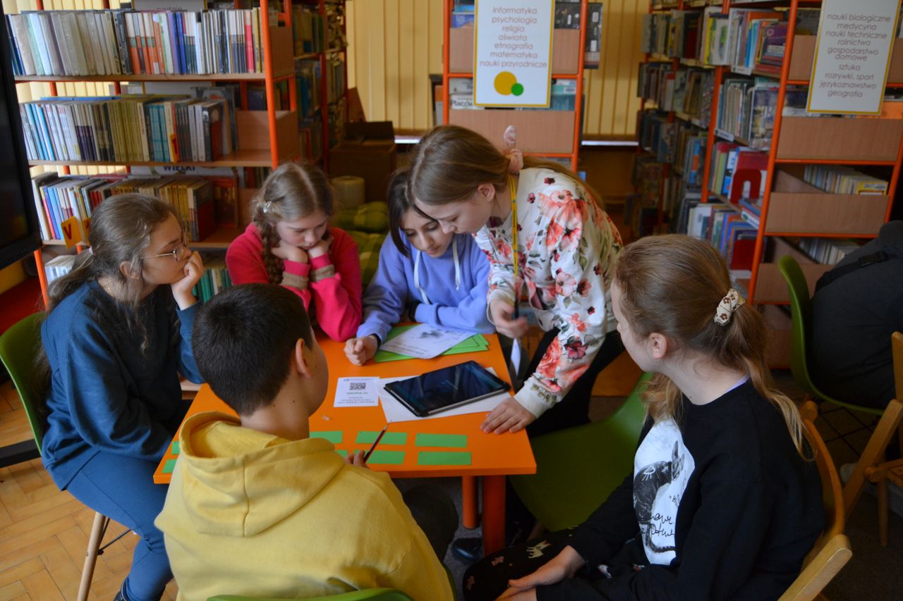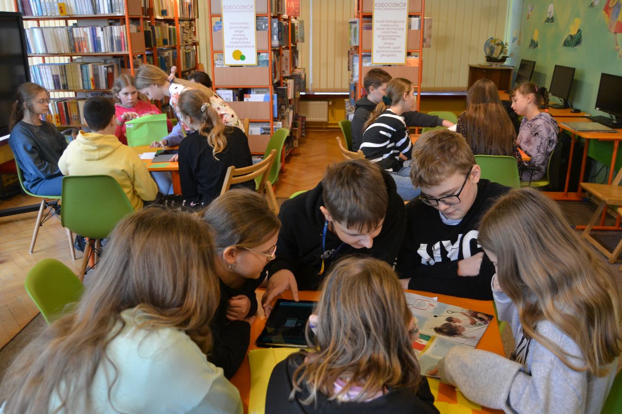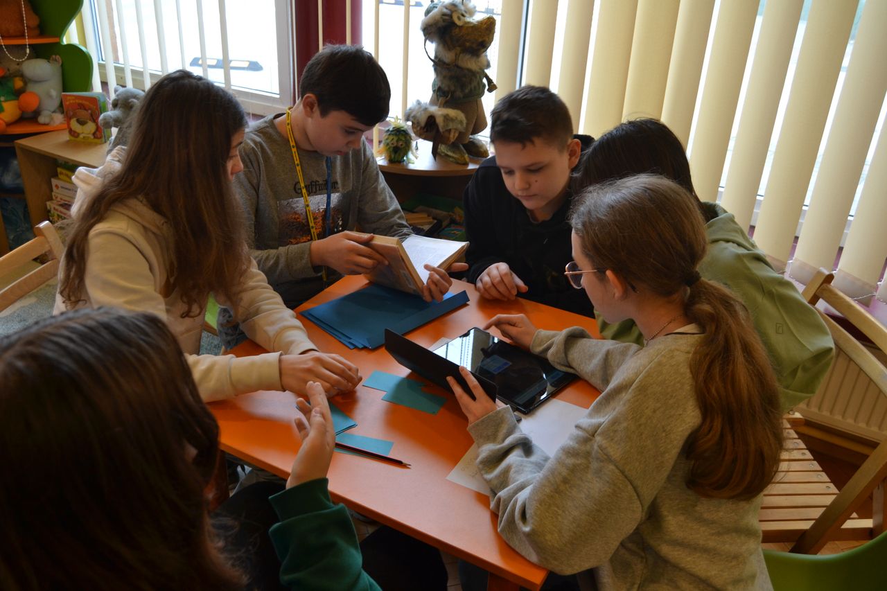 „Czytanie na ekranie” to tytuł lekcji edukacyjnej, przeprowadzonej 27 lutego, w której uczestniczyli uczniowie klasy V ze Szkoły Podstawowej nr 4. Porozkładane między regałami Oddziału dla dzieci i młodzieży QR kody – które młodzież skanowała tabletami – prowadziły przez kolejne zadania, dzięki którym należało odkryć i ułożyć końcowe hasło.