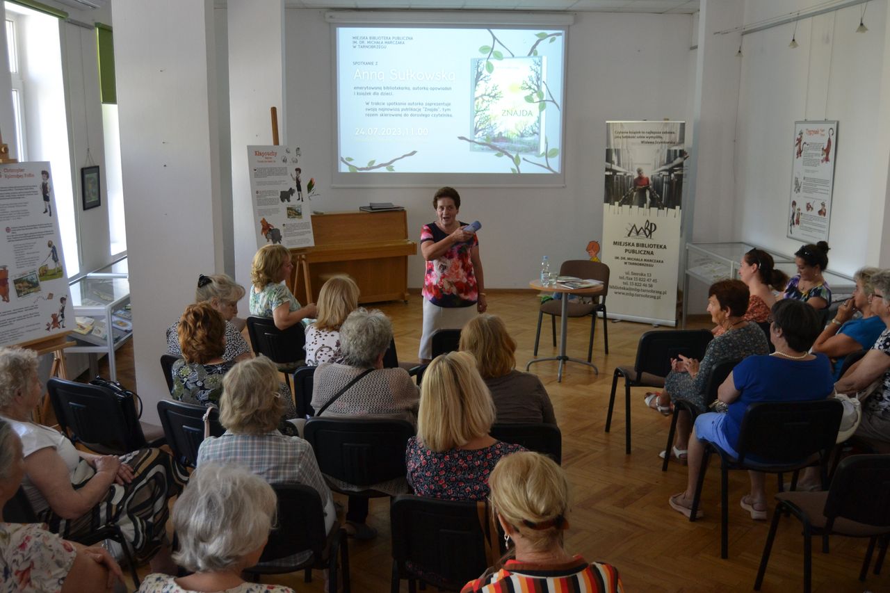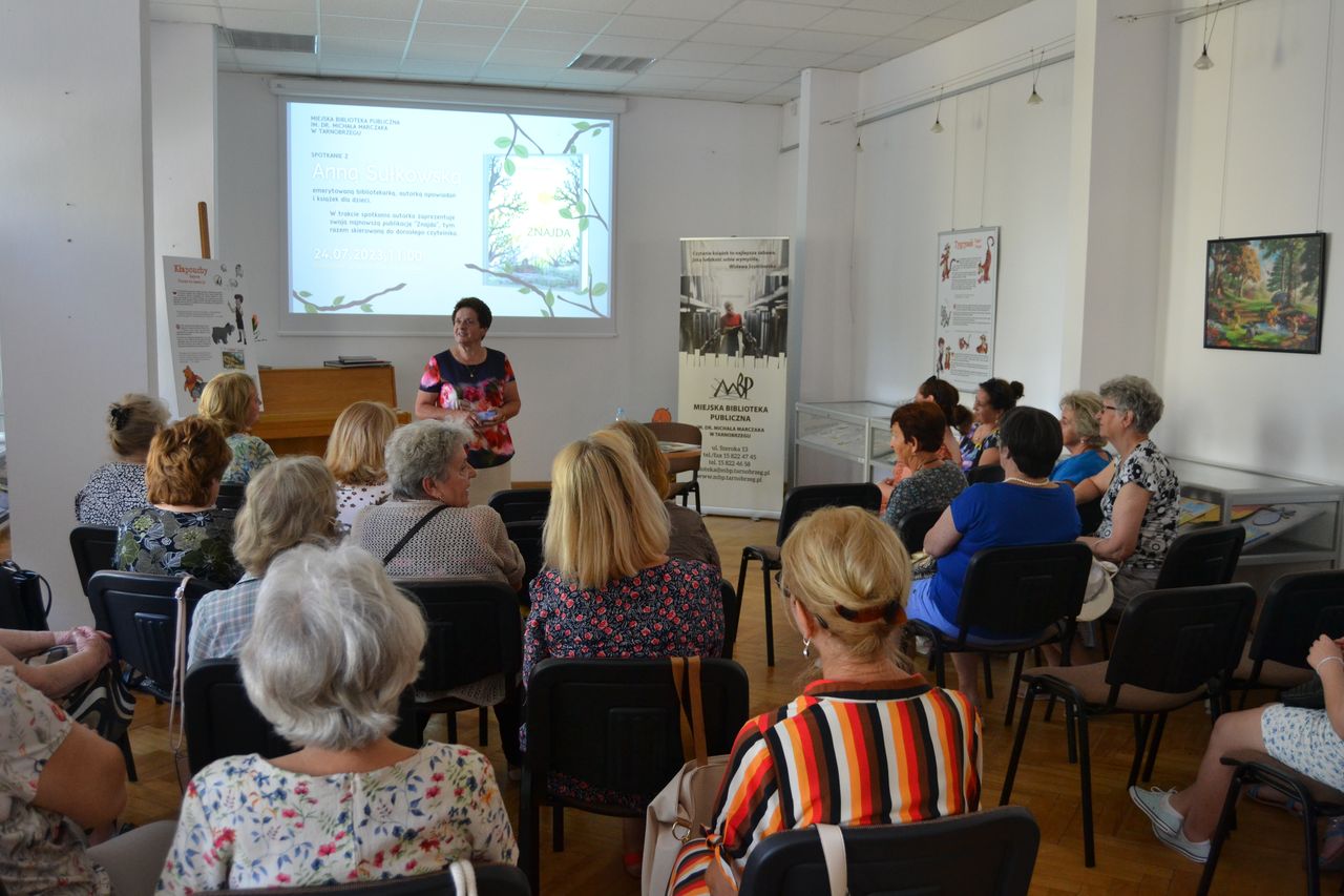 Pani Anna Sułkowska z Gorzyc, emerytowana bibliotekarka spotkała się 24.07.2023 z seniorami z Tarnobrzeskiego Centrum Seniora i Dziennego Domu Senior+. Pani Anna znana jest już w regionie jako autorka książek dla dzieci i młodzieży. „Jelonkowo”, „Nierozłączki” czy „Wiersze dla małych i dużych” mają już swoje grono miłośników.