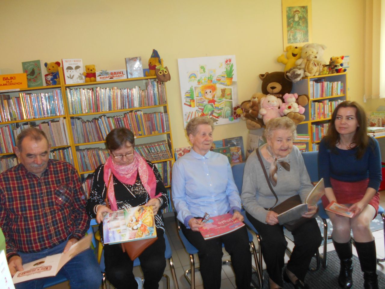 Ogromną atrakcją były spotkania ze specjalnie zaproszonymi gośćmi. W Sali odczytowej dr Adam Wójcik – Łużycki prezentował swoją najnowszą publikację, pt. „Dzików mój Wawel” – swoistą kronikę działań okraszoną anegdotami z przebiegu prac remontowych zamku z Dzikowie. W Filii nr 1 na Serbinowie Pani Maria Pałkus przybliżyła młodzieży historię pszczelarstwa w regionie oraz podstawowe informacje o Lasowiakach. Z kolei inna grupa uczniów poznała „Dzień z życia niewidomego” – a wszystko to dzięki Pani Teresie Biało, która opowiadała o swoich własnych doświadczeniach i podkreśliła znaczenie w swoim życiu Molly – psa-przewodnika, także obecnego na spotkaniu. Dodatkowo, pierwszoklasiści rozmawiali z Panią psycholog Bożeną Kozieł na temat emocji, podkreślając wielką moc optymizmu. W Filii nr 2 zaproszeni Goście z Tarnobrzeskiego Centrum Seniora przeczytali sześciolatkom z Przedszkola nr 15 kilka wybranych bajek.