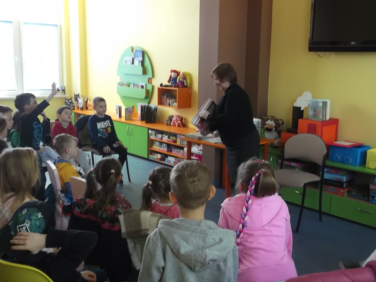 Nie zabrakło także – bardzo lubianych przez najmłodszych czytelników – zabaw czytelniczych. Na dzieci wypożyczające pakiety książek czekały niespodzianki. Przedszkolaki tworzyły także prace plastyczne przedstawiające projekt wymarzonej biblioteki, a które można podziwiać w oknach Filii nr 8 na os. Przywiśle. Ponadto, zarówno młodsi, jak i starsi Czytelnicy Oddziału dla dzieci i młodzieży BG – na specjalnie przygotowanej tablicy – mogli napisać lub narysować coś co zilustruje ich myśl - dlaczego biblioteka jest dla nich ważna?