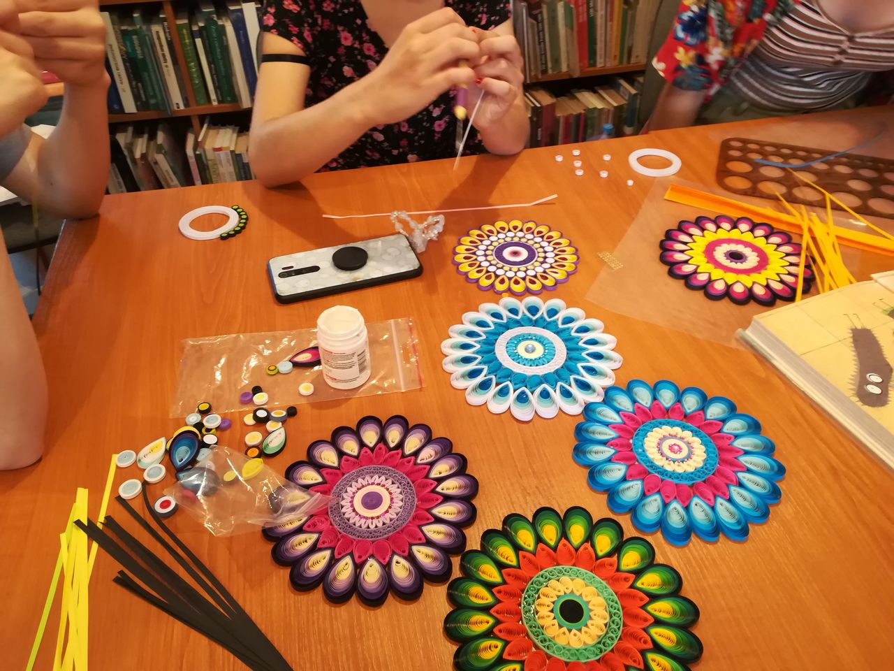 W trakcie wakacyjnych miesięcy odbywały się rozmaite zajęcia dla dzieci, dzięki którym mogły one rozwijać swoje pasje i zainteresowania, jak również kompetencje plastyczne, muzyczne, literackie, sfery manualne i umysłowe. Na zajęciach plastycznych powstały piękne i niepowtarzalne prace, które zdobią poszczególne biblioteki, oraz powakacyjną galerię w oknach Biblioteki Głównej. Dzieci wykonywały prace, używając zróżnicowanych technik (kolaż, quilling, origami, iris folding) oraz przeróżnych materiałów (masa solna, kreda, gazety, bibuła, druciki kreatywne, papier brokatowy, samoprzylepne koraliki itp.). Wśród nich znalazły się obiekty płaskie, jak i przestrzenne, małe i duże, a ich tematyka była bardzo szeroka: od przedstawicieli świata zwierząt (m.in. kotki, motylki, dudki, papugi, ważki, podwodne zwierzęta, zające, jelenie, małpki, żabki, rybki, pszczółki itp.) poprzez świat roślin (maki, lilie, słoneczniki, polne kwiaty, drzewa) do świata fantastycznego (chochliki, duszki, krasnale, smoki). Prace inspirowane były w większości postaciami z książek i bajek (Harry Potter, Kaczka Dziwaczka, Krasnal Hałabała, Calineczka, Bolek i Lolek) oraz literaturą popularnonaukową, która została wykorzystana – w cieszącym się bardzo dużym zainteresowaniem – cyklu „Palcem po mapie – podróż przez kontynenty”, podczas których dzieci „zwiedziły” m. in. Kanadę, Turcję, Maroko, Holandię, Peru, Indie, Tanzanię, Tajwan, Egipt, Meksyk, Japonię czy Chiny, poznając przy tym kulturę, przyrodę oraz zwyczaje tych krajów. W trakcie zajęć literackich i literacko-plastycznych oraz głośnych czytań dzieci przenosiły się w zaczarowany świat czytanych bajek i baśni, a z bohaterami książek odwiedzały zarówno autentyczne miejsca, jak i te magiczne i nierealne. Wśród nich wymienić można następujące tytuły zajęć: „”Malowane kolorami lata”, „Powrót do zapomnianych opowieści”, „Poranki literacko-plastyczne”, „Przedszkolak w bibliotece”, „Koła i kółka” czy „Mieszkańcy łąk i pól”. Zajęcia edukacyjne dały możliwość nauki poprzez zabawę. Cykl „(Nie)zwykłe spotkania z…”, na których gościły ciekawe osoby z pasją, wprowadził uczestników w tajniki zawodu weterynarza, strażaka, strażnika miejskiego i policjanta, a także w świat motocyklistów, tworzenia makram oraz nurkowania. Spotkaniom towarzyszyły liczne opowieści, ciekawostki oraz fotografie i filmy. Z kolei dzięki cyklowi „Ziarnko prawdy” zainspirowanemu „Baśnią o Tarnobrzegu” dzieci poznały faunę i florę Puszczy sandomierskiej i wspólnie stworzyły spektakularną makietę, na której powstała Wisła oraz mieszkańcy lasów i łąk. Zajęcia muzyczne pt. „Lot trzmiela”, „Odgłosy pół i łąk” oraz „Co w trawie piszczy” uwrażliwiły na dźwięki i przybliżyły twórczość Mikołaja Korsakowa, a karaoke pozwoliło rozruszać ciało i struny głosowe. Natomiast ćwiczenia pamięci, logicznego myślenia, cierpliwości oraz koordynację ciała zapewniły zajęcia interaktywne i integracyjne dzięki rebusom, kalamburom, krzyżówkom, zagadkom, quizom, puzzlom, grom planszowym i ruchowym. W ich ramach odbyły się m.in zajęcia: „Odlotowe planszogranie”, „Bawmy się na całego”, „To i owo”, „Rzuć kostką”, „Wakacyjny zawrót głowy”. Podczas wakacji dzieci polecały książki, które warto spakować do plecaka i zabrać na wakacyjne wojaże. Dodatkowo Kubuś Puchatek i pozostali mieszkańcy Stumilowego Lasu, którzy przyjechali z Muzeum Dobranocek w Rzeszowie, a zagościli na całe dwa miesiące w sali odczytowej Biblioteki Głównej, zdobywali stale nowych przyjaciół i wielbicieli. Podczas wakacji wystawę odwiedziło 200 osób, a w konkursie plastycznym udział wzięły 24 osoby. Z kolei uczestnikom konkursu plastycznego „Mój dzień z Kubusiem Puchatkiem” – swoimi pracami – z pewnością udało się zachęcić innych do poszukiwania wakacyjnych przygód razem z Kubusiem Puchatkiem i jego przyjaciółmi. Konkurs został rozstrzygnięty, a laureaci oraz osoby wyróżnione odebrały swoje nagrody podczas uroczystej imprezy. Łącznie we wszystkich przygotowanych formach udział wzięło ponad dwa tysiące uczestników. Mamy nadzieję, że dzięki przygotowanym przez Bibliotekę różnorodnym formom skierowanym do dzieci o różnych zainteresowaniach, mogły one w twórczy i kreatywny sposób spędzić wolny czas… a za rok, znów będą wakacje.