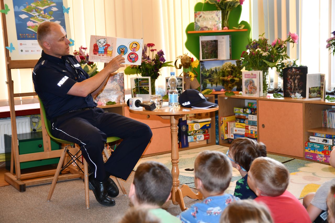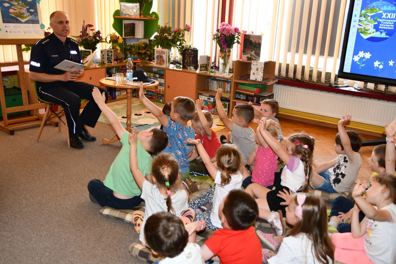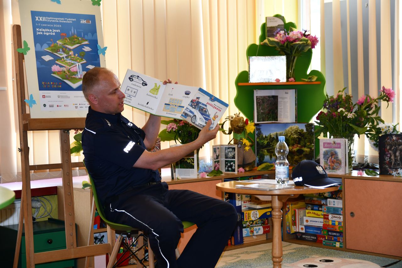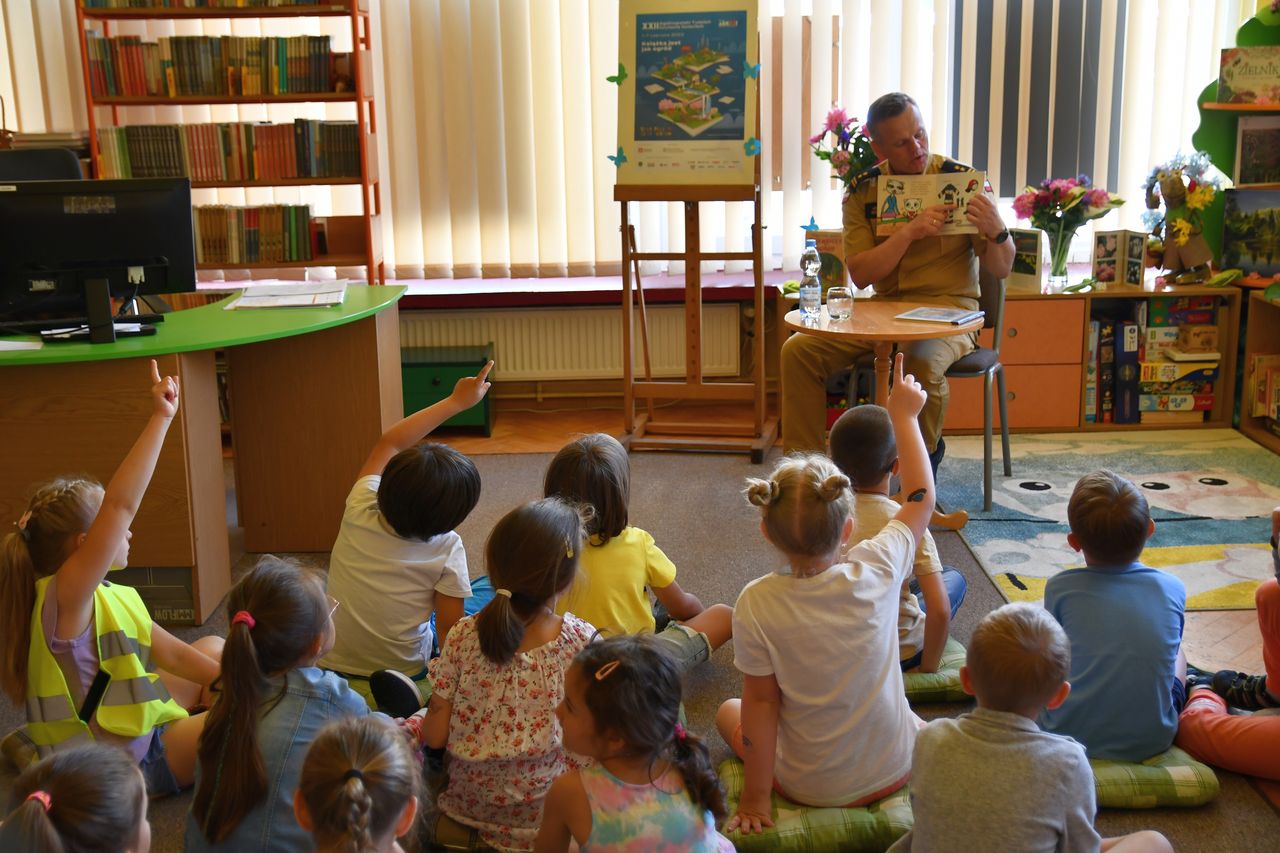 Podczas tak wyjątkowego święta czytania w bibliotekach gościli także inni znakomici goście. W Oddziale dla dzieci i młodzieży Biblioteki Głównej przedszkolakom książeczki czytał Pan Strażak oraz Pan Policjant. Była to też dla dzieci świetna okazja by podczas pouczającej pogawędki po lekturze dowiedzieć się jak potrzebne a przy tym trudne są pełnione przez nich służby. Młodzi uczestnicy spotkań usłyszeli też u progu wakacji jak zachować bezpieczeństwo w domu, podczas zabaw i na drodze. Z kolei do Filii nr 1 a osiedlu Serbinów zawitały Panie Teresa Biało oraz Magdalena Zach, które wraz z uczestnikami spotkania powitały dzień wierszem i piosenką – porywająco recytowały oraz śpiewały poezję ks. Jana Twardowskiego. Pani Teresa zinterpretowała wybrane wiersze, natomiast Pani Magdalena zaśpiewała piosenkę „Dni, których nie znamy”, z repertuaru Marka Grechuty. Gościem Filii nr 1 była również psycholog, Pani Bożena Kozieł, która w oparciu o przeczytaną książkę poruszyła z uczniami problem wolnego czasu i odpoczywania.