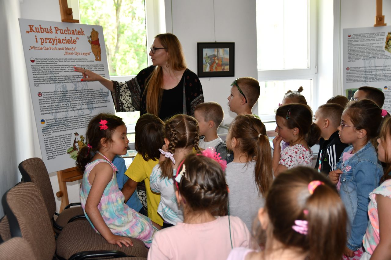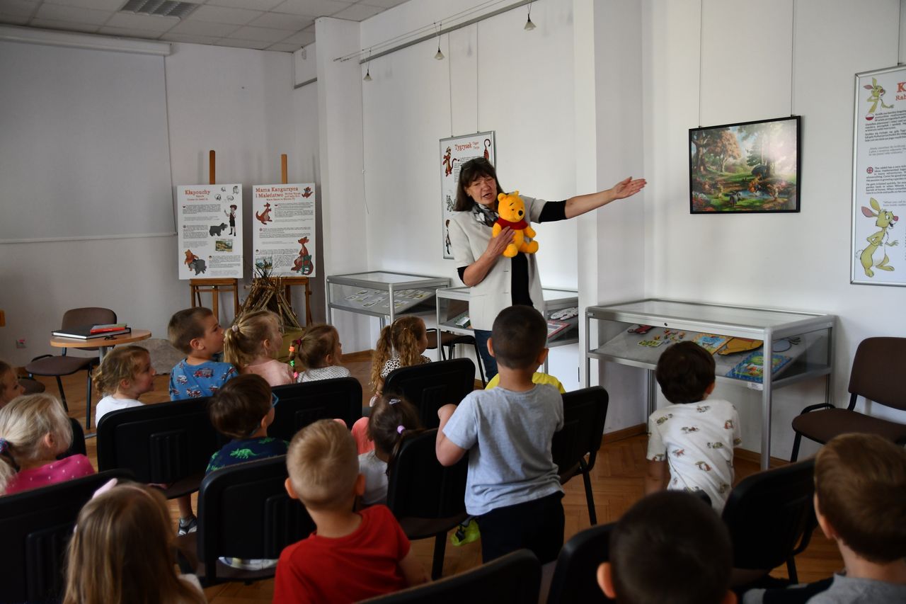 Wszystkie odwiedzające Oddział dla dzieci i młodzieży Biblioteki Głównej przedszkolaki zwiedziły wystawę „Kubuś Puchatek i przyjaciele”, która będzie czynna przez całe wakacje.