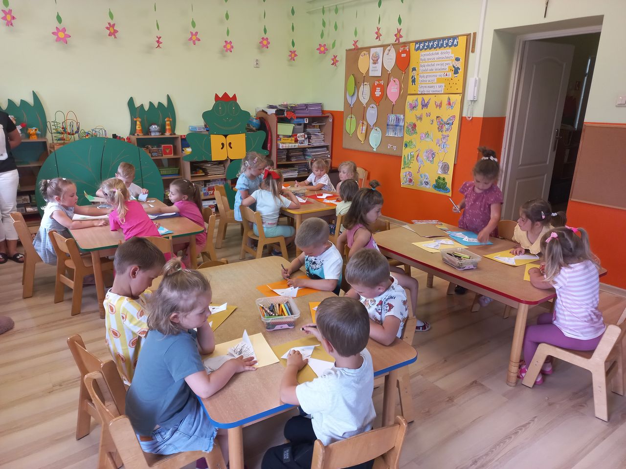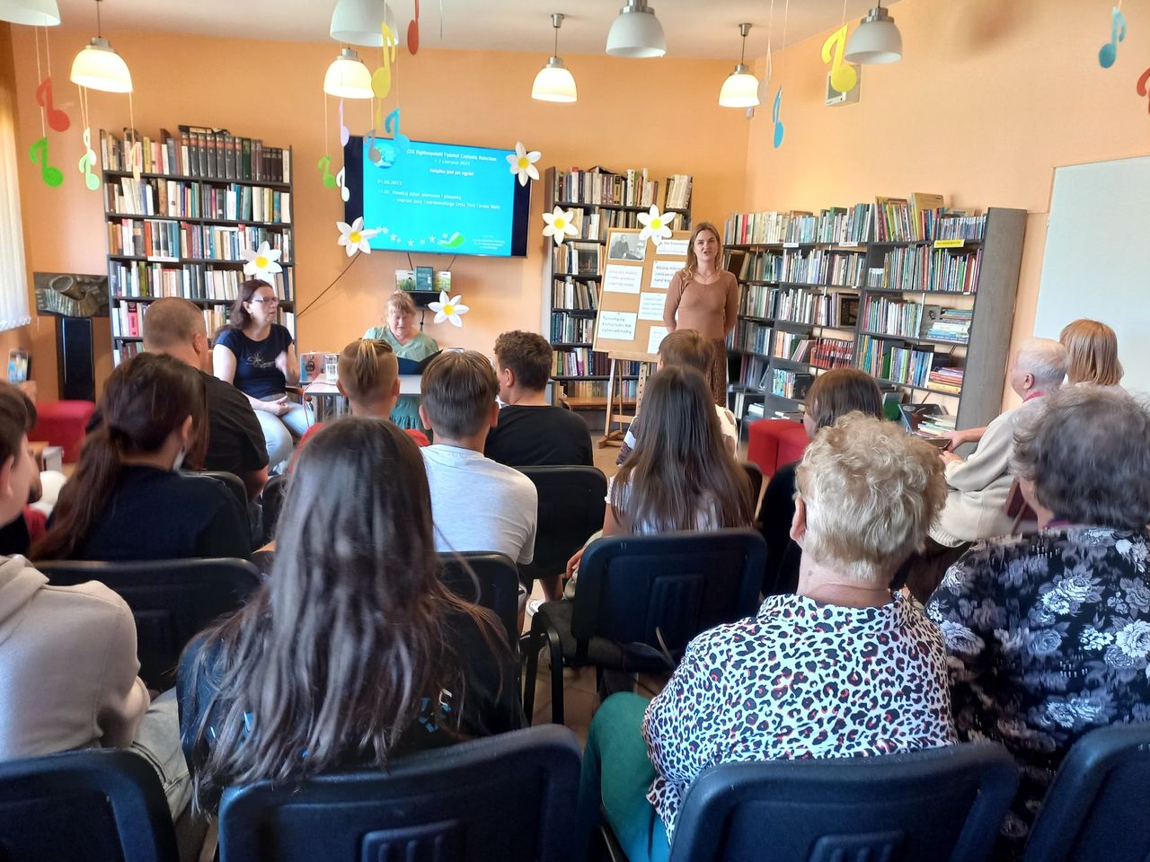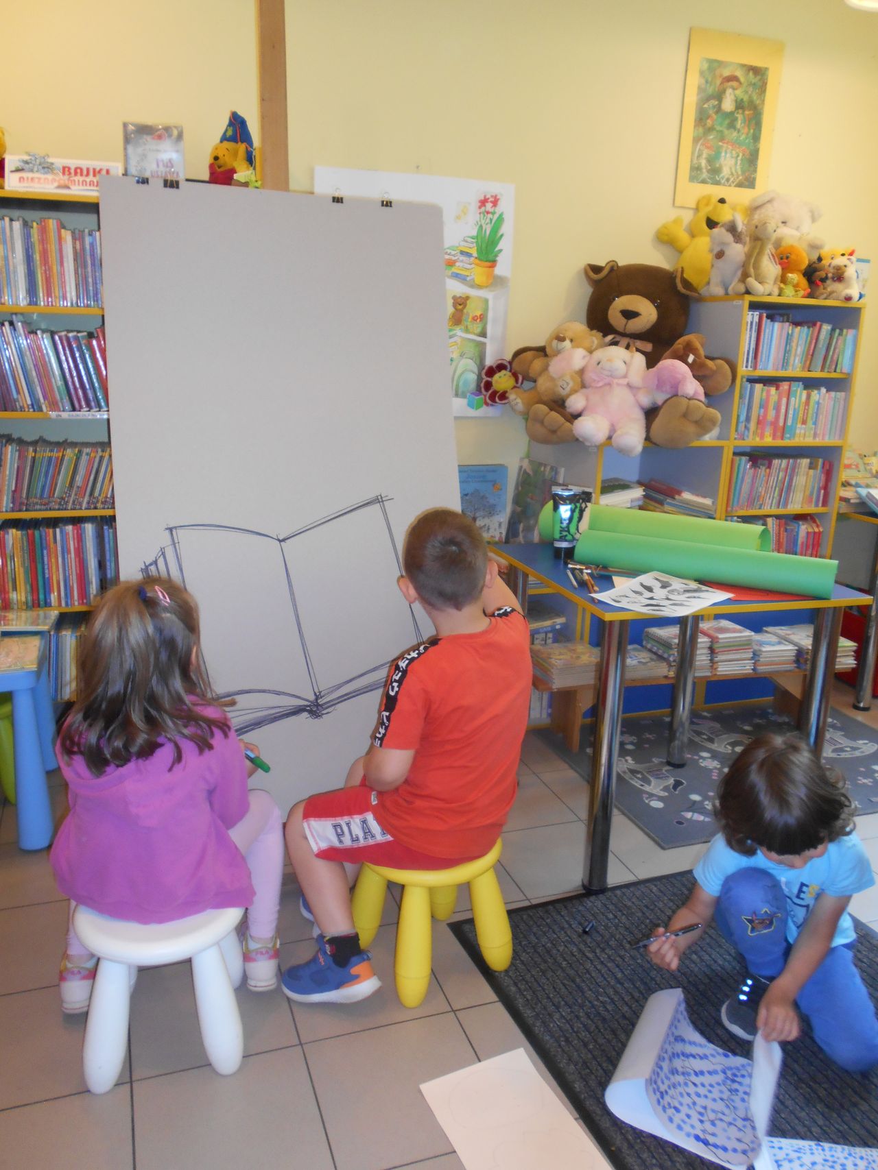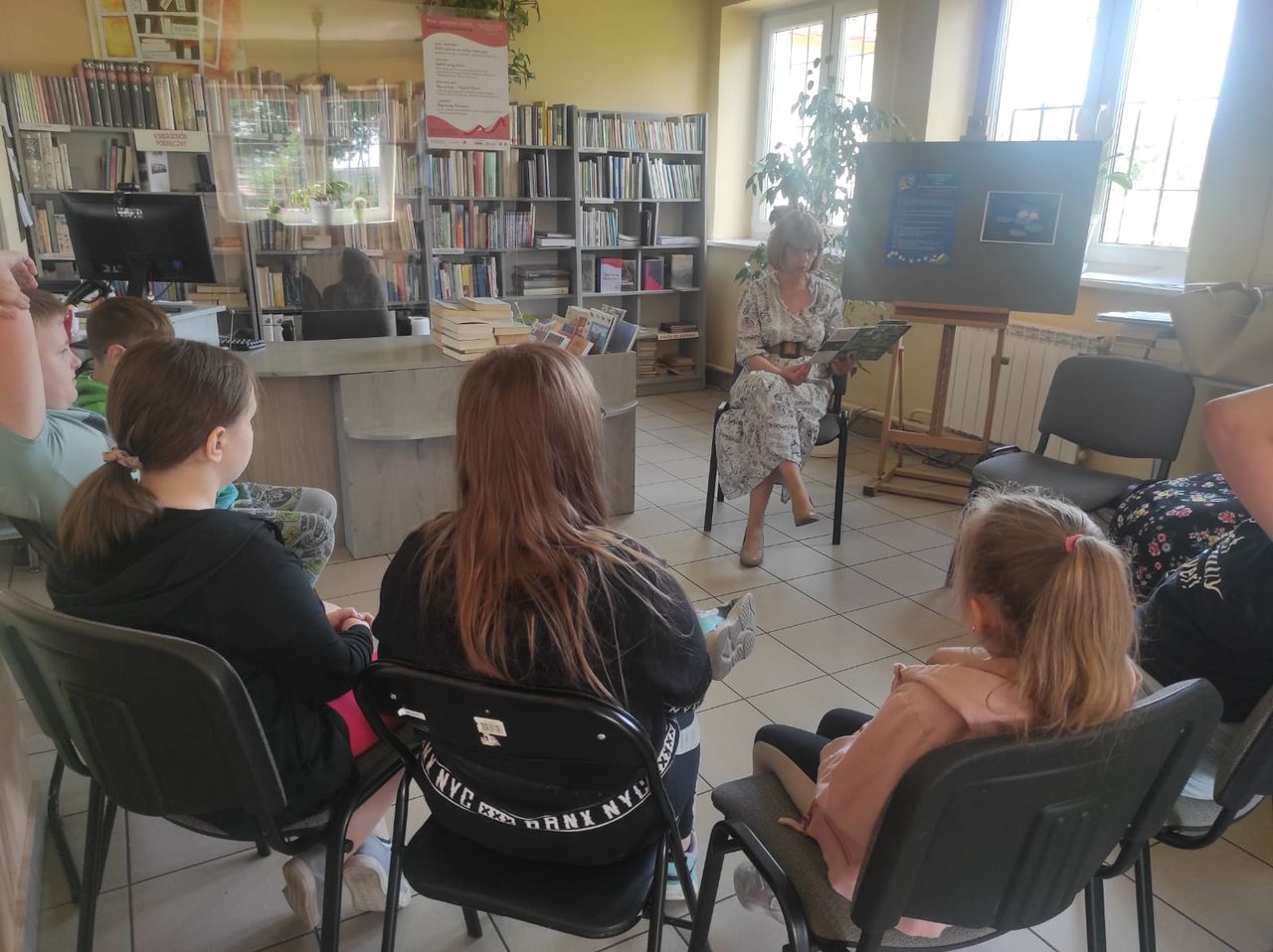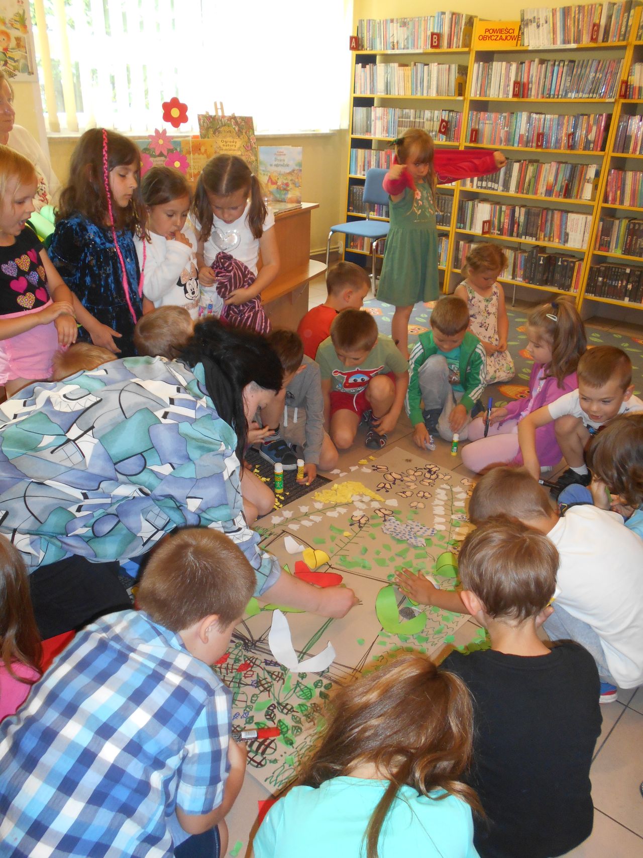 Filia nr 2 na osiedlu Siarkowiec gościła Panią Karolinę Bednarską – plastyczkę z Miejskiego Ośrodka Pomocy Rodzinie, z którą przedszkolaki stworzyły spektakularną pracę plastyczną pt. „W bibliotece, jak w ogrodzie”, inspirowaną hasłem Tygodnia Głośnego Czytania.