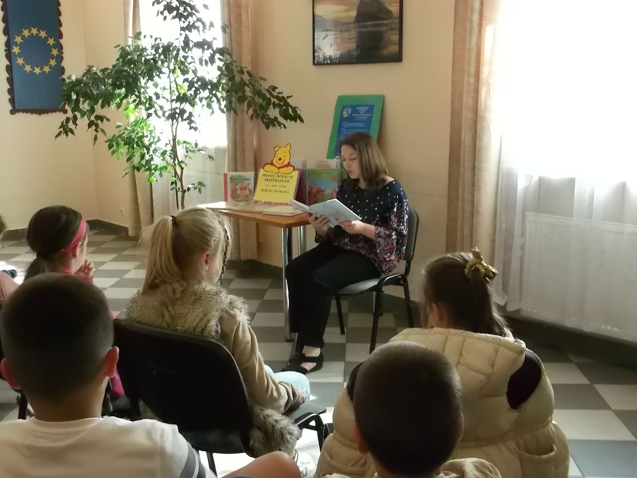 Tydzień Głośnego Czytania został zainaugurowany na Sali odczytowej Biblioteki Głównej w otoczeniu wystawy z Muzeum Dobranocek w Rzeszowie pt. „Kubuś Puchatek i przyjaciele”. Pani Barbara Zych przeczytała przedszkolakom oraz uczniom kilka opowieści o przygodach „misia o bardzo małym rozumku” i jego wiernych przyjaciołach. Swoją wiedzę o bohaterach uczestnicy spotkania pogłębili, w trakcie oglądania wystawy.
