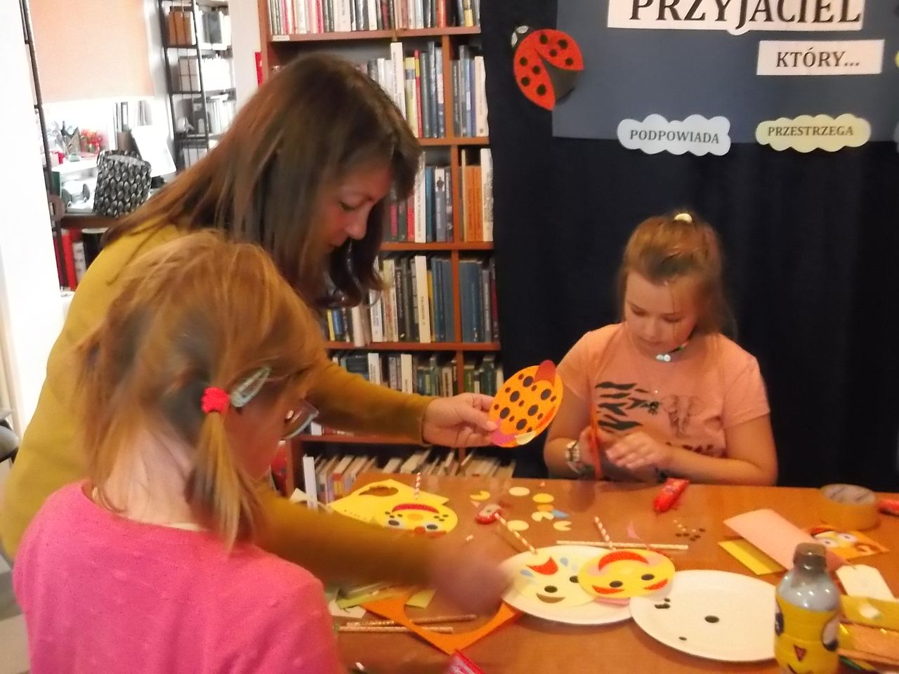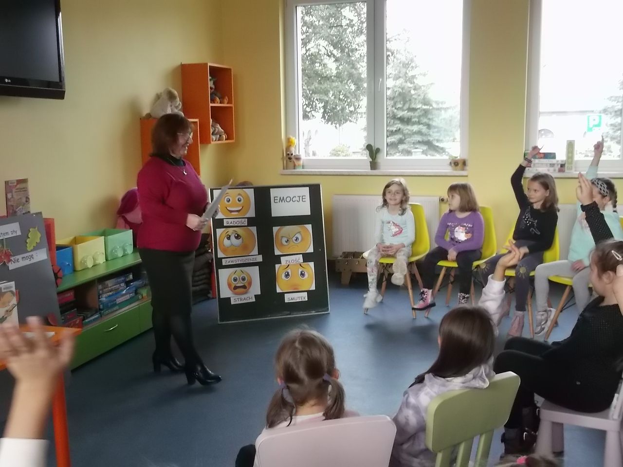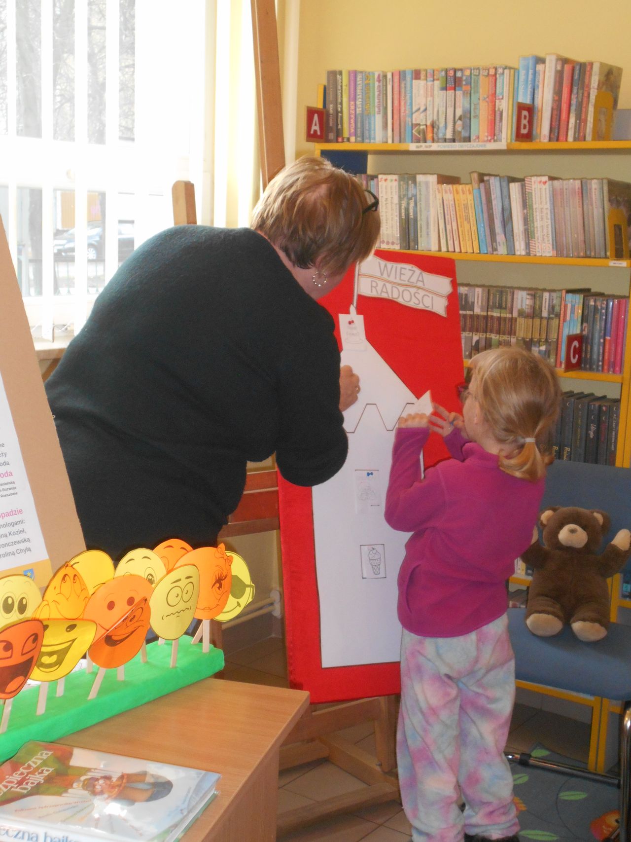 W ramach zadania odbyło się kilkadziesiąt spotkań poruszających wiele ważnych tematów. Odwaga, złość, wstyd, tolerancja, radość, strach, tęsknota, miłość, przyjaźń – to zaledwie mały wycinek ważnych spraw, o których rozmawiano z tarnobrzeskimi przedszkolakami i uczniami szkół podstawowych. Do Krainy Emocji dzieci zabierały głównie bibliotekarki z Biblioteki Głównej i wszystkich filii. Jednak odbył się także cykl warsztatów prowadzonych przez specjalnie zaproszonych do projektu Gości. Agata Warywoda – bibliotekarka i trenerka, zawodowo związana z krośnieńską BP oraz Centrum Rozwoju Osobistego i Psychoterapii w Rzeszowie, przeprowadziła warsztaty biblioterapeutyczne dla bibliotekarzy Miejskiej Biblioteki Publicznej w Tarnobrzegu. Spotkanie pt. „Co mówi twarz, czyli jak radzić sobie z trudnymi emocjami” dla uczniów klasy VI poprowadziła Irmina Wójcik-Gronczewska – psycholog, terapeutka z Poradni Psychologiczno-Pedagogicznej w Tarnobrzegu. O tym, jak książka może pomóc w umacnianiu pewności siebie drugoklasistom i trzecioklasistom ze Szkoły Podstawowej nr 10 opowiadała psycholog Bożena Kozieł, a Karolina Chyła – psycholog – przekonywała uczniów klasy V ze Szkoły Podstawowej nr 9 o tym, że mają prawo do przeżywania i wyrażania swoich emocji.