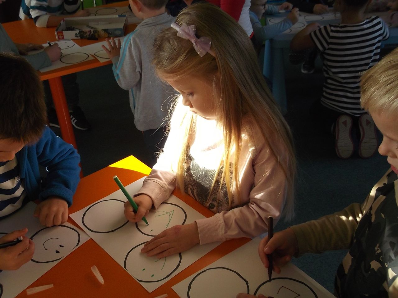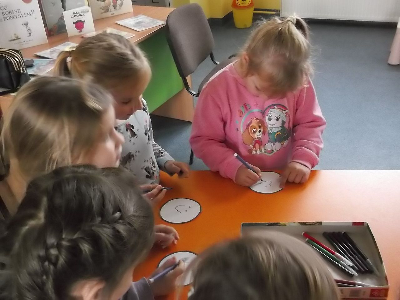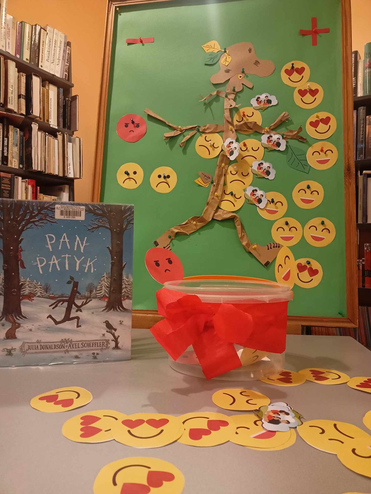 W ramach zadania odbyło się kilkadziesiąt spotkań poruszających wiele ważnych tematów. Odwaga, złość, wstyd, tolerancja, radość, strach, tęsknota, miłość, przyjaźń – to zaledwie mały wycinek ważnych spraw, o których rozmawiano z tarnobrzeskimi przedszkolakami i uczniami szkół podstawowych. Do Krainy Emocji dzieci zabierały głównie bibliotekarki z Biblioteki Głównej i wszystkich filii. Jednak odbył się także cykl warsztatów prowadzonych przez specjalnie zaproszonych do projektu Gości. Agata Warywoda – bibliotekarka i trenerka, zawodowo związana z krośnieńską BP oraz Centrum Rozwoju Osobistego i Psychoterapii w Rzeszowie, przeprowadziła warsztaty biblioterapeutyczne dla bibliotekarzy Miejskiej Biblioteki Publicznej w Tarnobrzegu. Spotkanie pt. „Co mówi twarz, czyli jak radzić sobie z trudnymi emocjami” dla uczniów klasy VI poprowadziła Irmina Wójcik-Gronczewska – psycholog, terapeutka z Poradni Psychologiczno-Pedagogicznej w Tarnobrzegu. O tym, jak książka może pomóc w umacnianiu pewności siebie drugoklasistom i trzecioklasistom ze Szkoły Podstawowej nr 10 opowiadała psycholog Bożena Kozieł, a Karolina Chyła – psycholog – przekonywała uczniów klasy V ze Szkoły Podstawowej nr 9 o tym, że mają prawo do przeżywania i wyrażania swoich emocji.