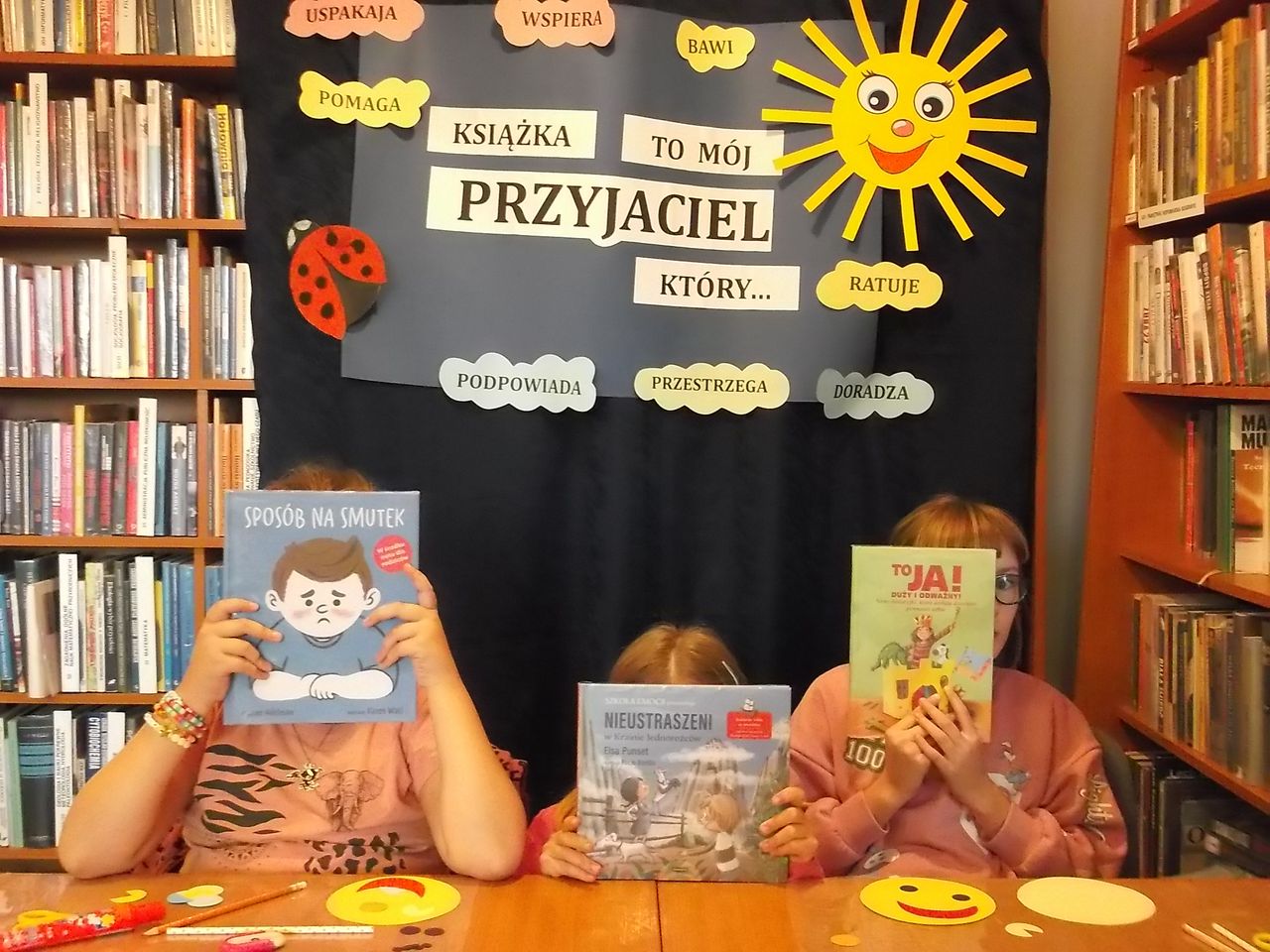 Ogółem w związku z realizacją projektu „Książko ratuj! Terapeutyczna moc literatury” odbyło się 50 spotkań, w których wzięło udział 1036 osób – dzieci w wieku przedszkolnym, wczesnoszkolnym i młodzież.Za nami trzy miesiące spotkań i warsztatów, podczas których dzieci i młodzież z tarnobrzeskich przedszkoli i szkół rozmawiały o emocjach, uczuciach, o mocy książek, o poczuciu własnej wartości a także o zagrożeniach wynikających z nadużywania telefonów i czyhających w Internecie. Mamy nadzieję, że zarówno dla przedszkolaków, uczniów, jak również nauczycieli udział w naszym projekcie okazał się wzbogacającym doświadczeniem, pomagającym w radzeniu sobie z małymi i wielkimi problemami.