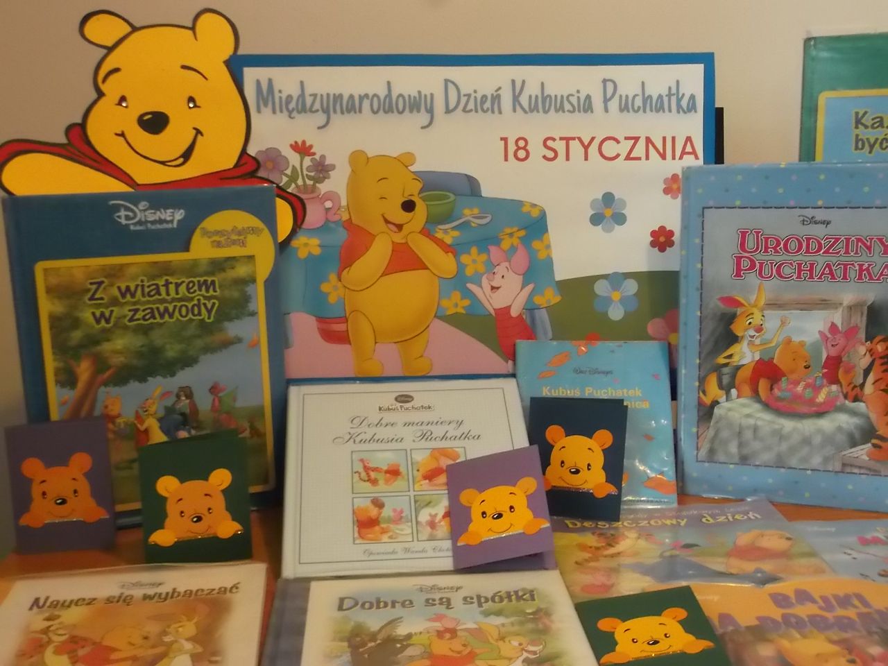 „Kubuś Puchatek” to jedna z tych bajek, która przetrwała próbę czasu i do dziś bawi kolejne pokolenia. Bohater stworzony przez Alana Alexandra Milne'a obchodzi swoje święto - Dzień Kubusia Puchatka – 18 stycznia, w rocznicę urodzin pisarza. Jest to wspaniała okazja by wraz z dziećmi celebrować ten wyjątkowy dzień. Oddział dla dzieci i młodzieży Biblioteki Głównej odwiedziły dwie grupy przedszkolne: 6-latki z Przedszkola nr 13 i 5-latki z Przedszkola nr 2. Przypomniały sobie historię powstania książki o lubianym przez wszystkie dzieci misiu, sprawdziły się w teście na wiedzę o mieszkańcach Stumilowego Lasu a także stworzyły swoją – bardziej kolorową – wersję Kubusia Puchatka. Także uczniowie kl. II ze Szkoły Podstawowej nr 11 pojawili się w Filii nr 6 na os. Sobów by poznać kilka ciekawostek o misiu o „małym rozumku”, wysłuchać fragmentów książeczki o jego przygodach i wykonać postaci Kubusia z rolek po papierze toaletowym. Z kolei do Przedszkola nr 2 i Przedszkola nr 1 z wizytą wybrała się bibliotekarka z Filii nr 8. Przedszkolaki wysłuchały bajki z serii „Moja bajeczka – Kubuś i Przyjaciele” oraz „Opowieści ze stumilowego Lasu – Uszy Królika” a także wzięły udział w zabawie ruchowej pt. „Zapraszamy do Stumilowego Lasu”. Natomiast w Filii nr 3 na os. Miechocin – na wszystkich czytelników – w Dzień Kubusia Puchatka, czekały „Kubusiowe niespodzianki”. Każdy odwiedzający Bibliotekę mógł wypożyczyć pakiet książek w niespodzianką. Przeprowadzone formy pokazały, że postać Kubusia Puchatka jeszcze długo nie straci na popularności, a mali czytelnicy będą odwiedzać biblioteki i wypożyczać książki o tym lubiącym „małe co nieco” niedźwiadku.